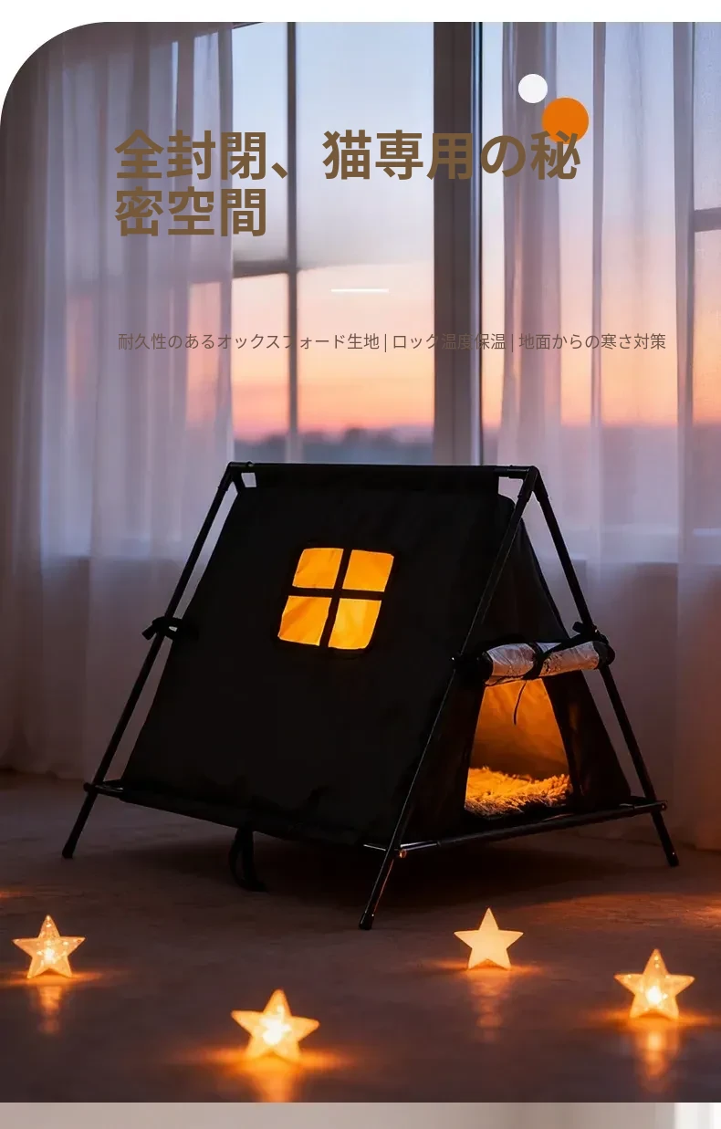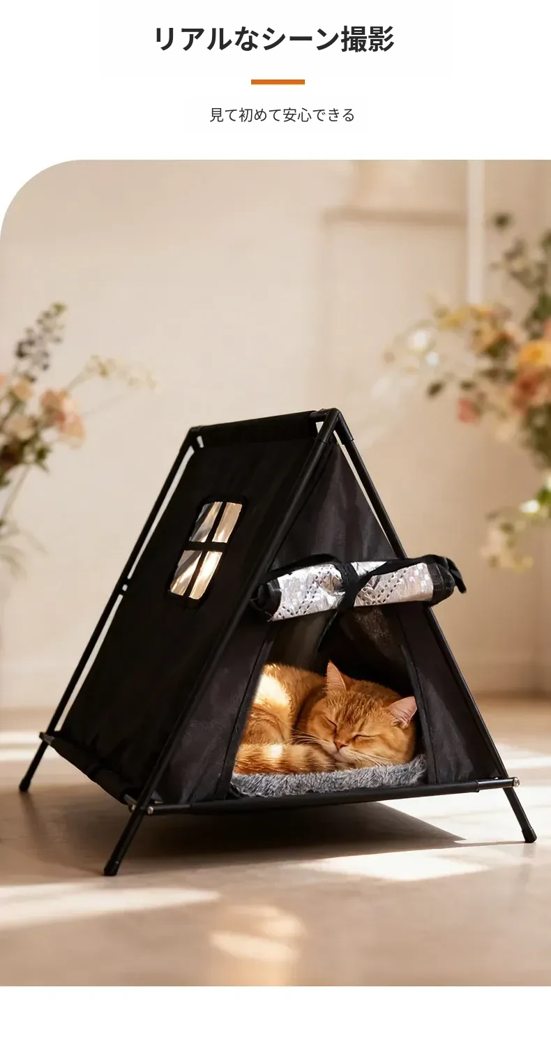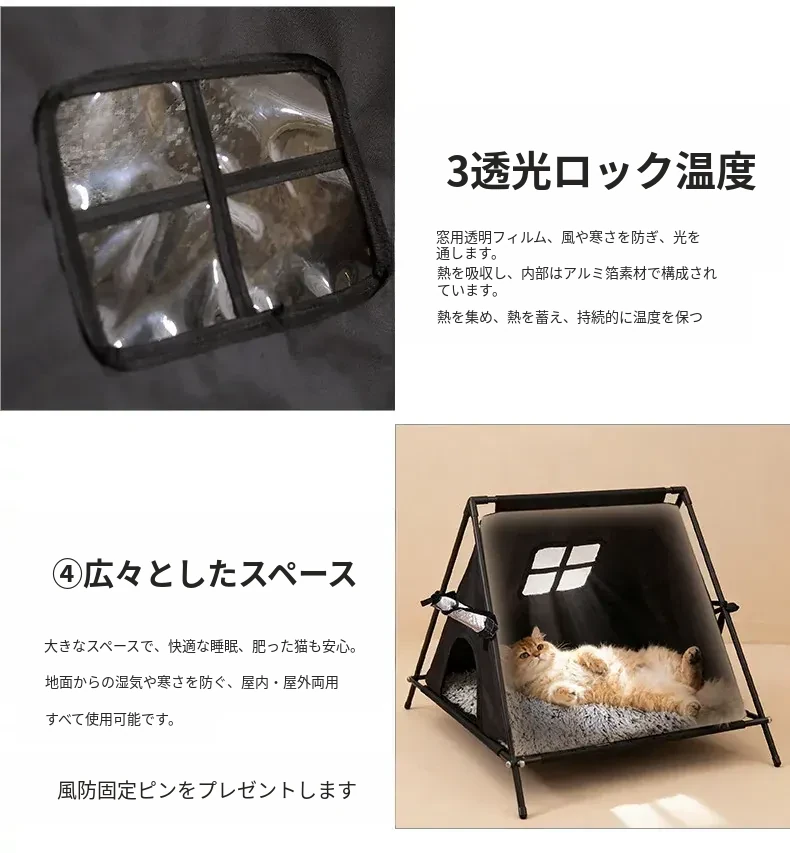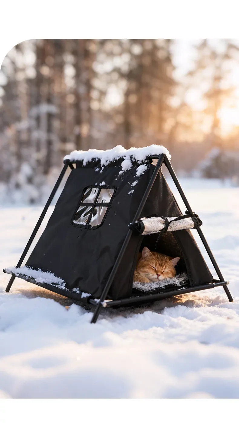ペット用テント型キャットハウス|四季対応・洗濯可能・冬の暖かさを保つ猫用住まい|野良猫にも最適!あなたの愛猫に快適な空間を提供します!