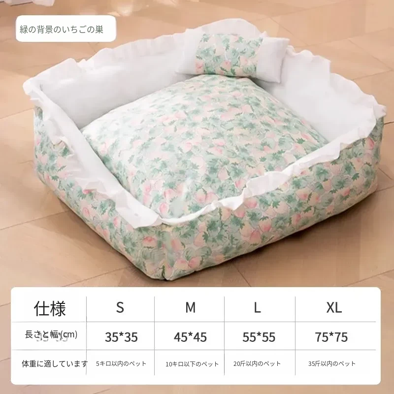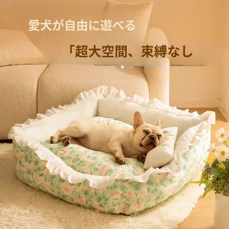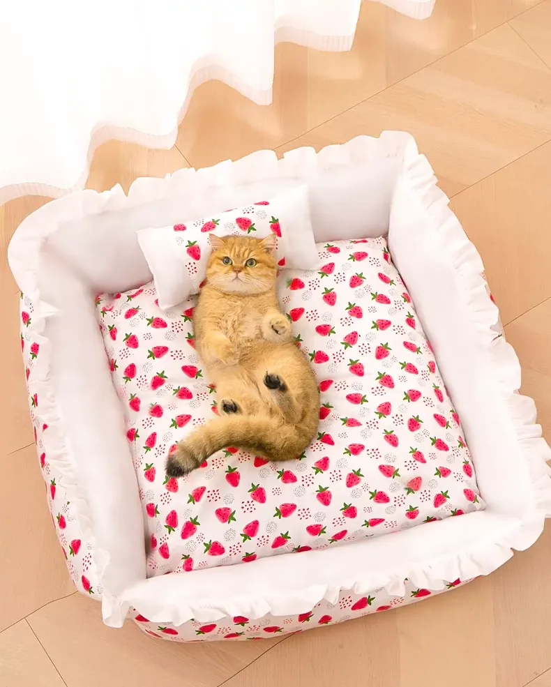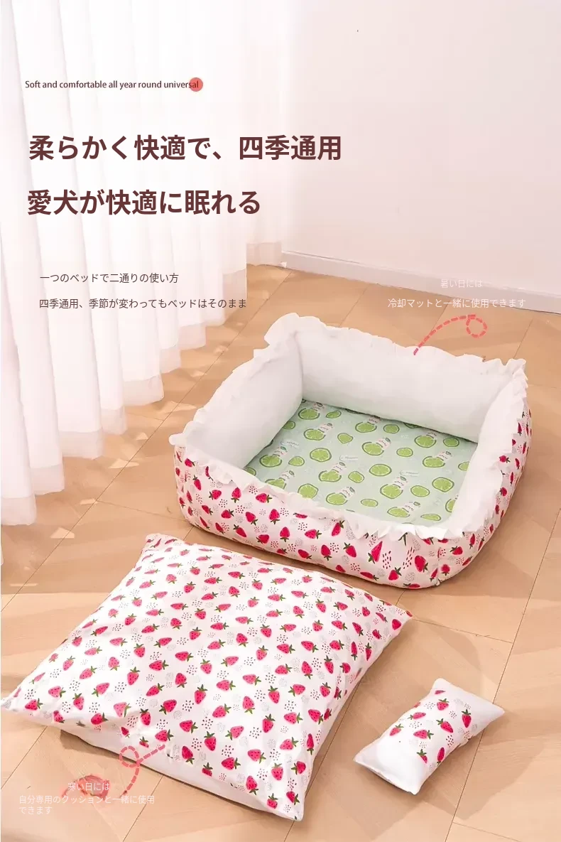 犬猫兼用の四季対応ペットベッド!洗えるクッション付き、頭枕付きで快適な睡眠空間を提供。夏にぴったりの通気性抜群のマットで、愛するペットのために最適なリラックス空間を実現!