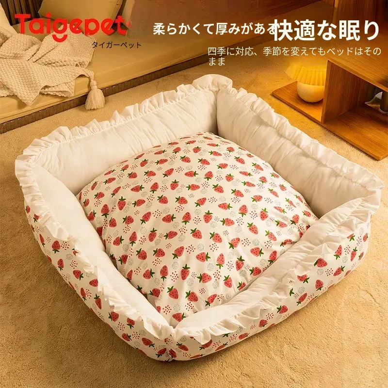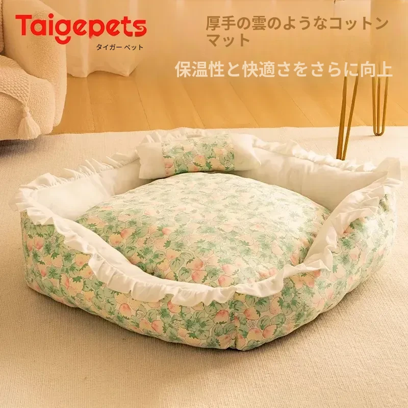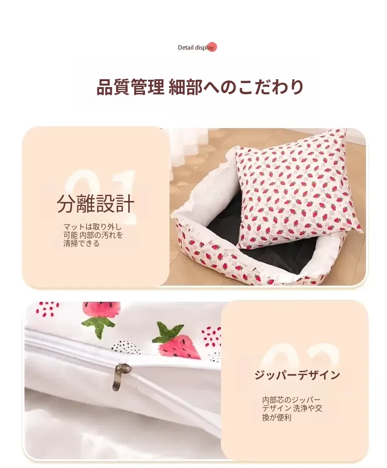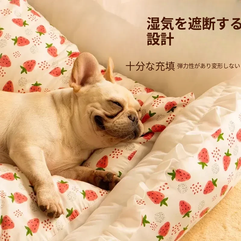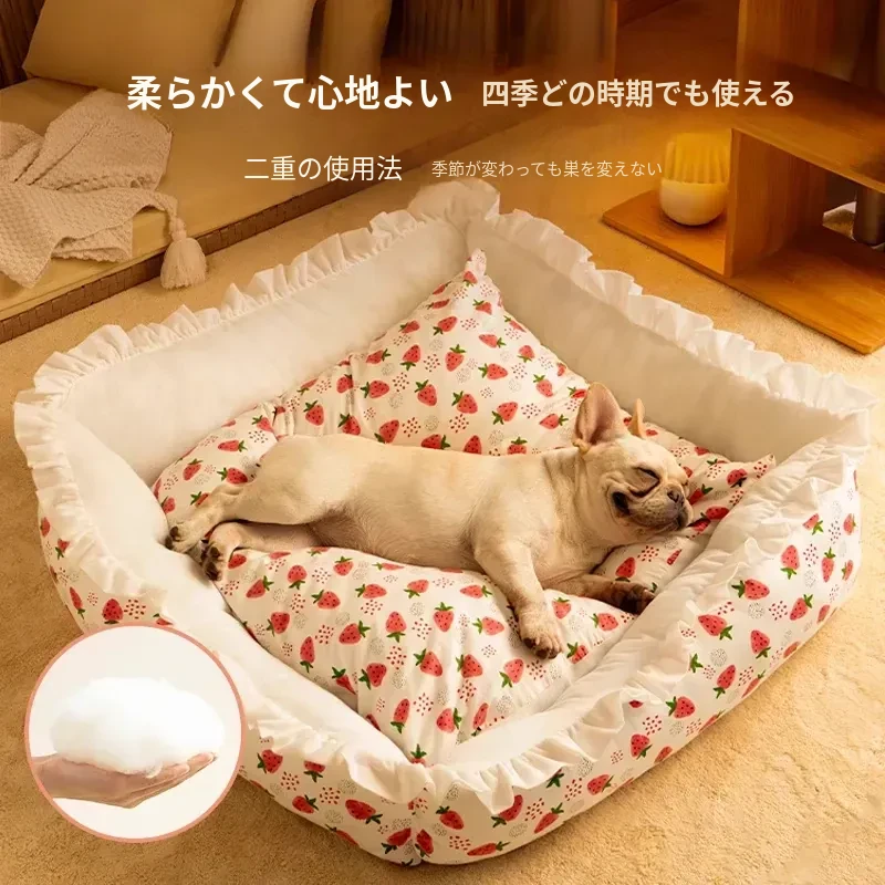 犬猫兼用の四季対応ペットベッド!洗えるクッション付き、頭枕付きで快適な睡眠空間を提供。夏にぴったりの通気性抜群のマットで、愛するペットのために最適なリラックス空間を実現!