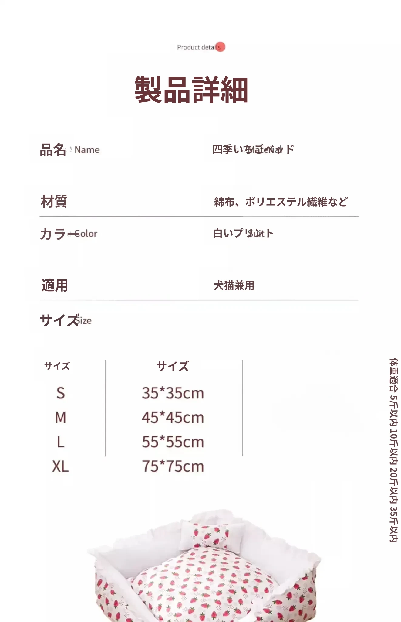 XL - 75*75cm【50斤以内のペットに適しています】
