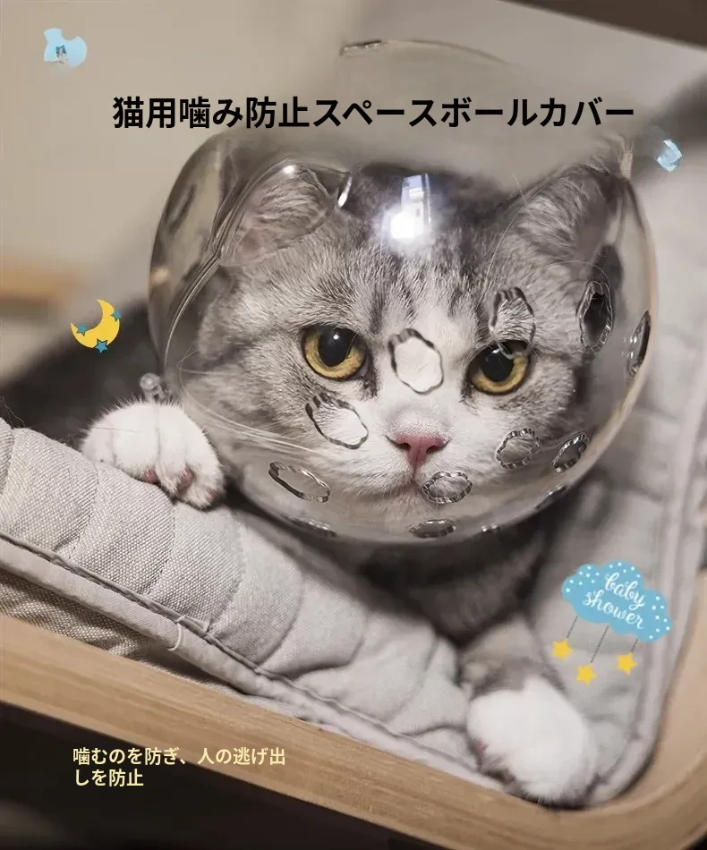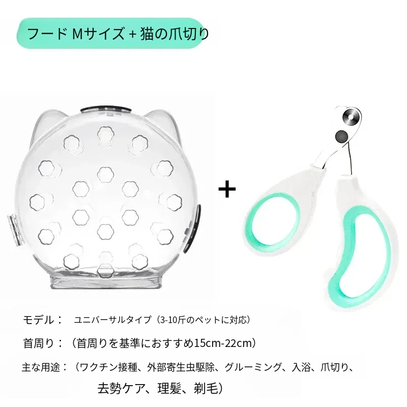 猫用スペースヘッドカバー - お風呂や爪切り時の噛みつきを防止!愛犬・愛猫のためのエリザベスカラーで、安心してお手入れができます。ペットのストレスを軽減し、快適なバスタイムを提供!