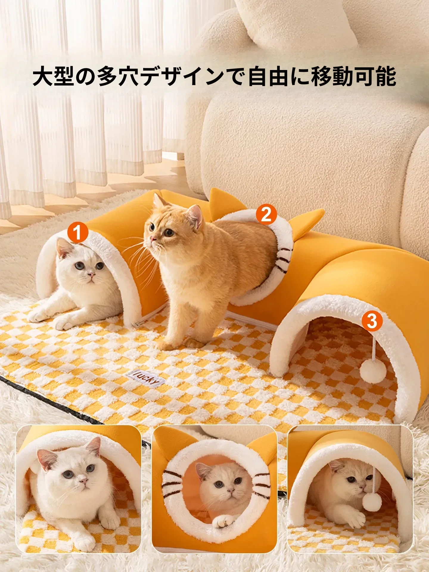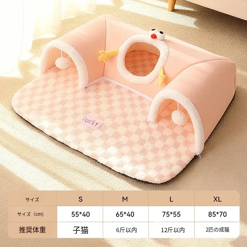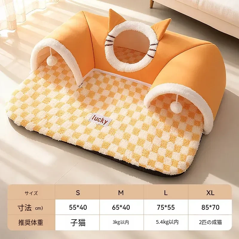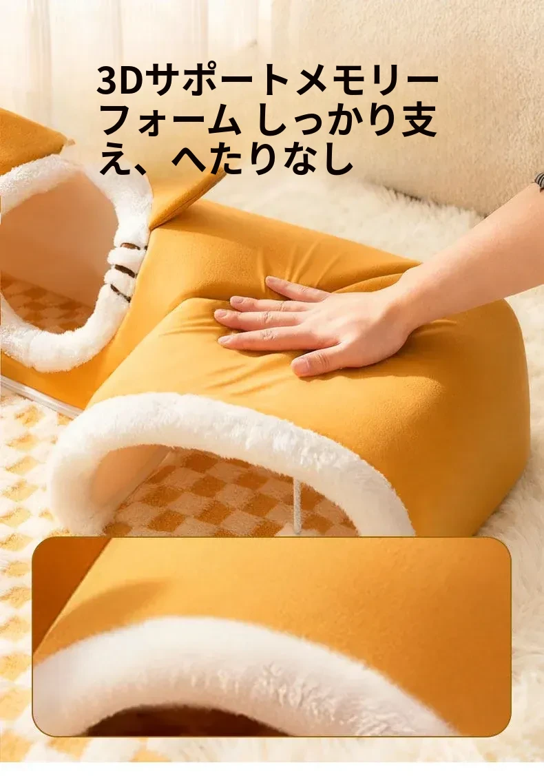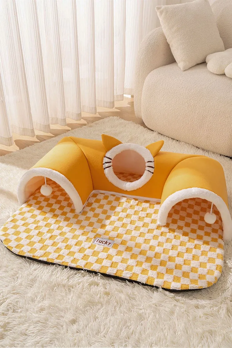 四季使える猫の隠れ家トンネル!冬の寒さから守る暖かい閉じ込め空間で、安心感を与える多頭飼いにも最適な猫用マット付き。あなたの猫ちゃんに最高の居場所を提供します!