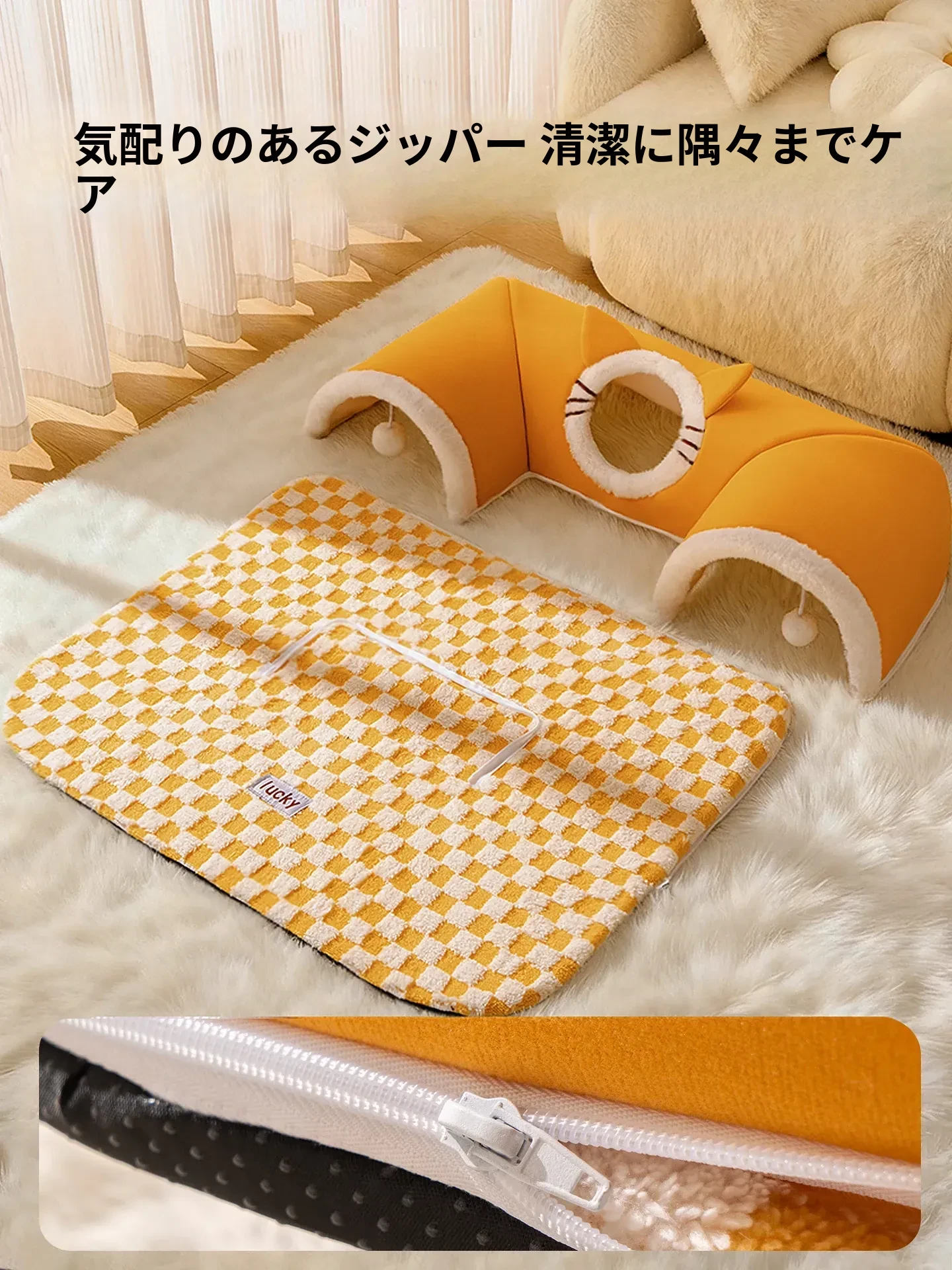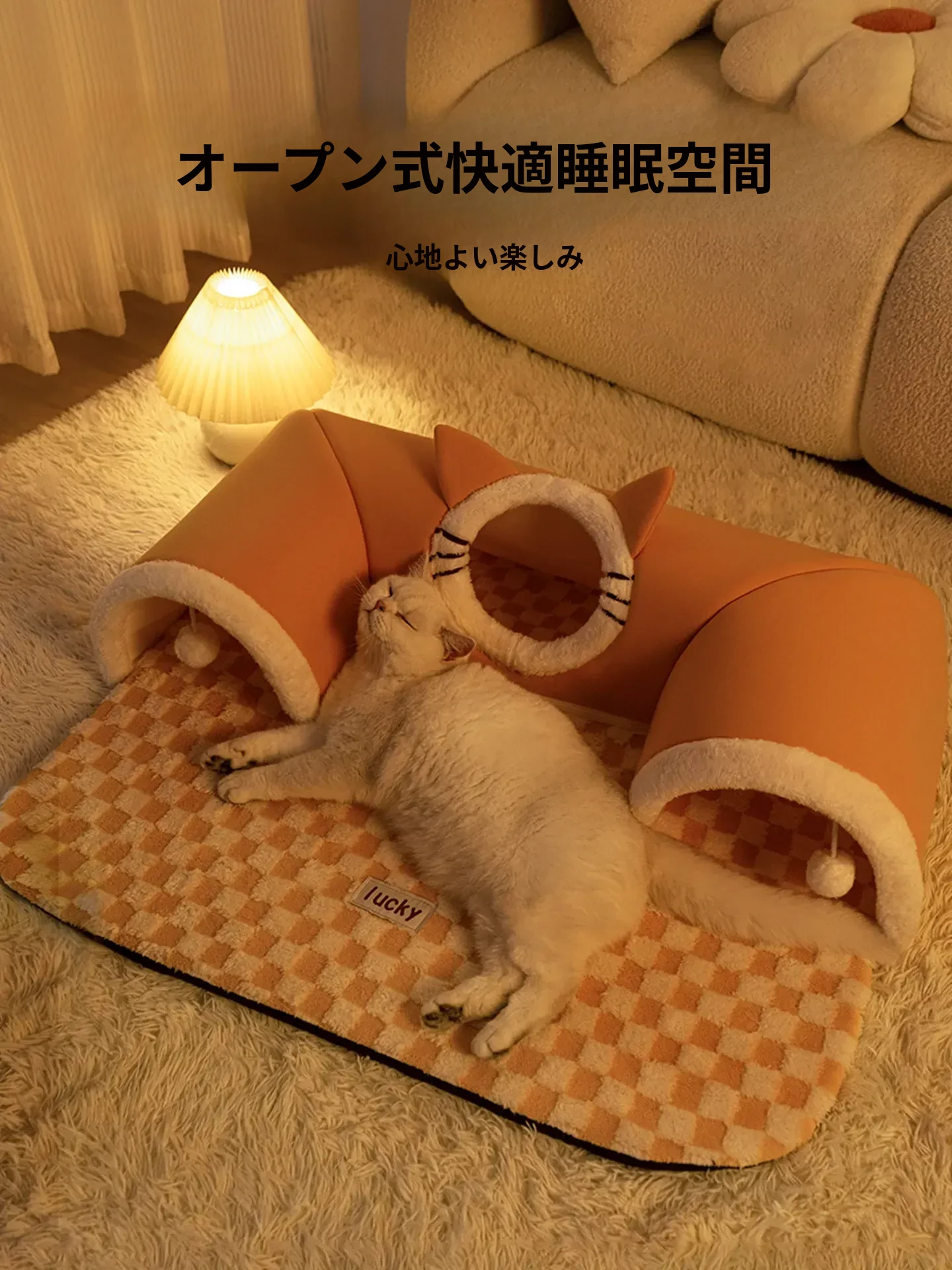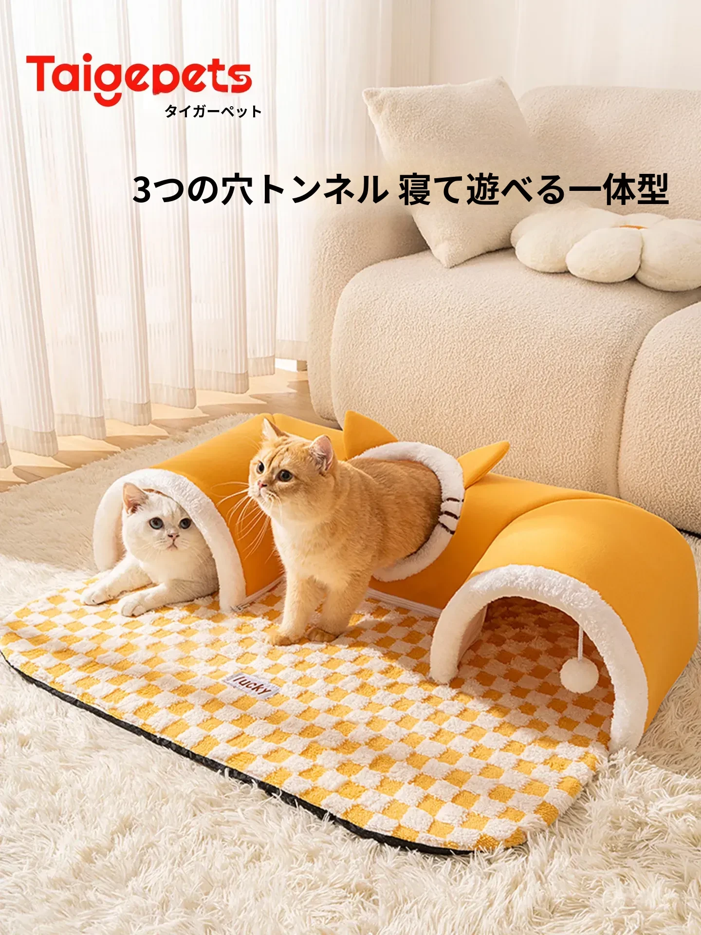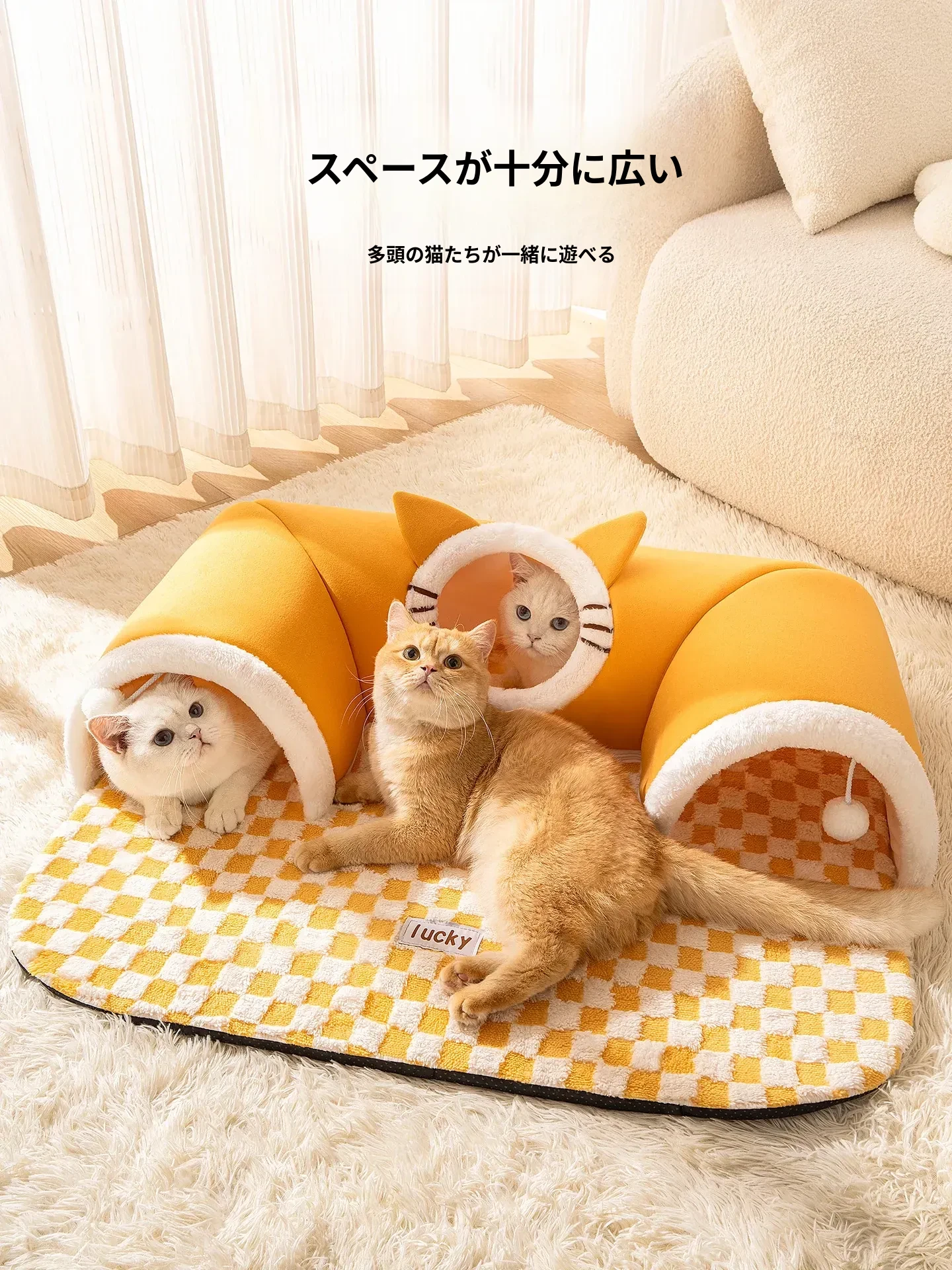 四季使える猫の隠れ家トンネル!冬の寒さから守る暖かい閉じ込め空間で、安心感を与える多頭飼いにも最適な猫用マット付き。あなたの猫ちゃんに最高の居場所を提供します!