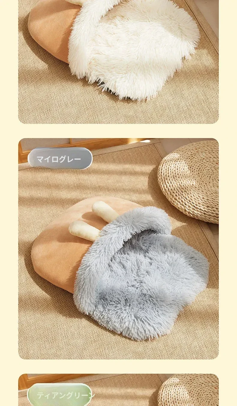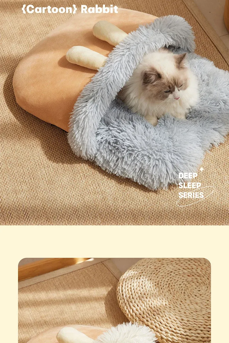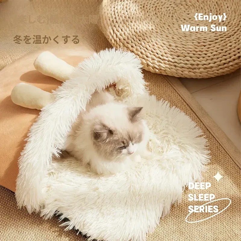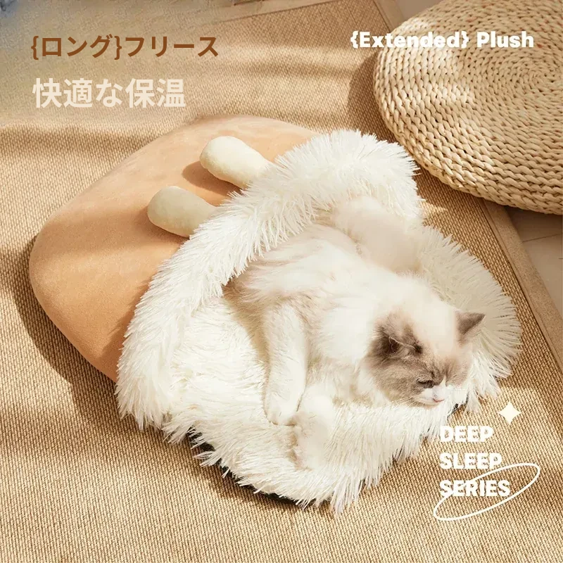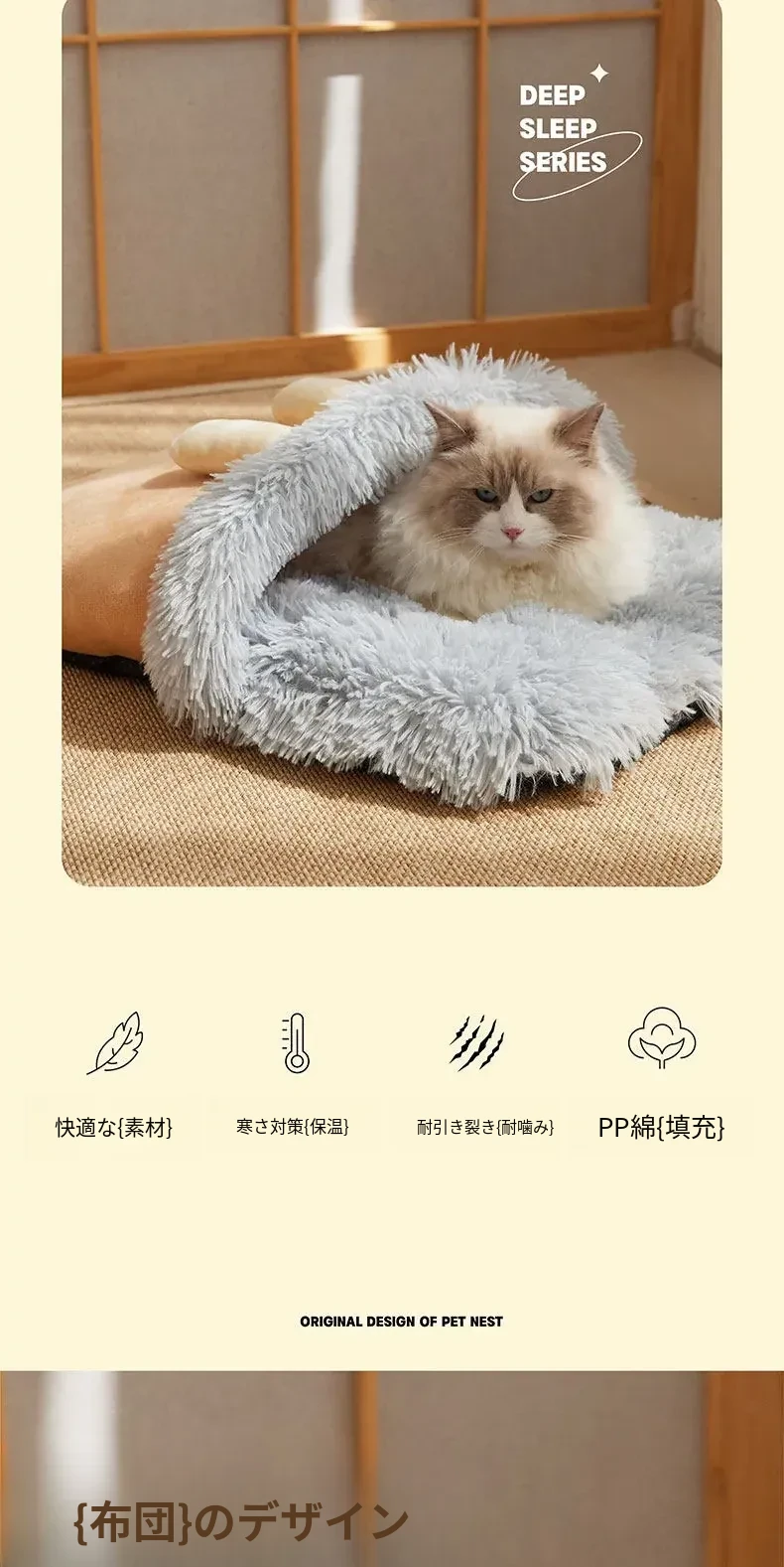 冬の暖かさを保つ厚手の半封閉型猫ベッド - 四季通用、安心感を提供する猫用スリーピングバッグ。寒い季節でも愛猫をしっかり守ります!