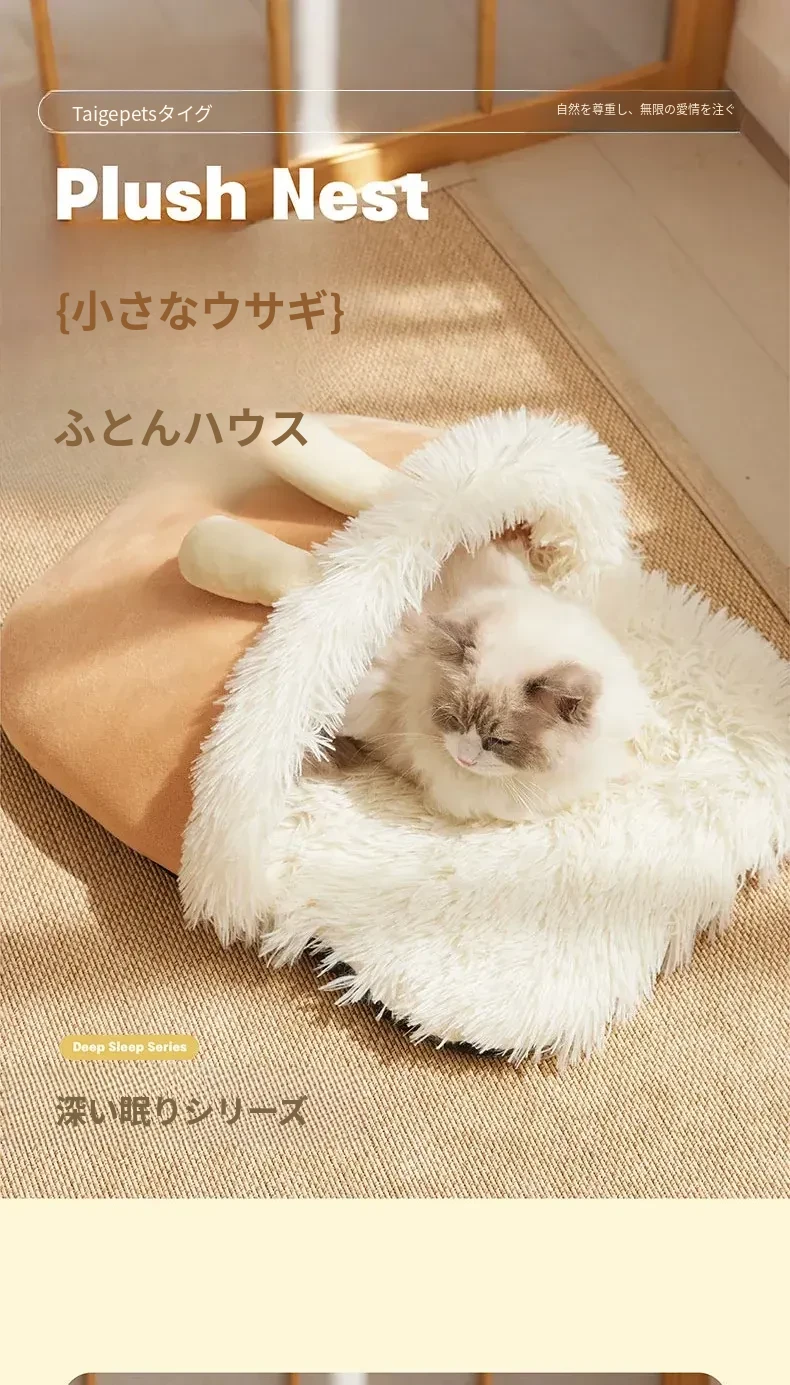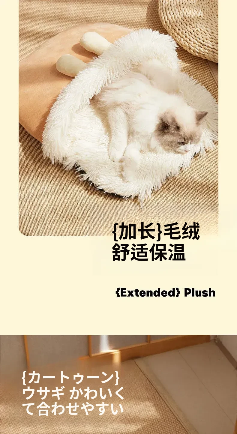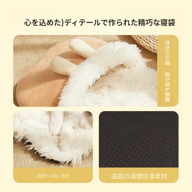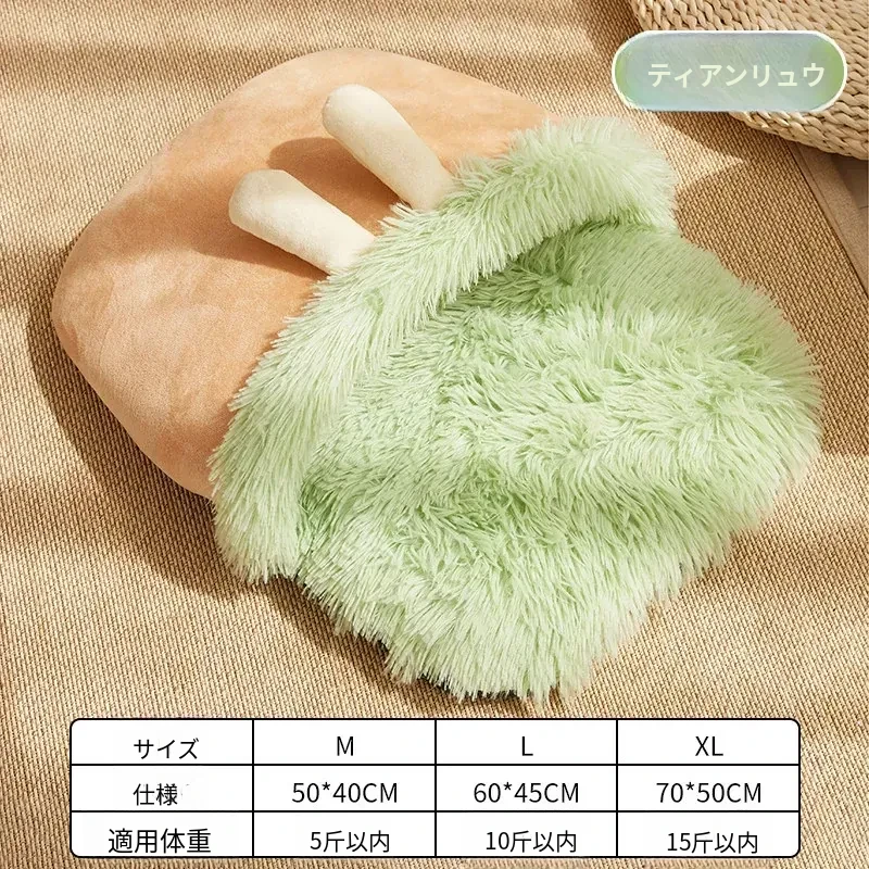 冬の暖かさを保つ厚手の半封閉型猫ベッド - 四季通用、安心感を提供する猫用スリーピングバッグ。寒い季節でも愛猫をしっかり守ります!