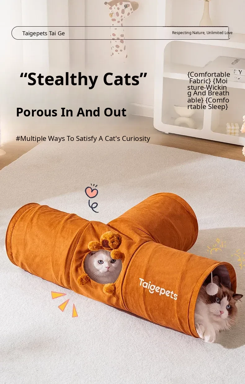 Cozy Cat Tunnel and Bed - All-Season Enclosed Safe Haven for Cats, Perfect for Hiding and Sleeping - Ideal for Kittens and Adult Cats