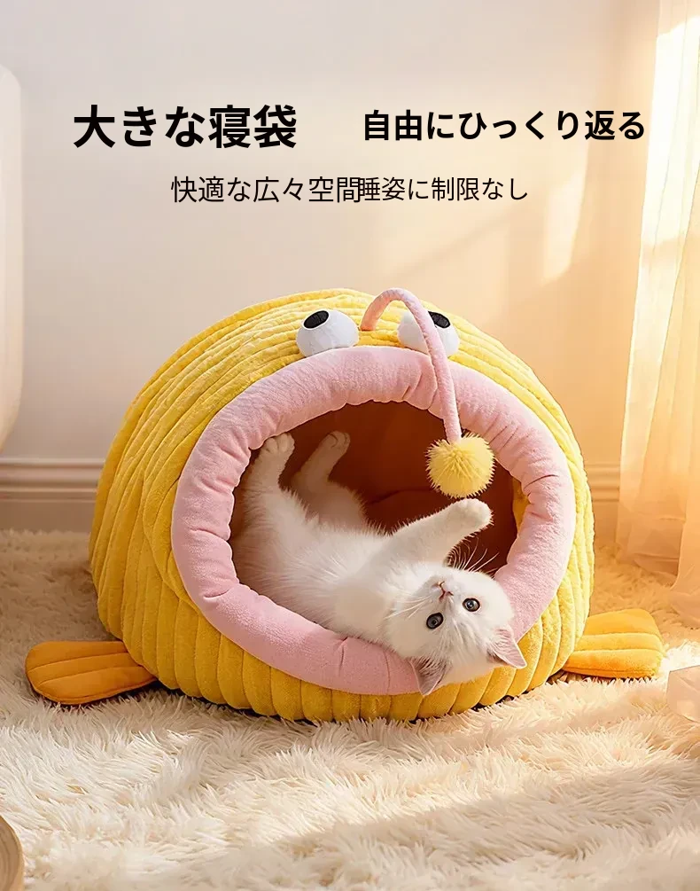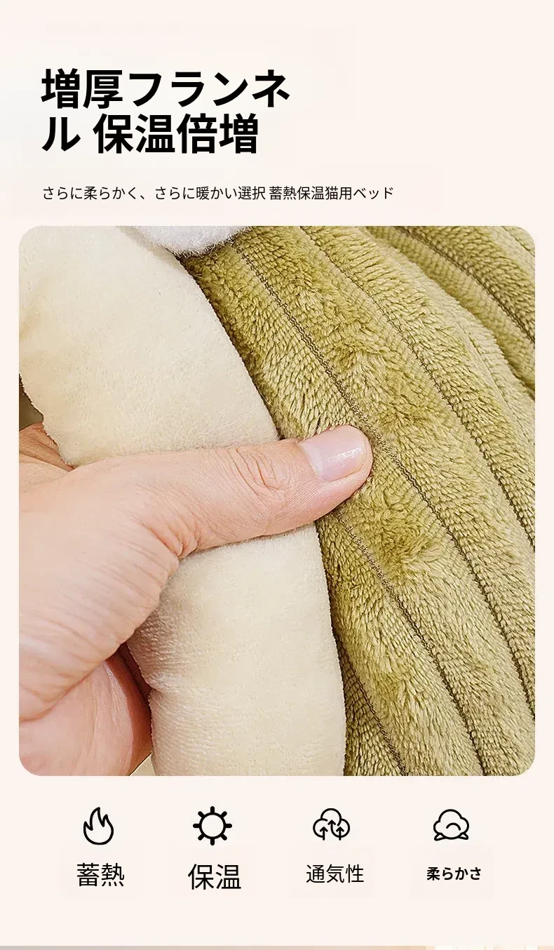 冬の寒さから守るフランネル製キャットハウス!安心感溢れる密閉型デザインで、四季を通じて愛猫を快適に包み込みます。冬の避難所として最適な寝床です。猫ちゃんのための至福の空間をお届け!