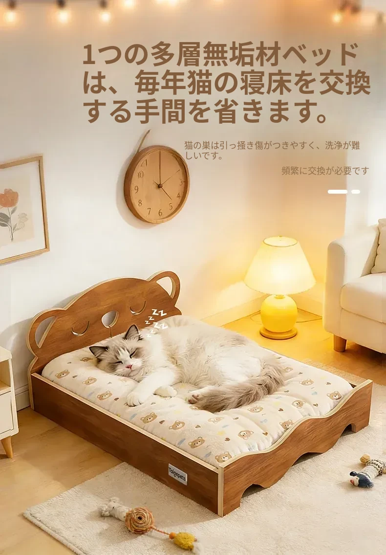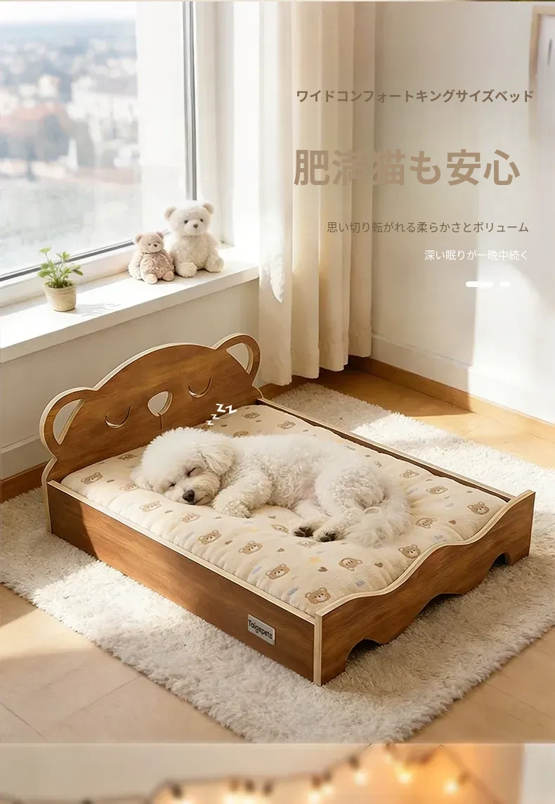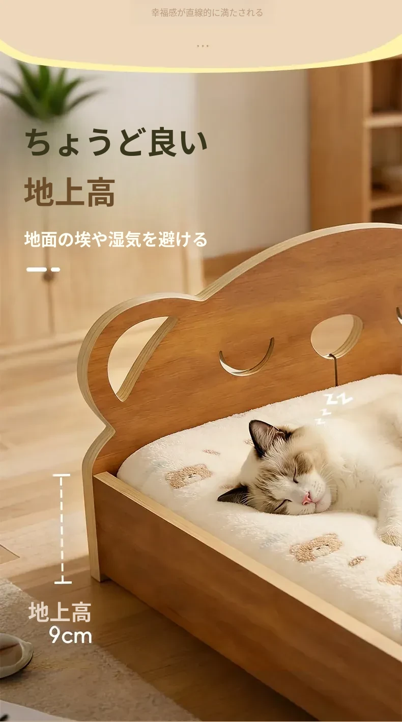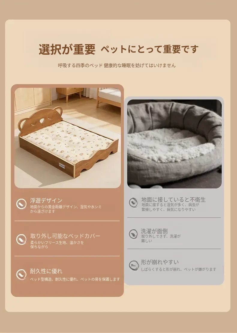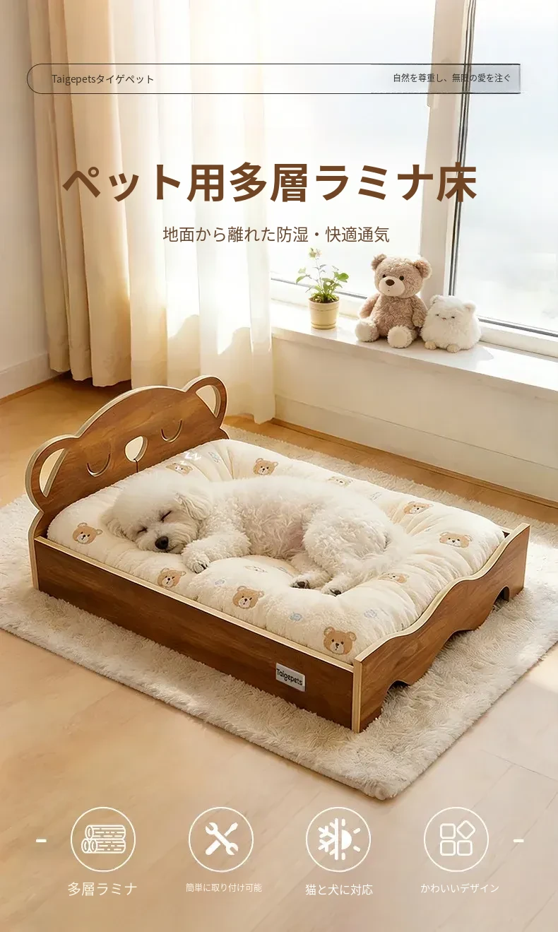 多層構造の天然木製犬用ベッド - 冬でも暖かさをキープ!小型犬やテディベア、ビションフリーゼに最適な離地式ペットソファ。快適な睡眠環境を提供します!