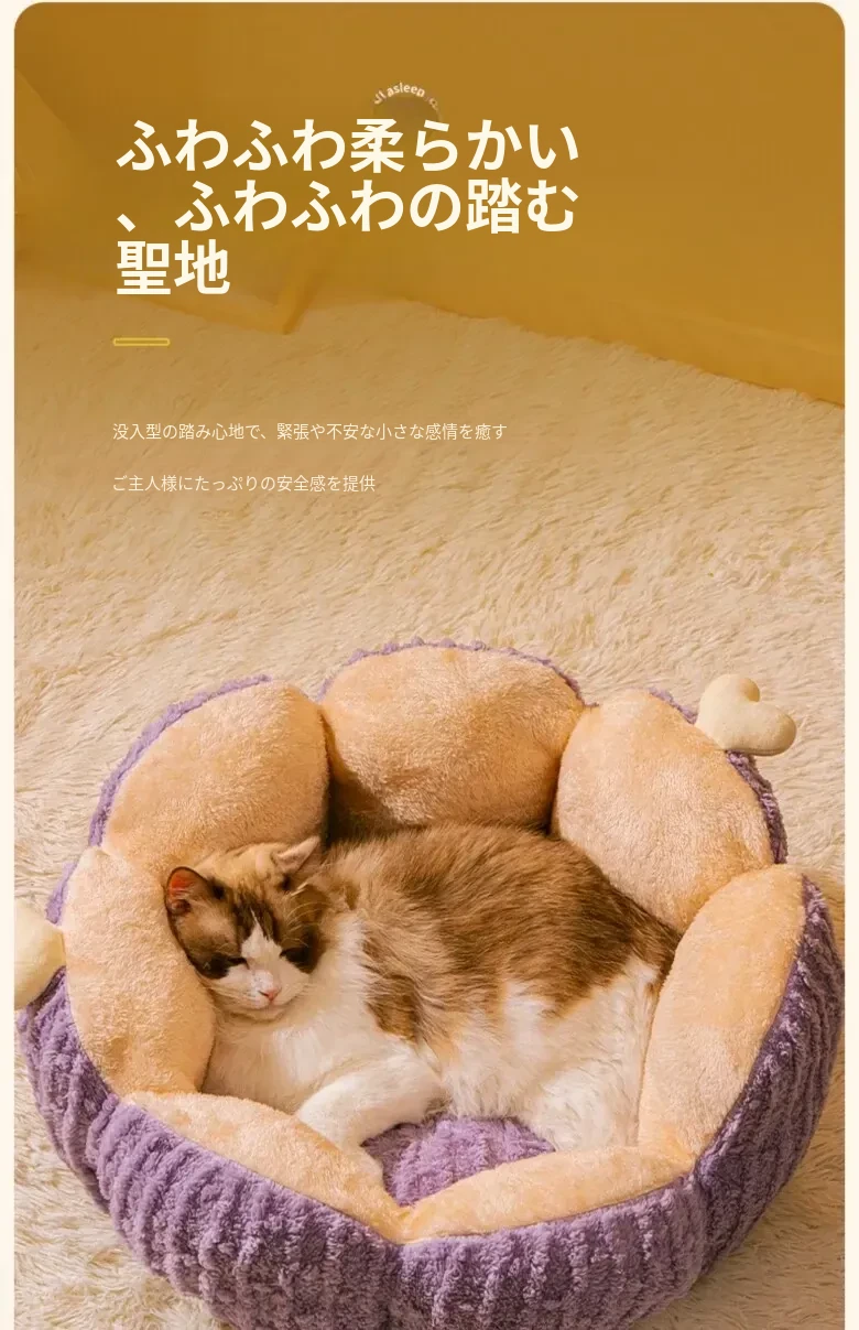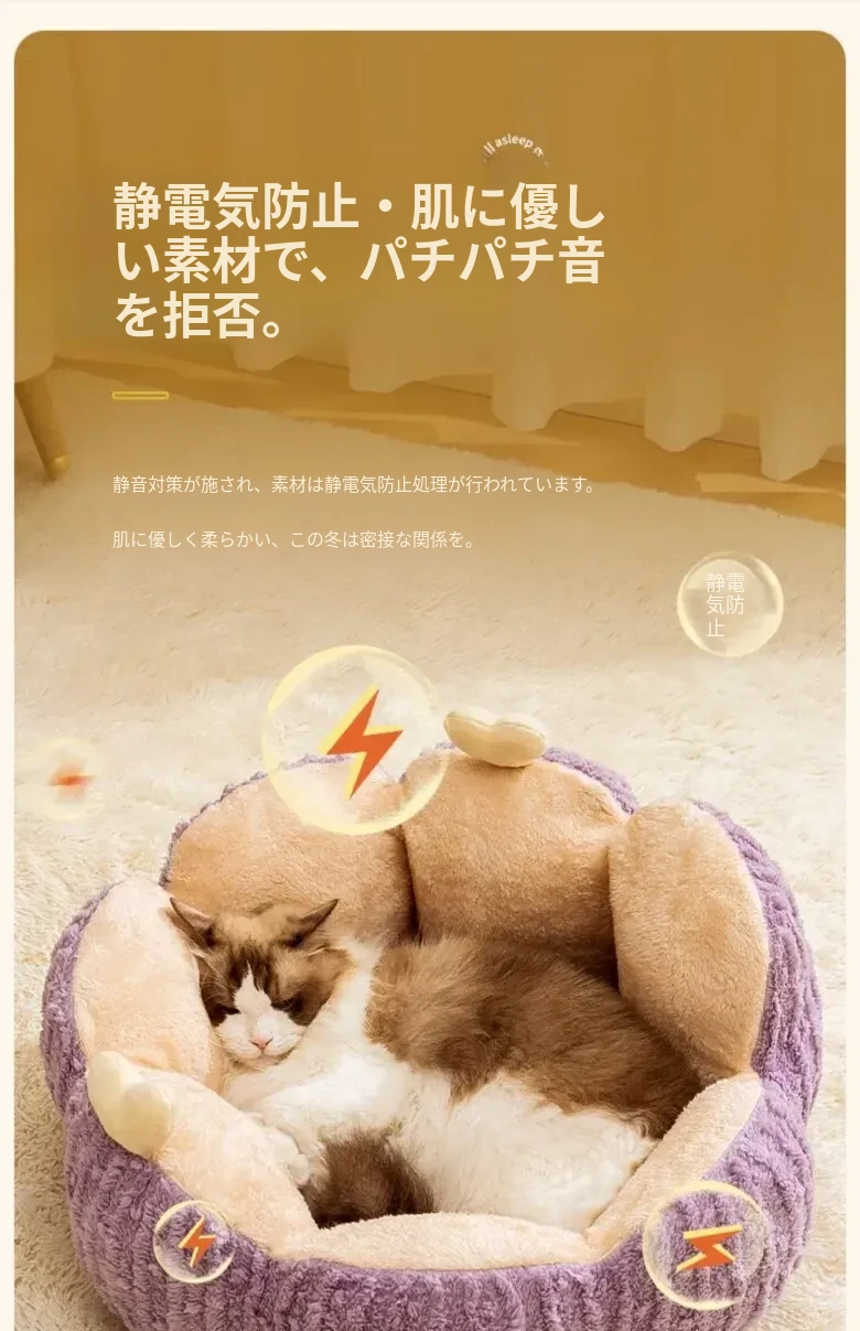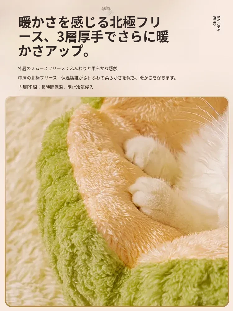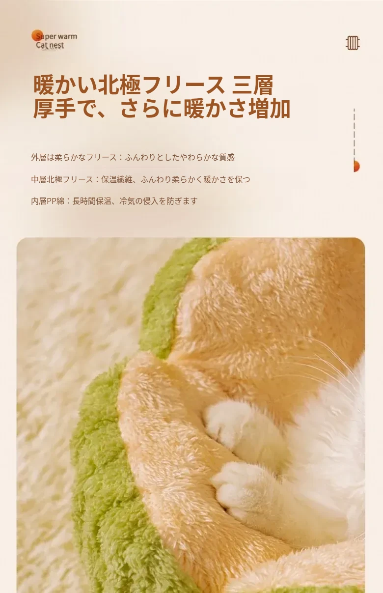冬も安心!半封閉式デザインの猫用ベッド - あたたかく、心地よい安全感を提供する四季対応の小猫用ペット寝床。あなたの愛猫に最高のくつろぎを!