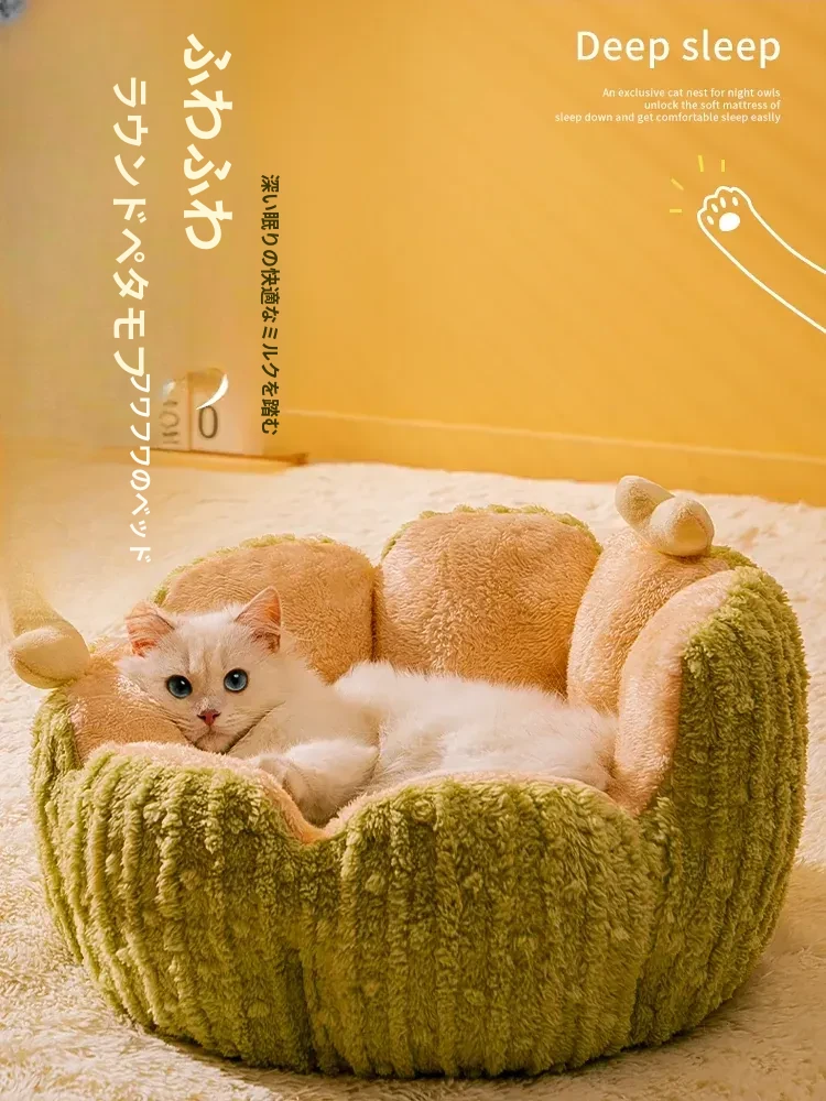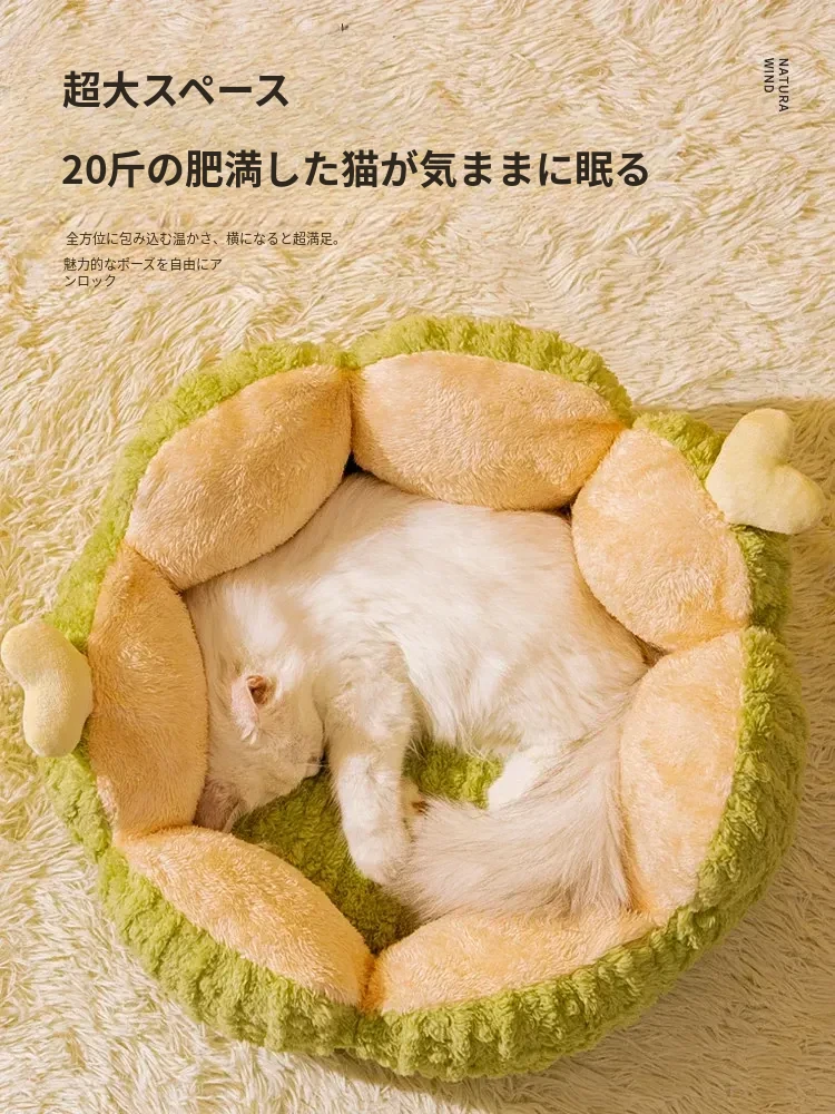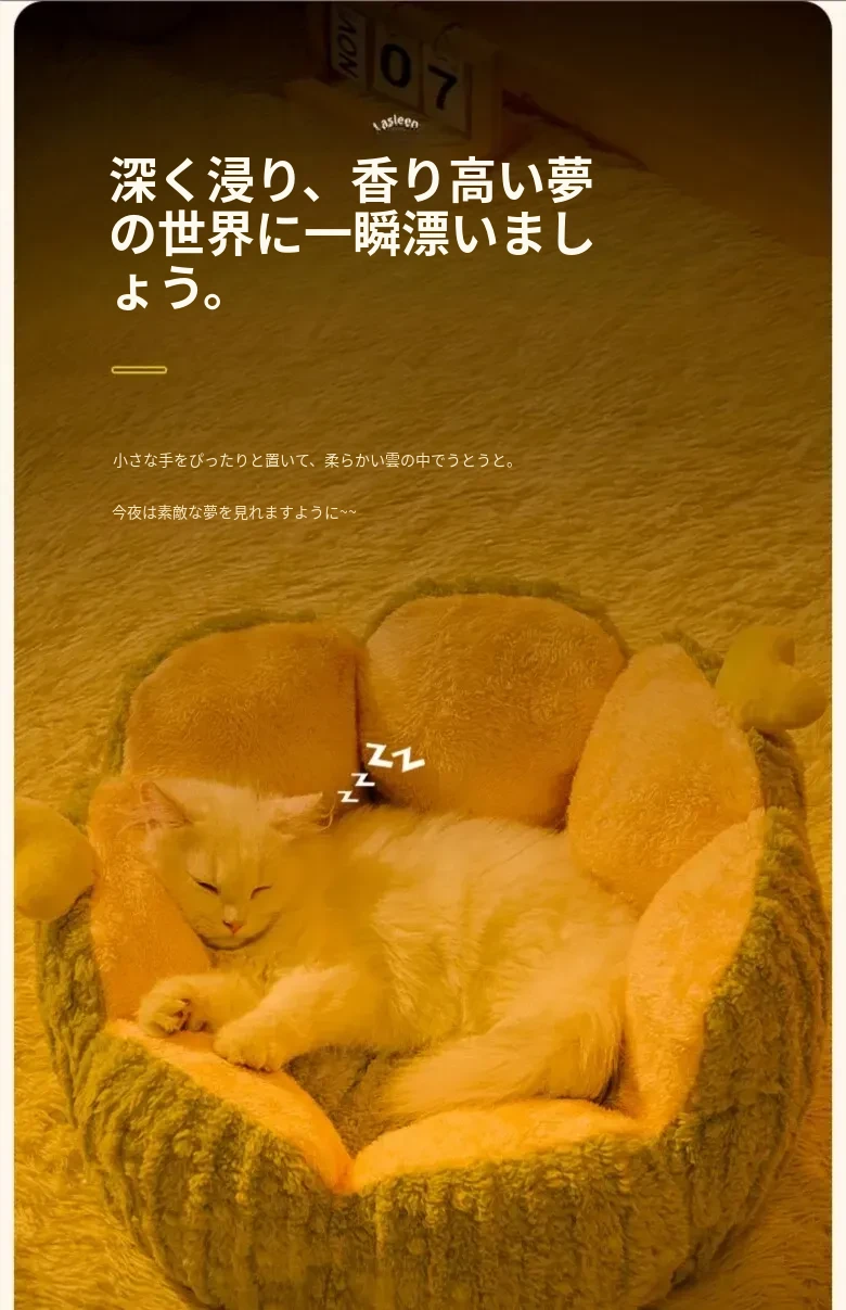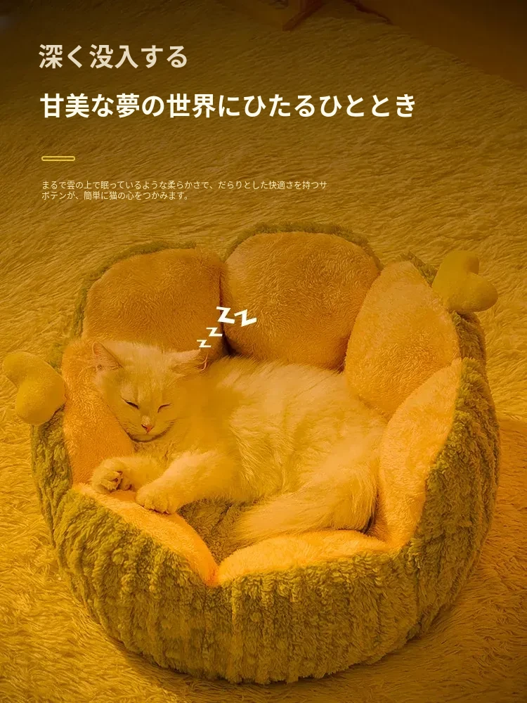 冬も安心!半封閉式デザインの猫用ベッド - あたたかく、心地よい安全感を提供する四季対応の小猫用ペット寝床。あなたの愛猫に最高のくつろぎを!