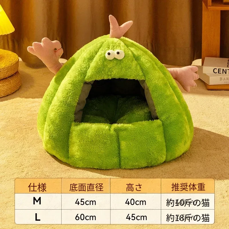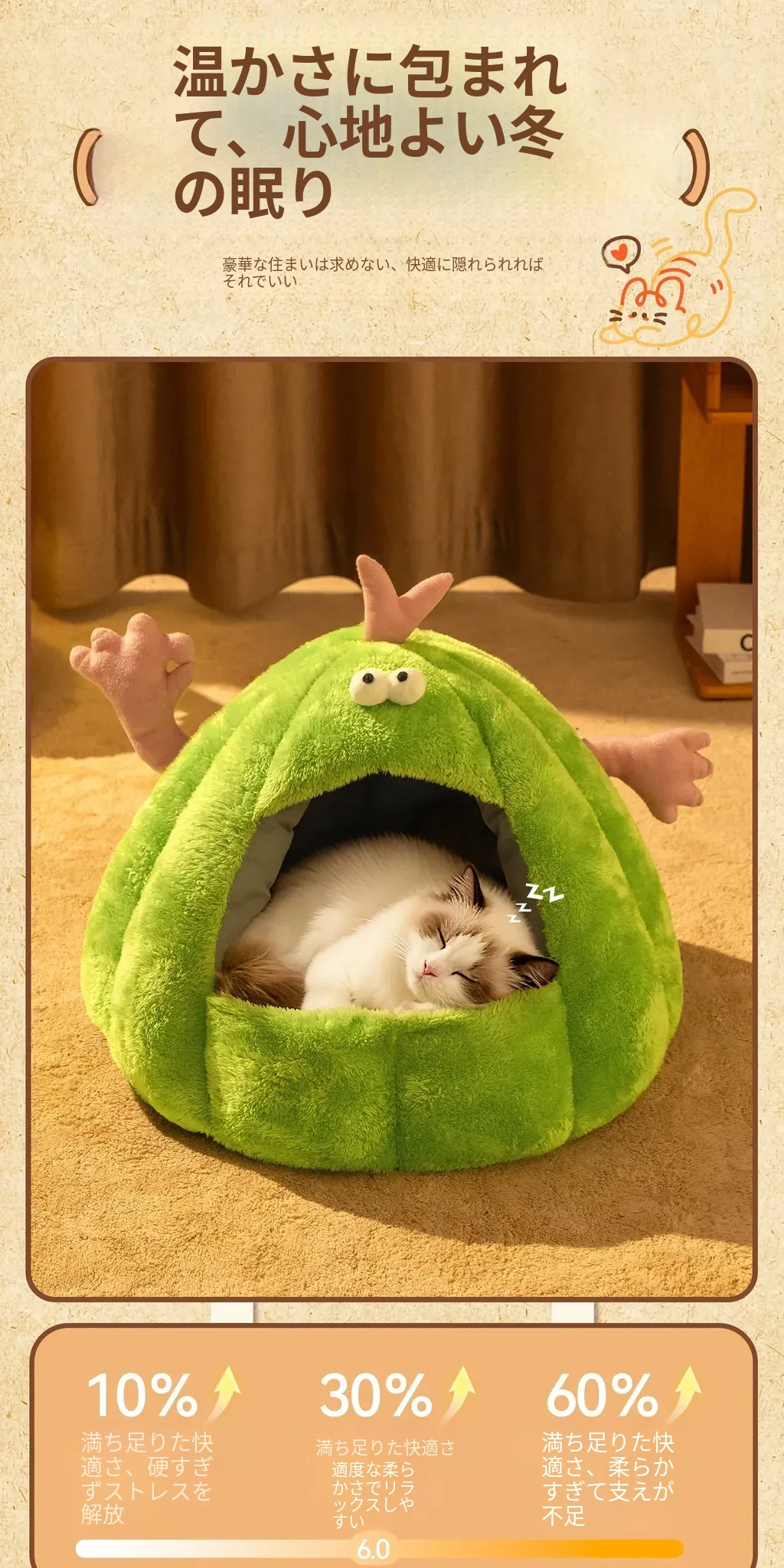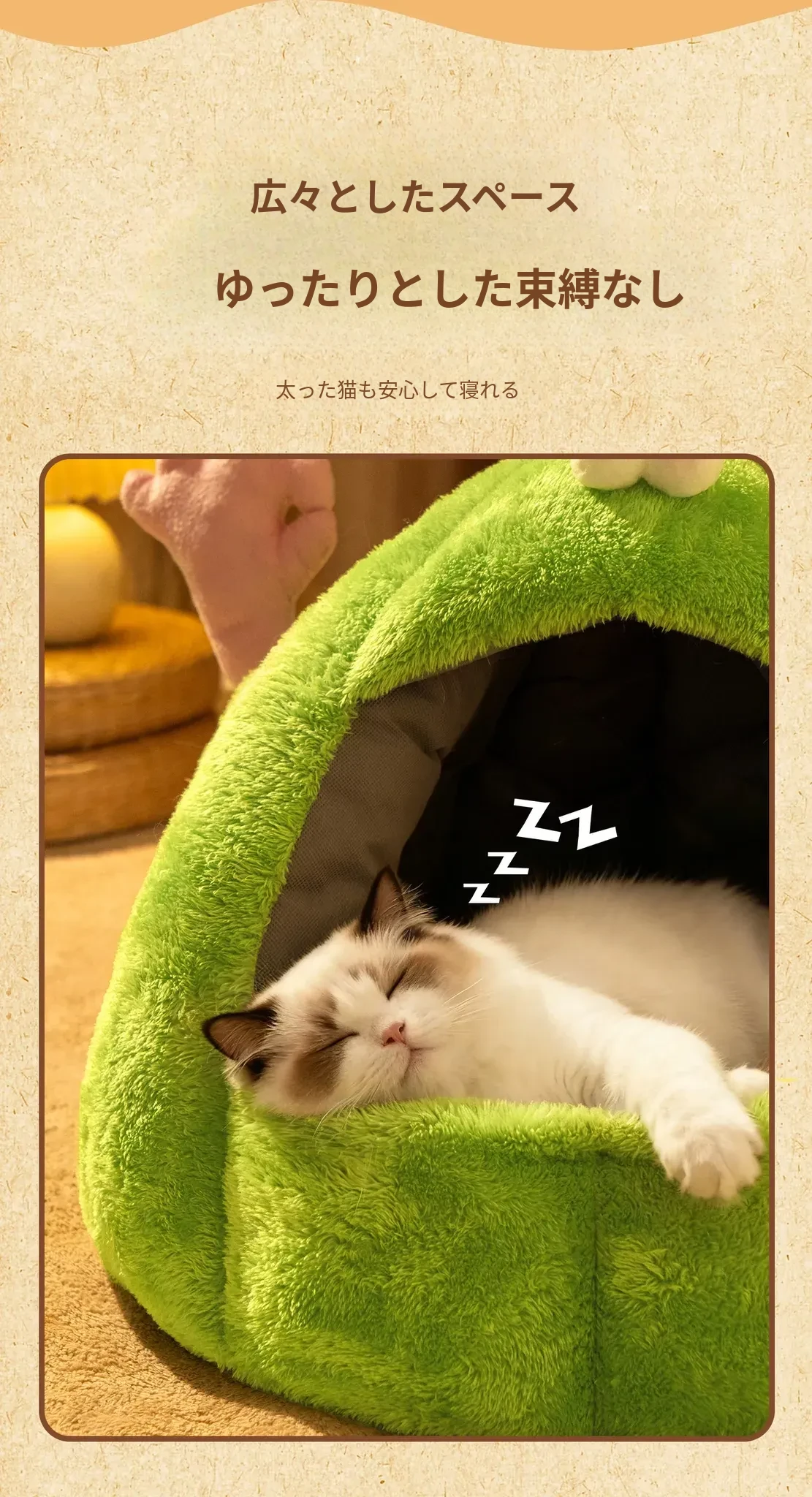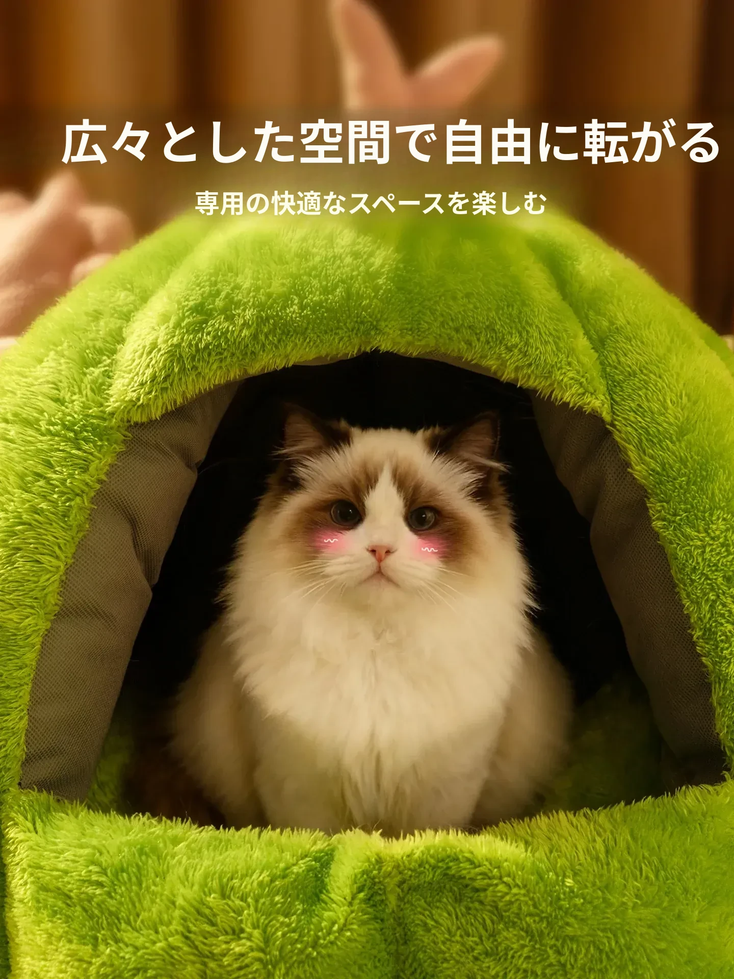 冬の寒さから守る!ふわふわの封閉式猫ベッド - 猫ちゃんのための暖かい寝床、四季折々に対応!快適な冬の眠りを実現する理想のアイテム。