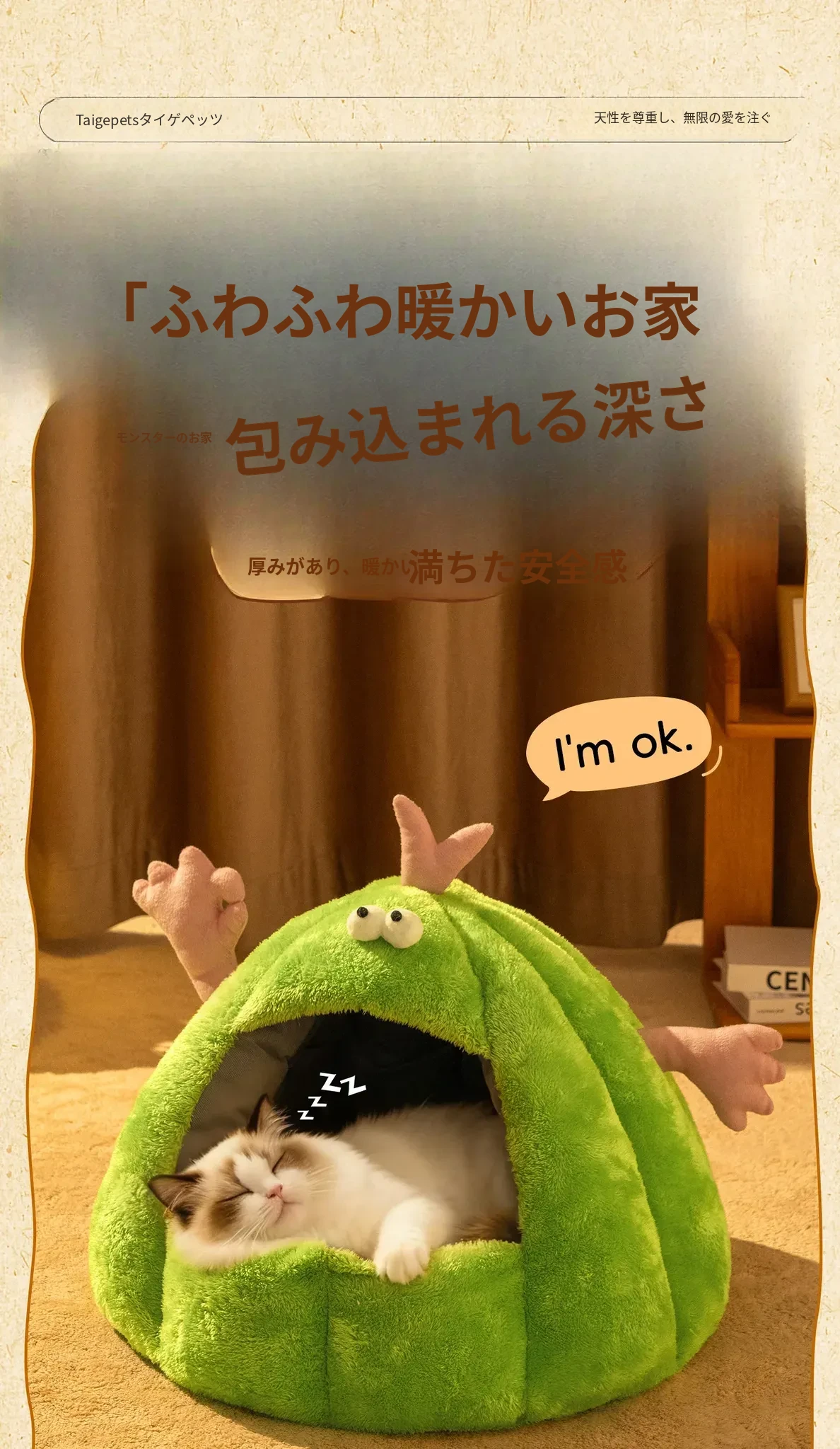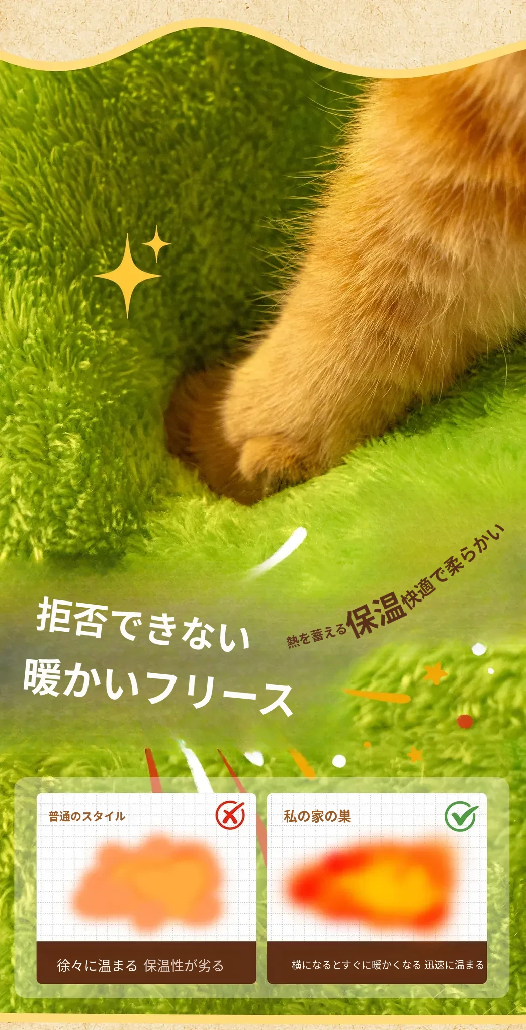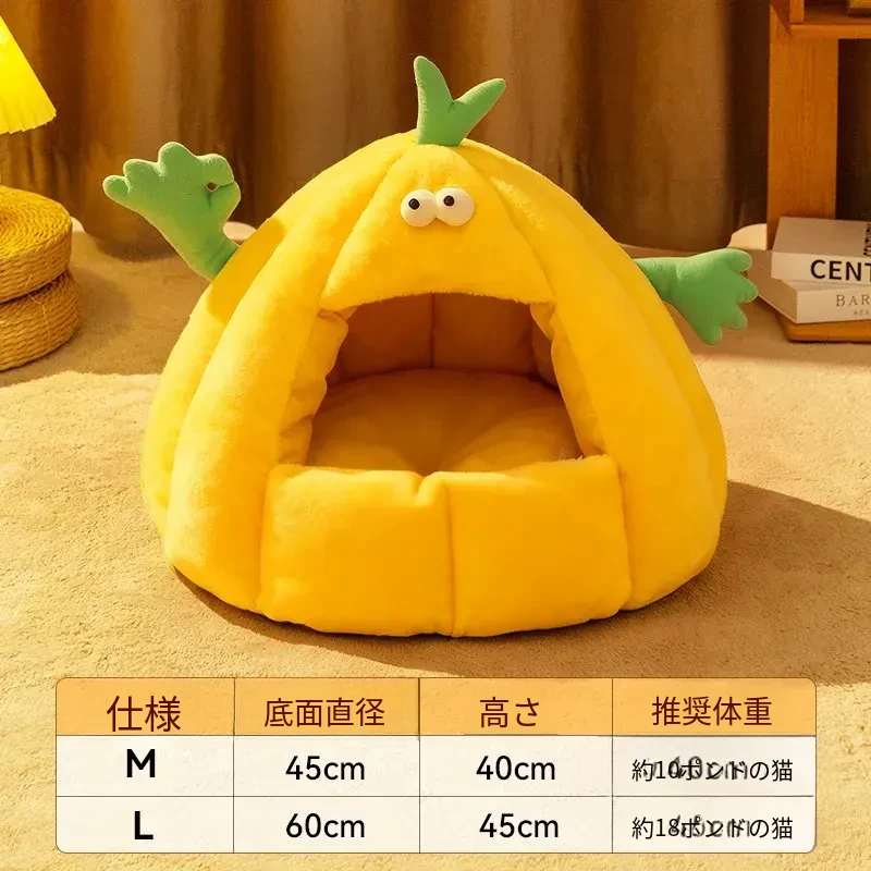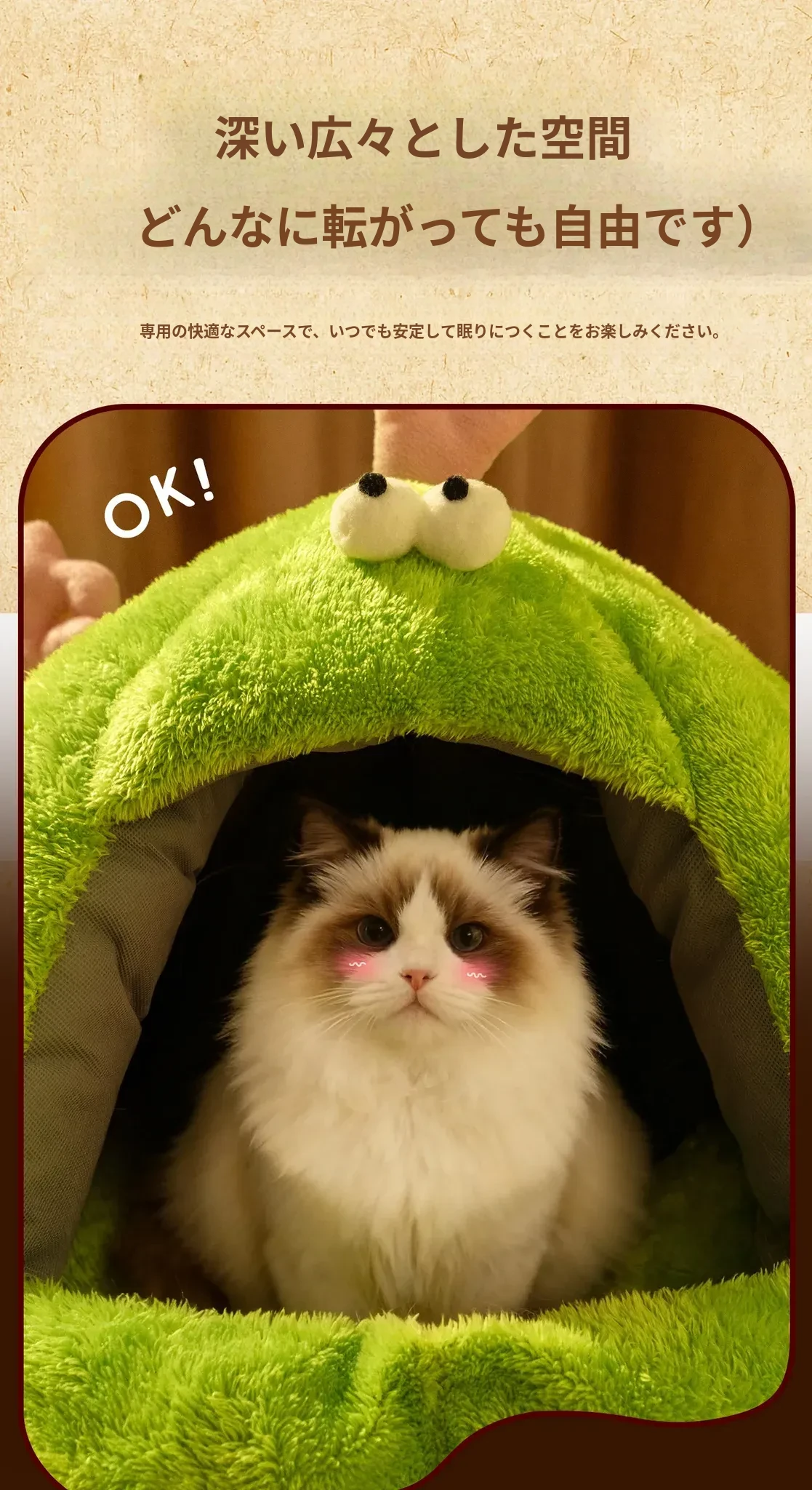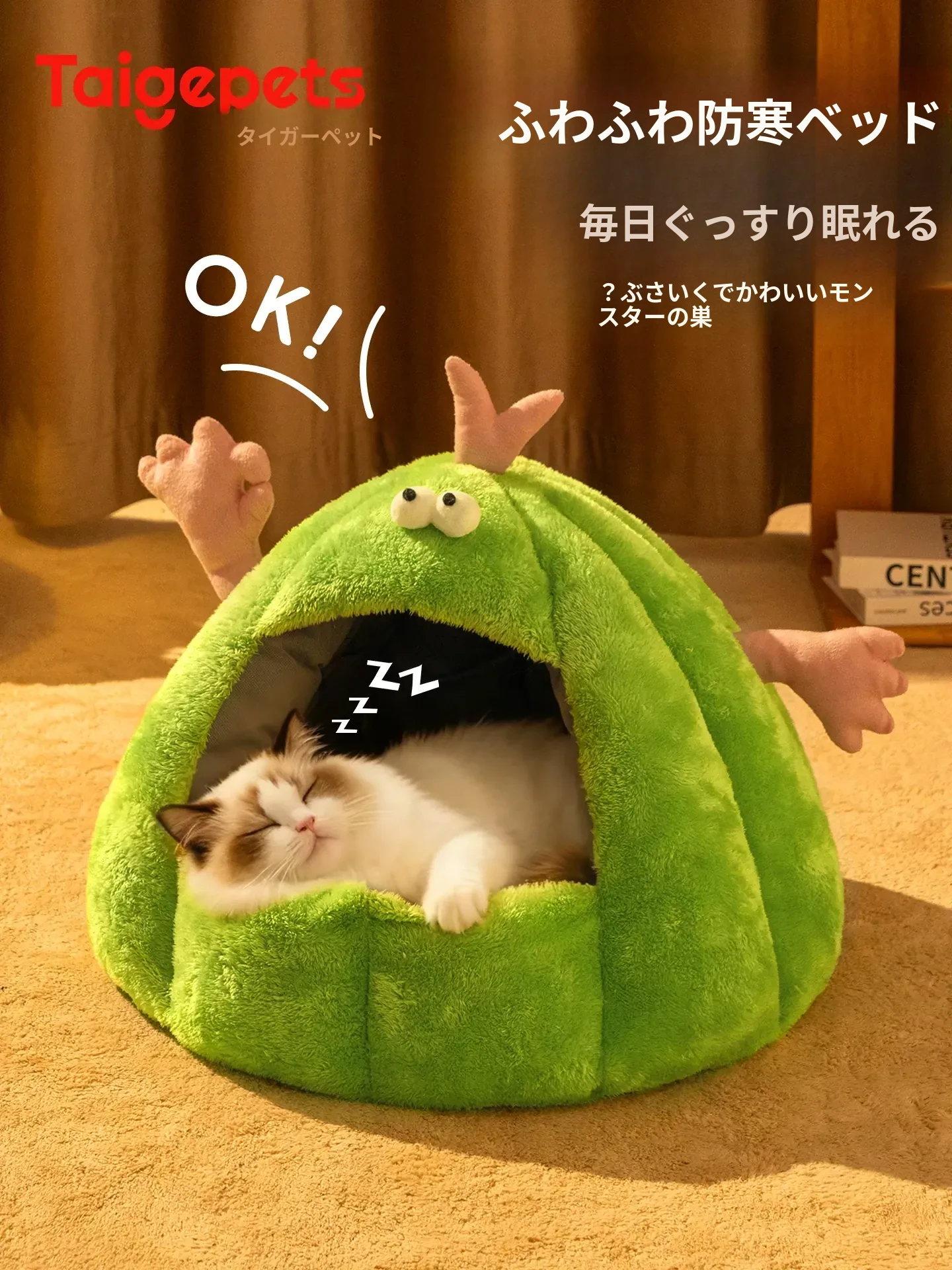 冬の寒さから守る!ふわふわの封閉式猫ベッド - 猫ちゃんのための暖かい寝床、四季折々に対応!快適な冬の眠りを実現する理想のアイテム。