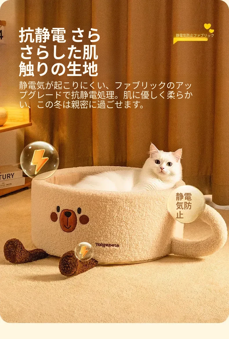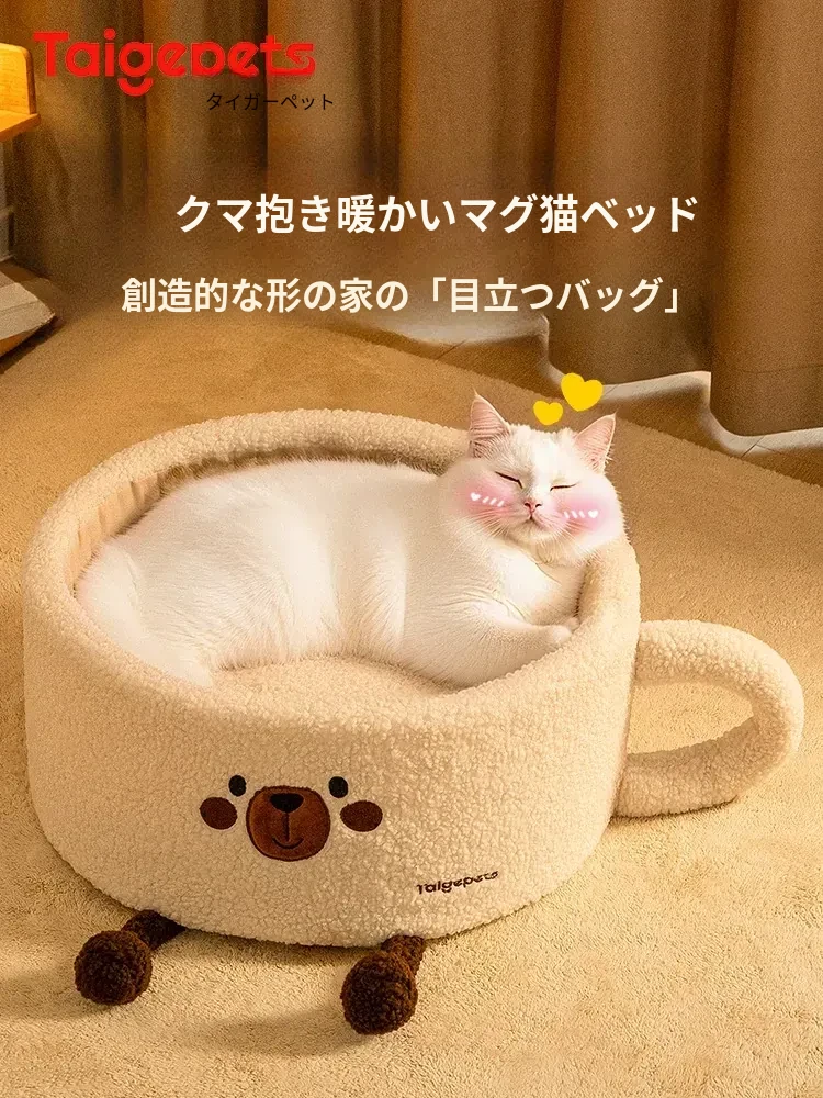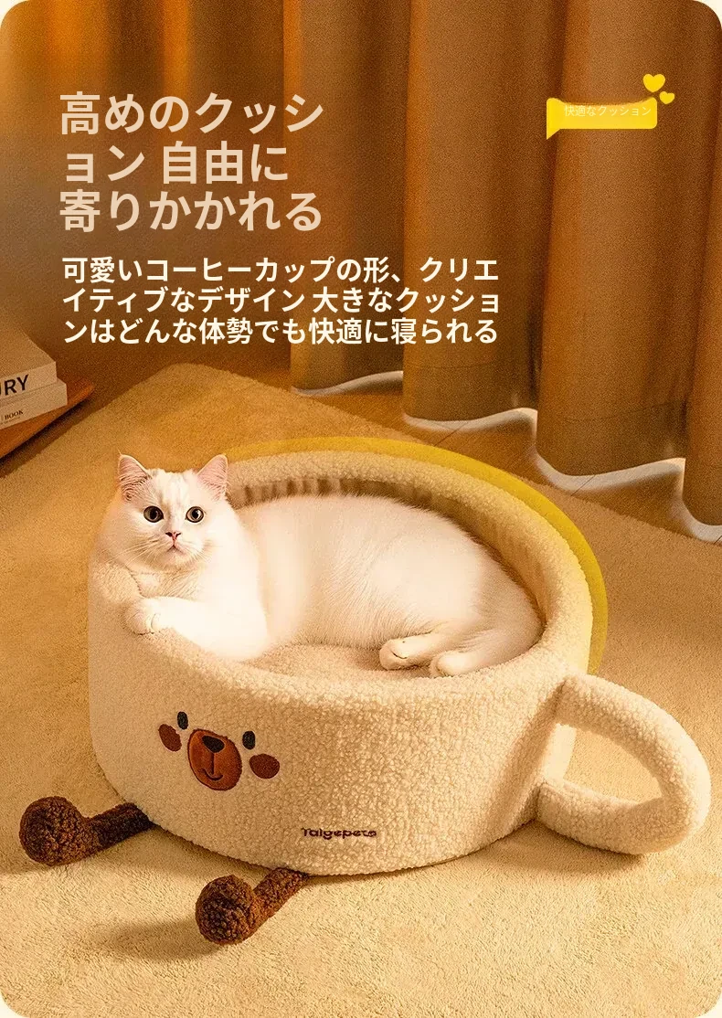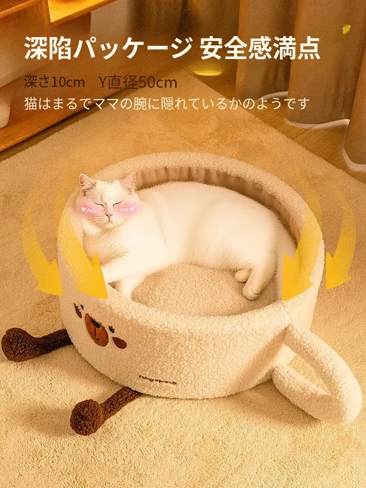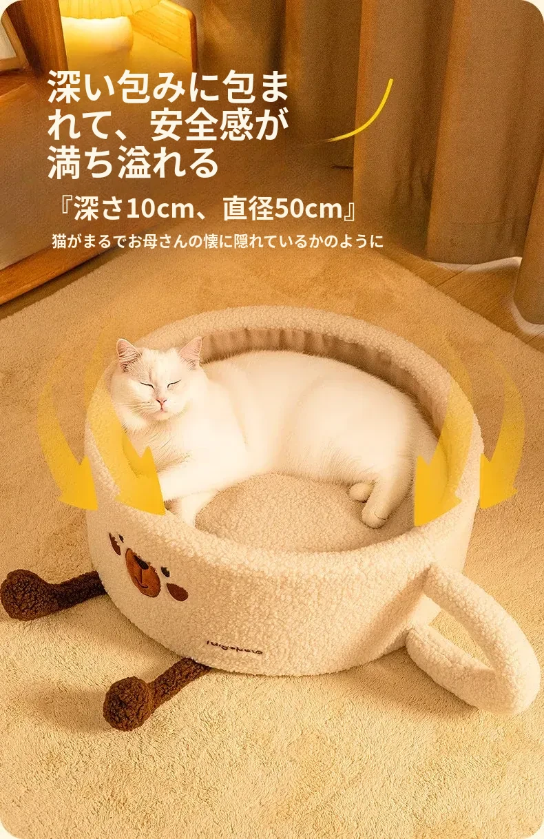 冬の寒さから守る!厚手の保温半封閉型キャットハウス - 四季通用、愛猫の安全と快適さを提供する新しい寝床!