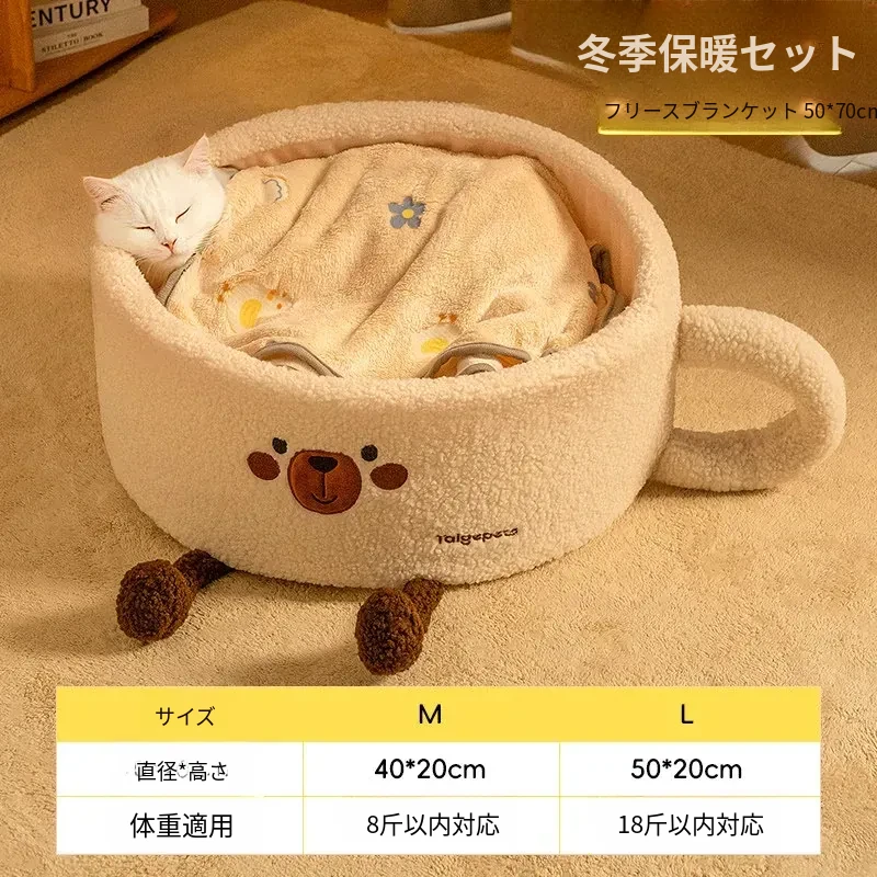 【倍の暖かさ】ロングレッグティーカップキャットハウス+ブランケット