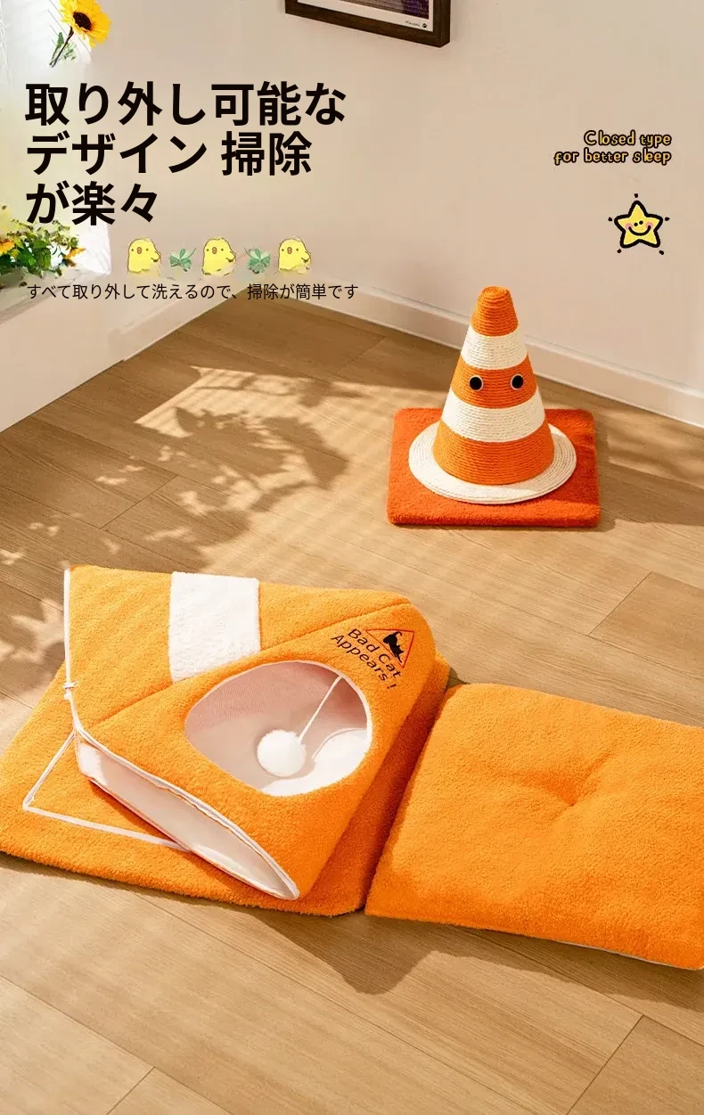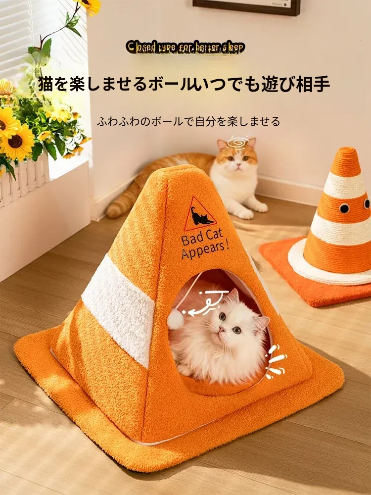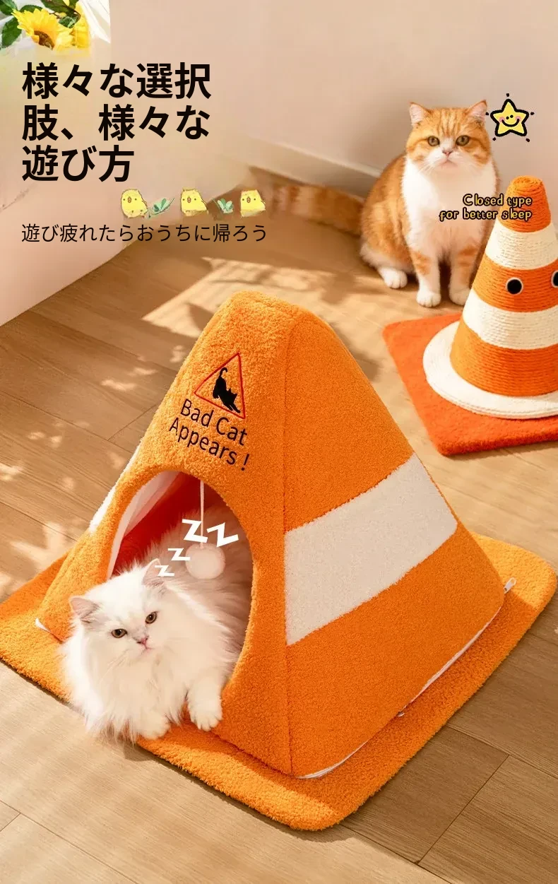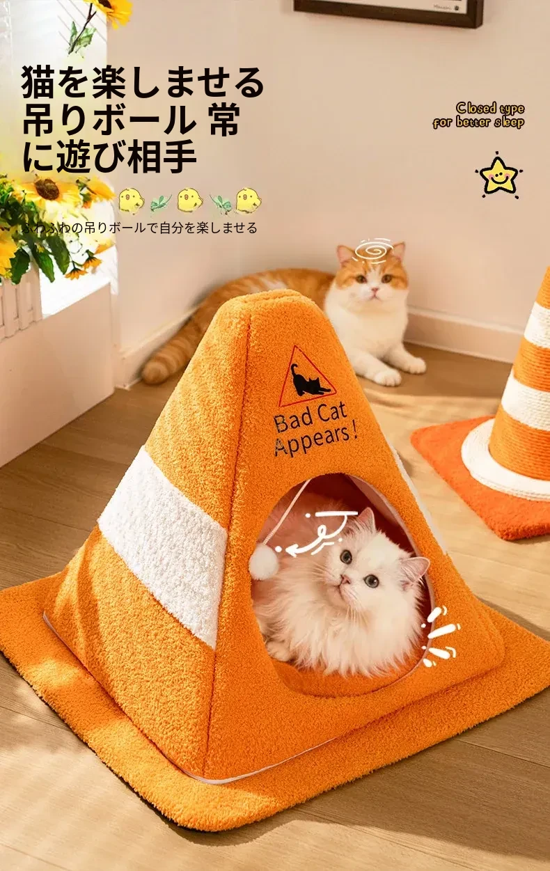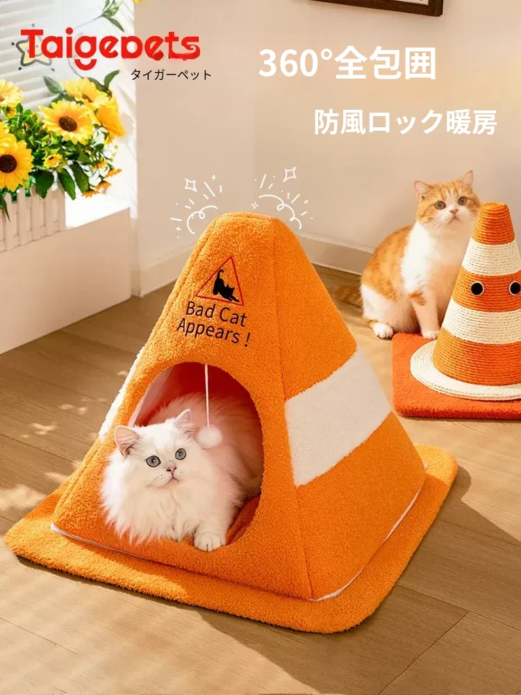 【インフルエンサー款バリケードキャットハウス】360°防風ロック暖かい 全面洗える 自動おもちゃボール付き