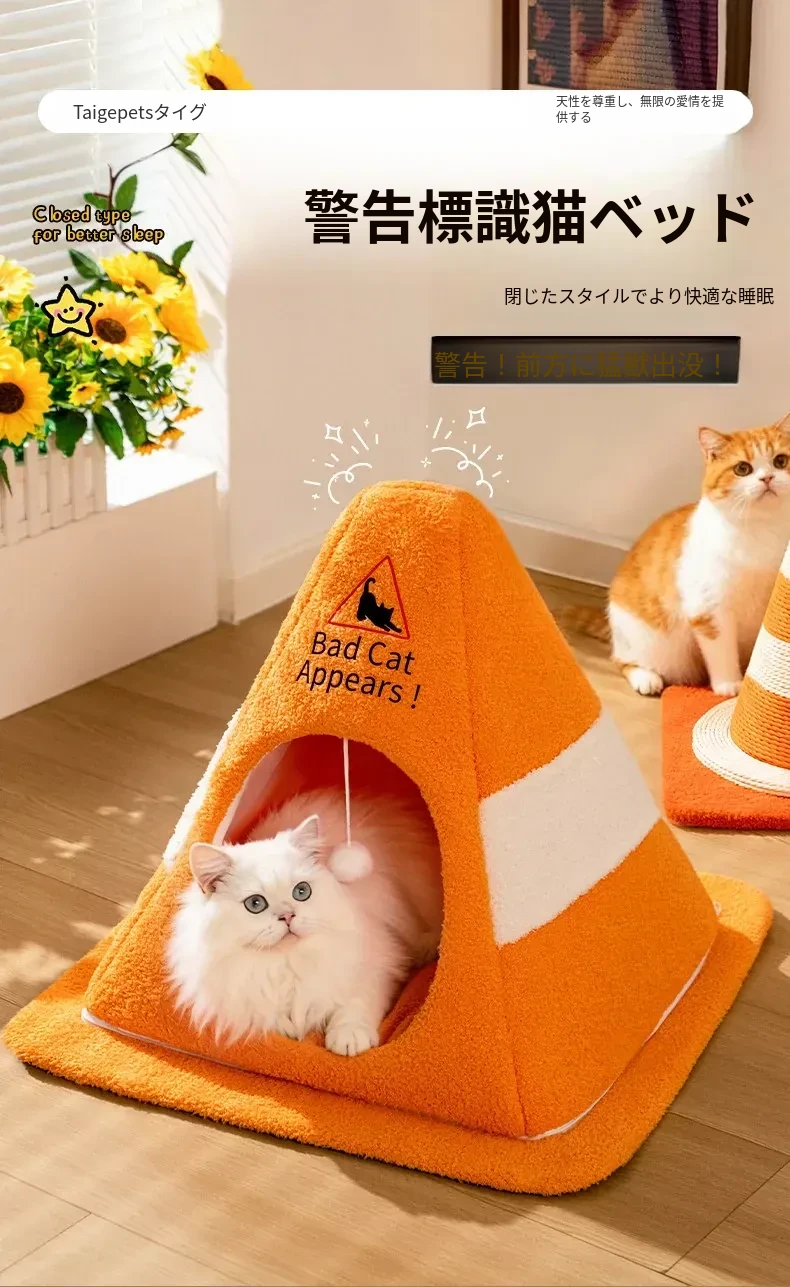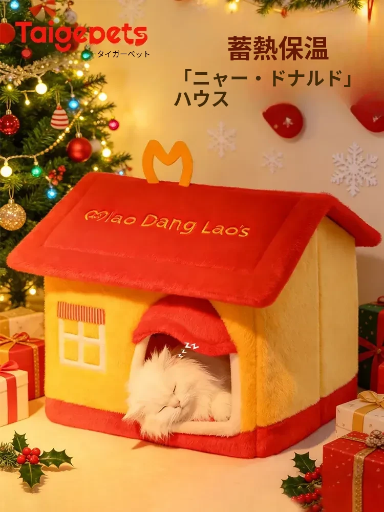 冬季安心!猫ちゃんのための厚手封閉式ベッド - 4シーズン対応、洗えるデザインで、寒い冬も快適に過ごせます!小猫も安心して眠れる温かいお家をお届けします。