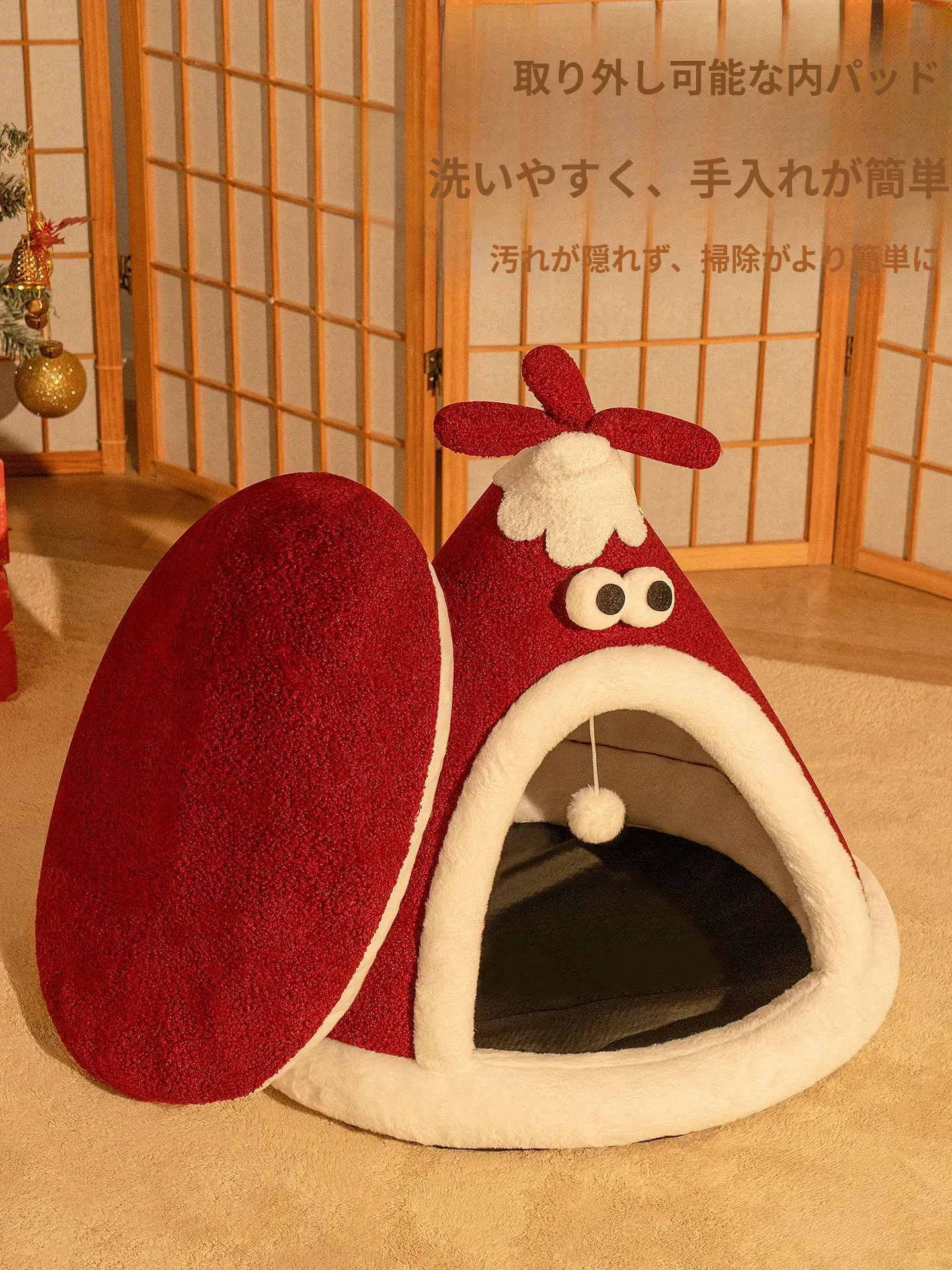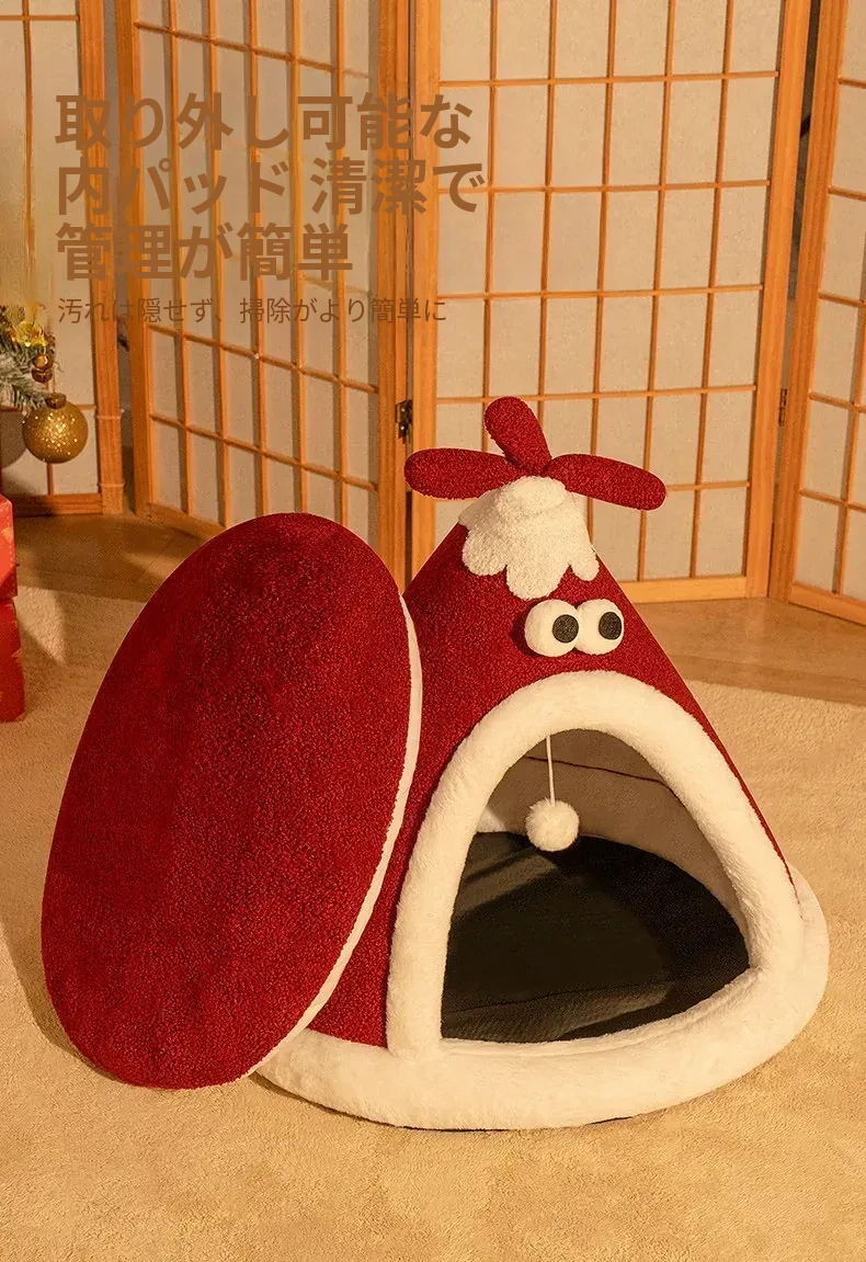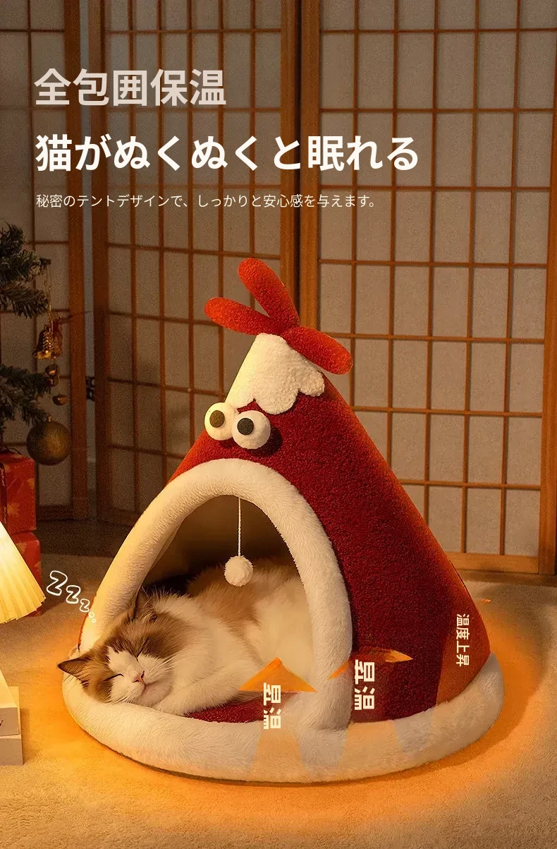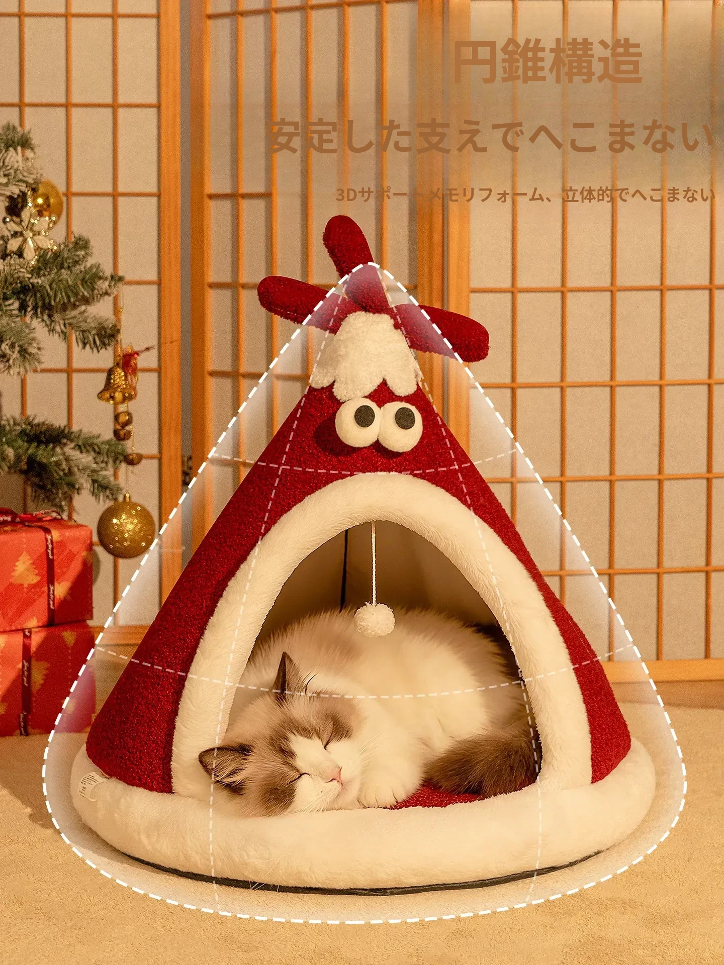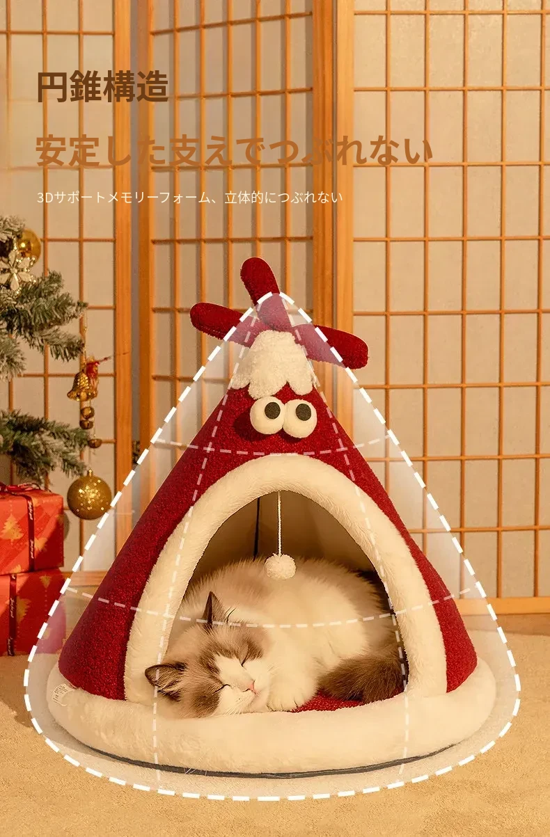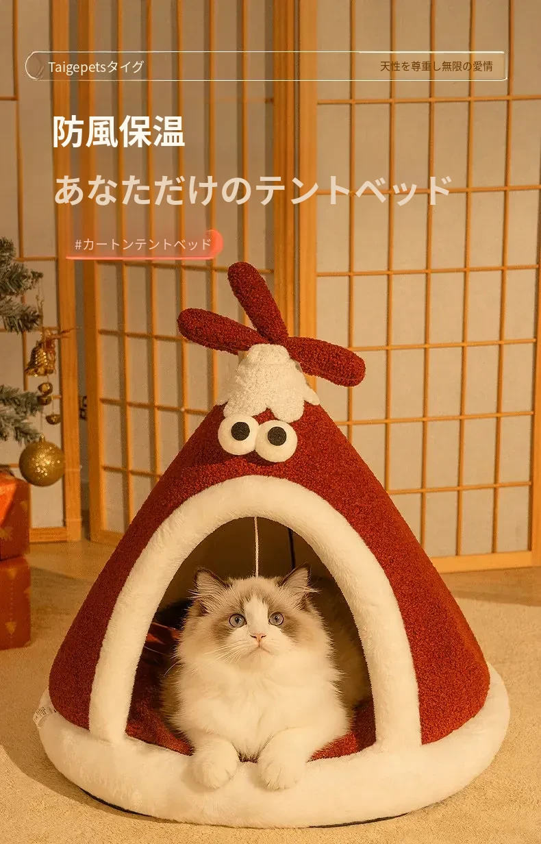 冬の寒さから守る!全面封閉式テント型猫ハウス - 四季を通じて愛猫の安心感を提供し、クリスマスにぴったりの隠れ家!