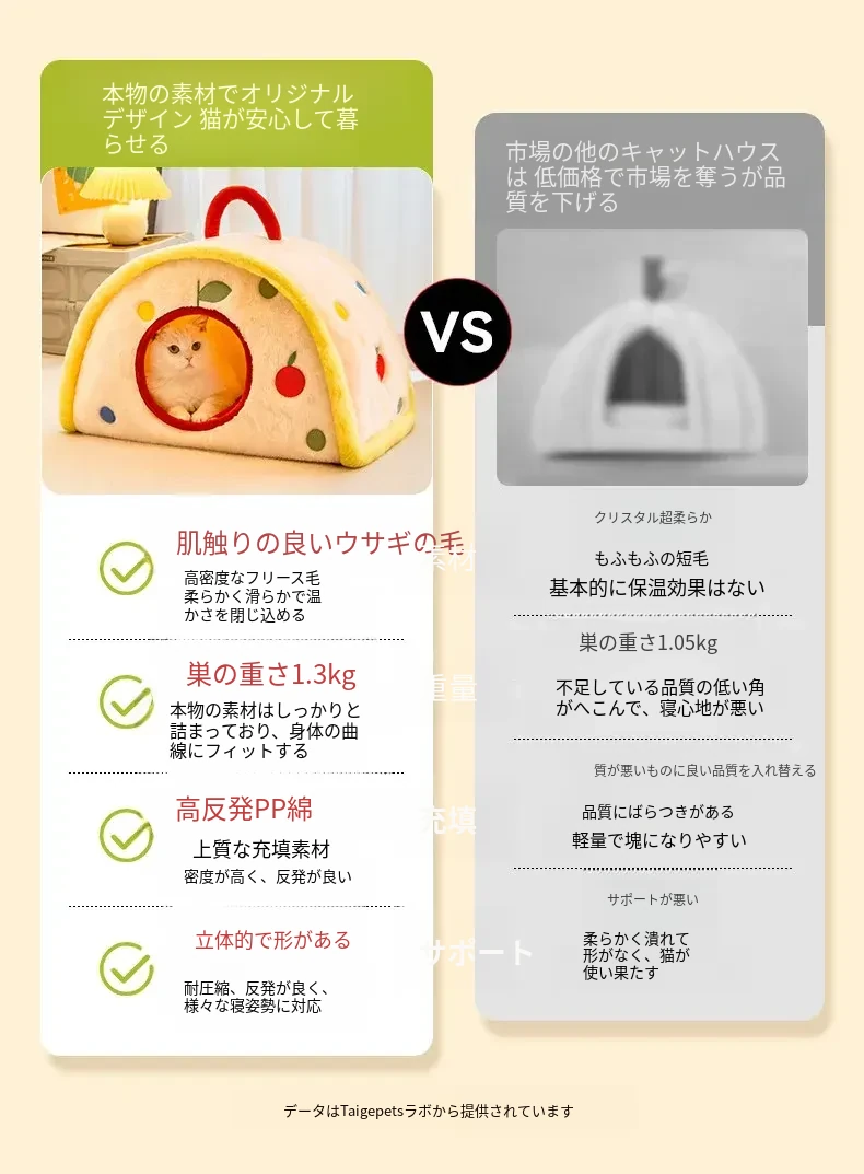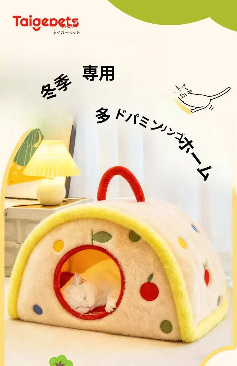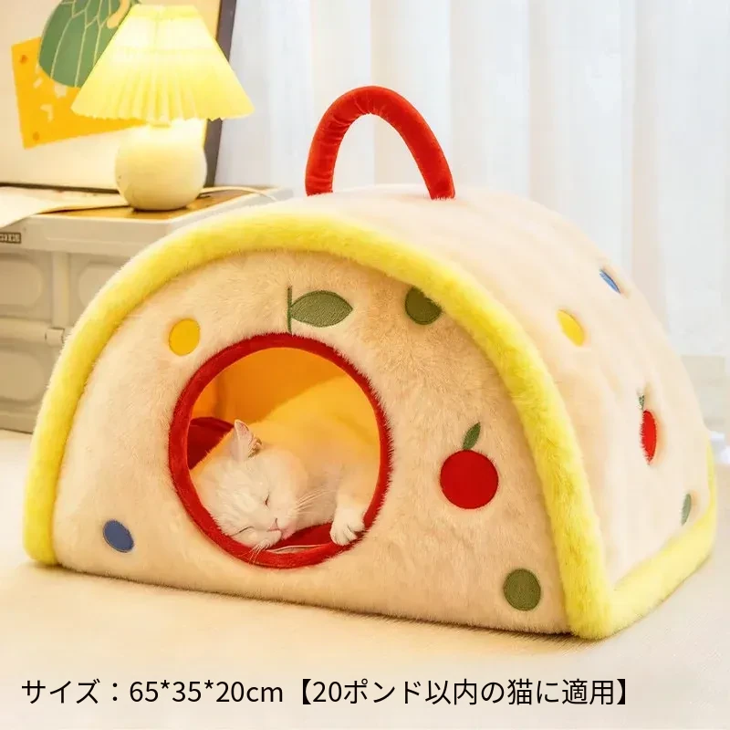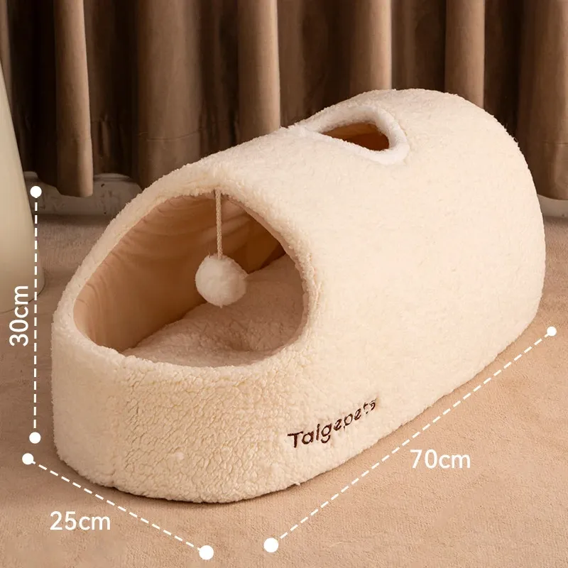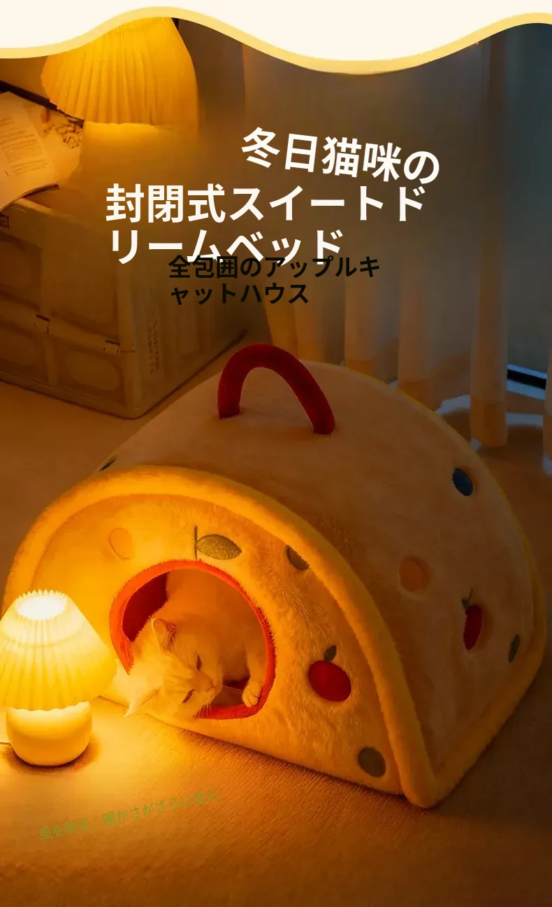 ドーパミンキャットハウス|冬にぴったりの厚手暖か小ウサギ毛のクローズドタイプ!大きめサイズで安心感抜群の猫用寝床、愛猫のために特別な快適空間を提供します!