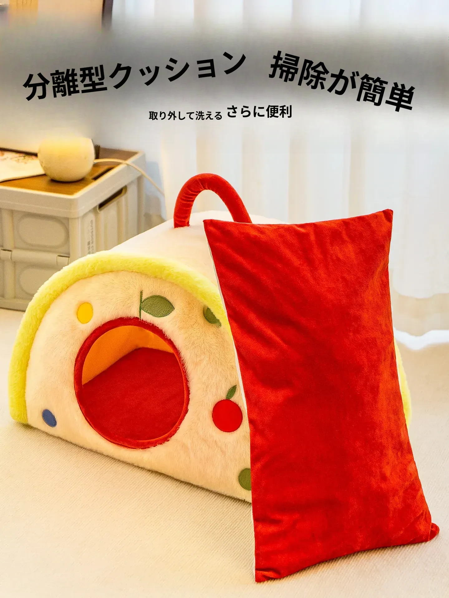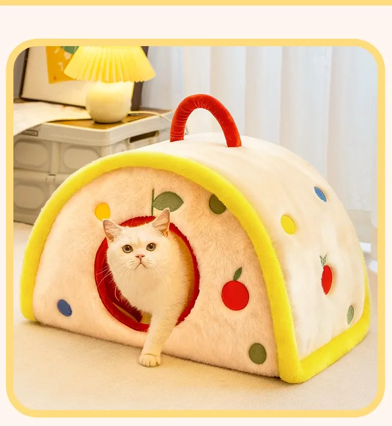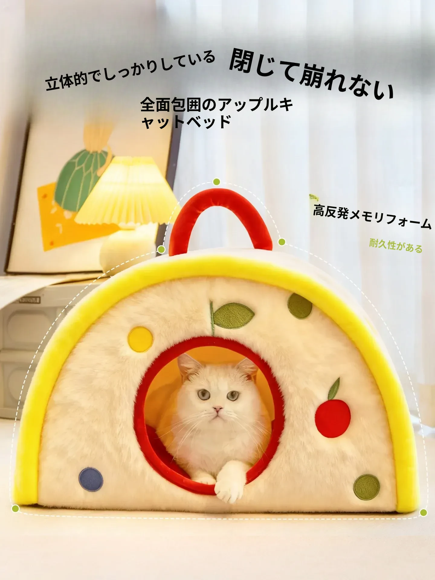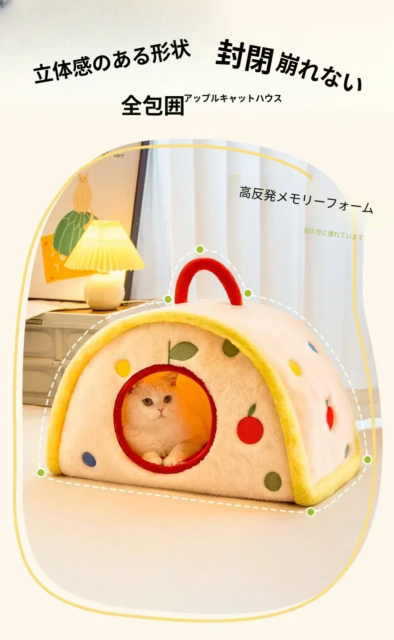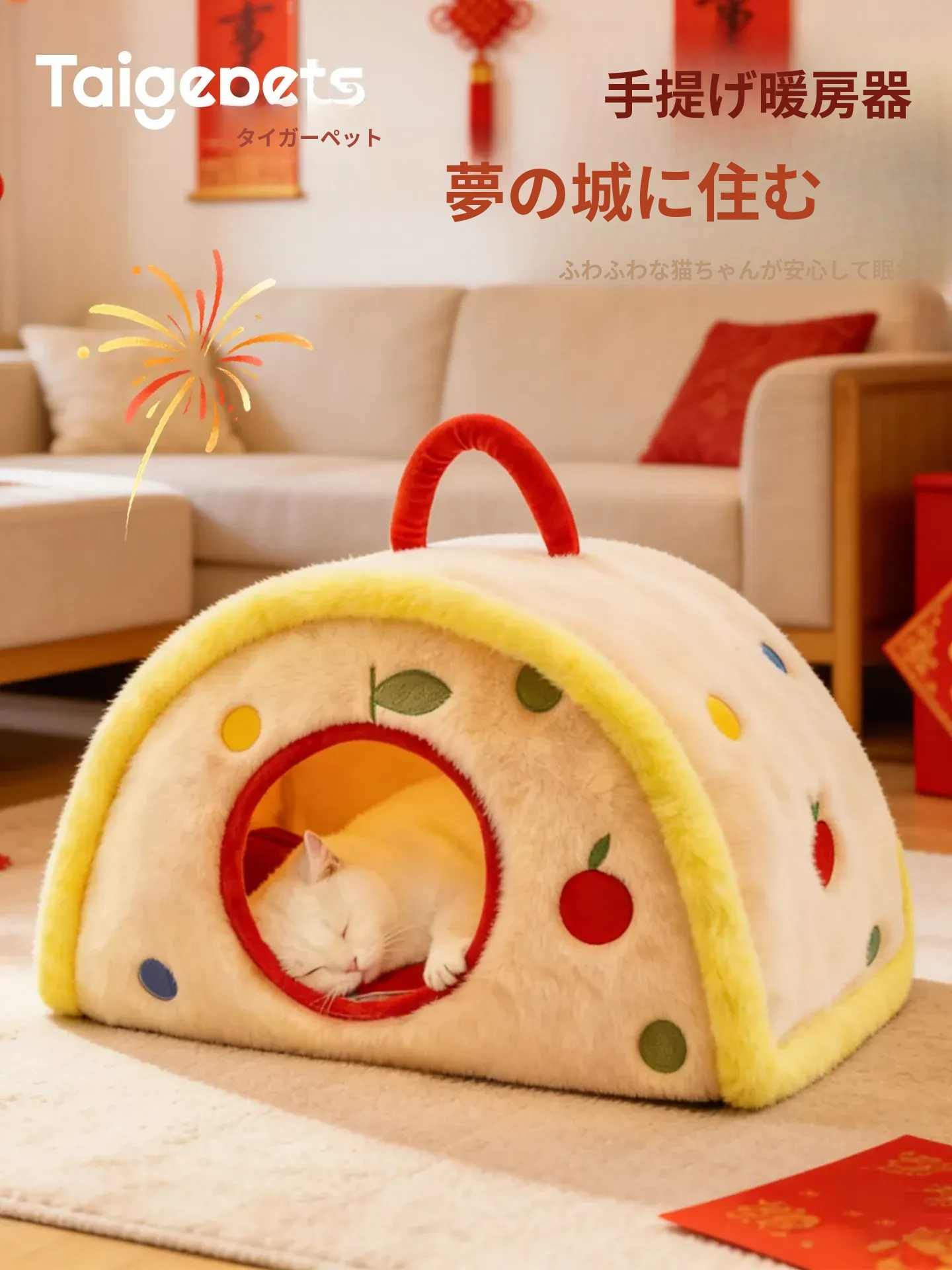ドーパミンキャットハウス|冬にぴったりの厚手暖か小ウサギ毛のクローズドタイプ!大きめサイズで安心感抜群の猫用寝床、愛猫のために特別な快適空間を提供します!
