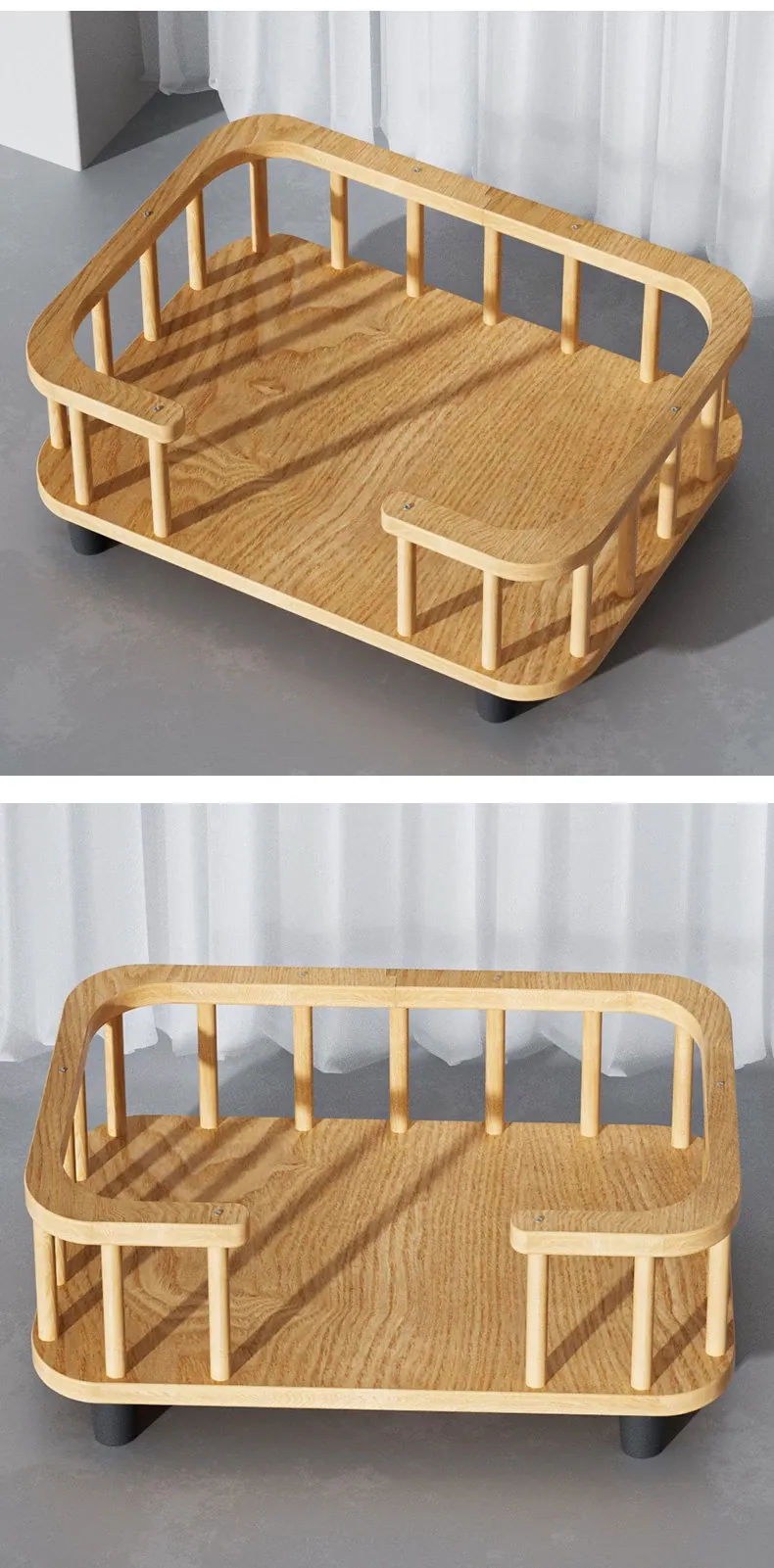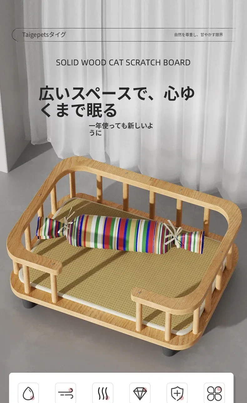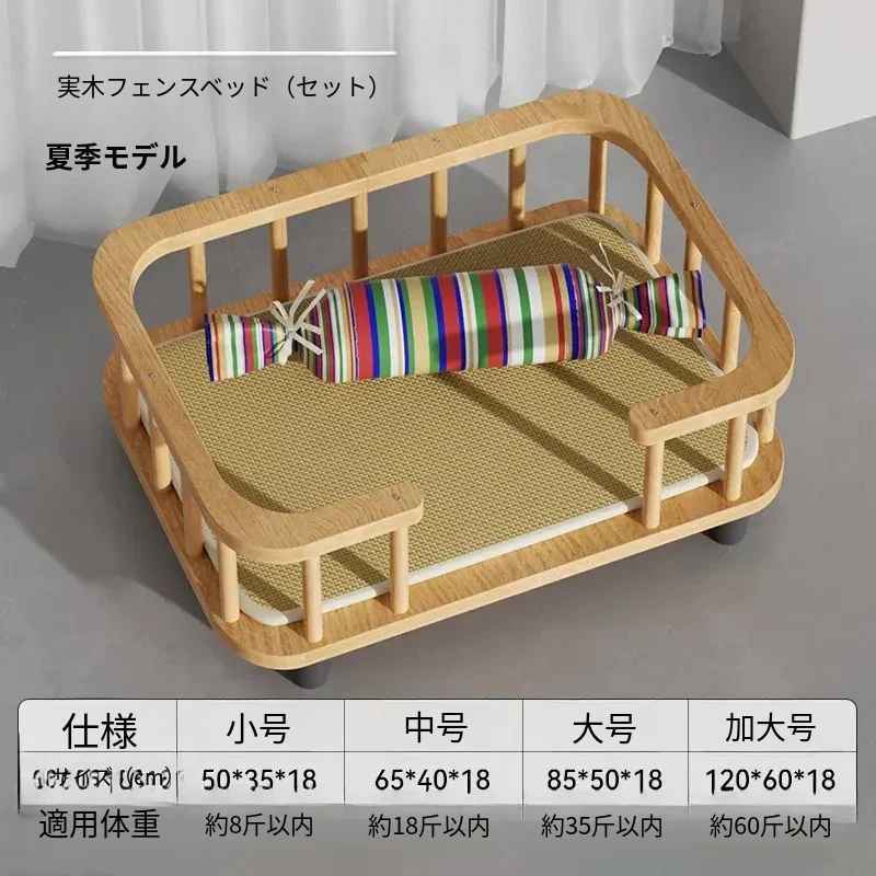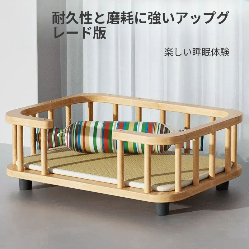 無垢材フェンスベッドセット(枕+涼席)-夏季モデル