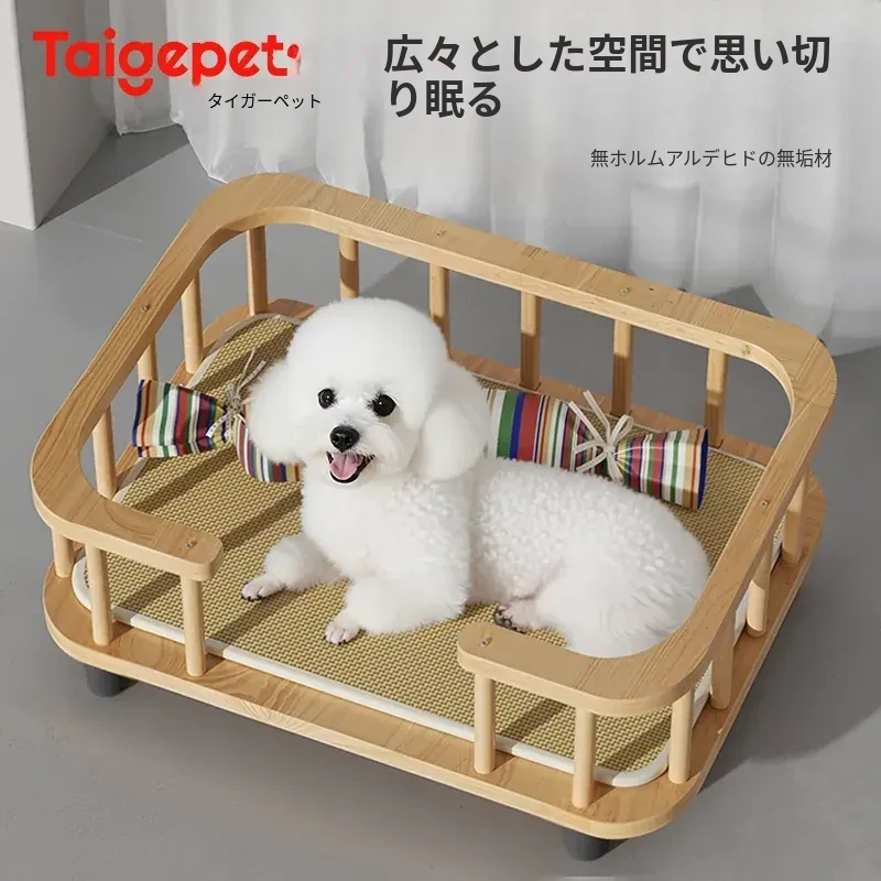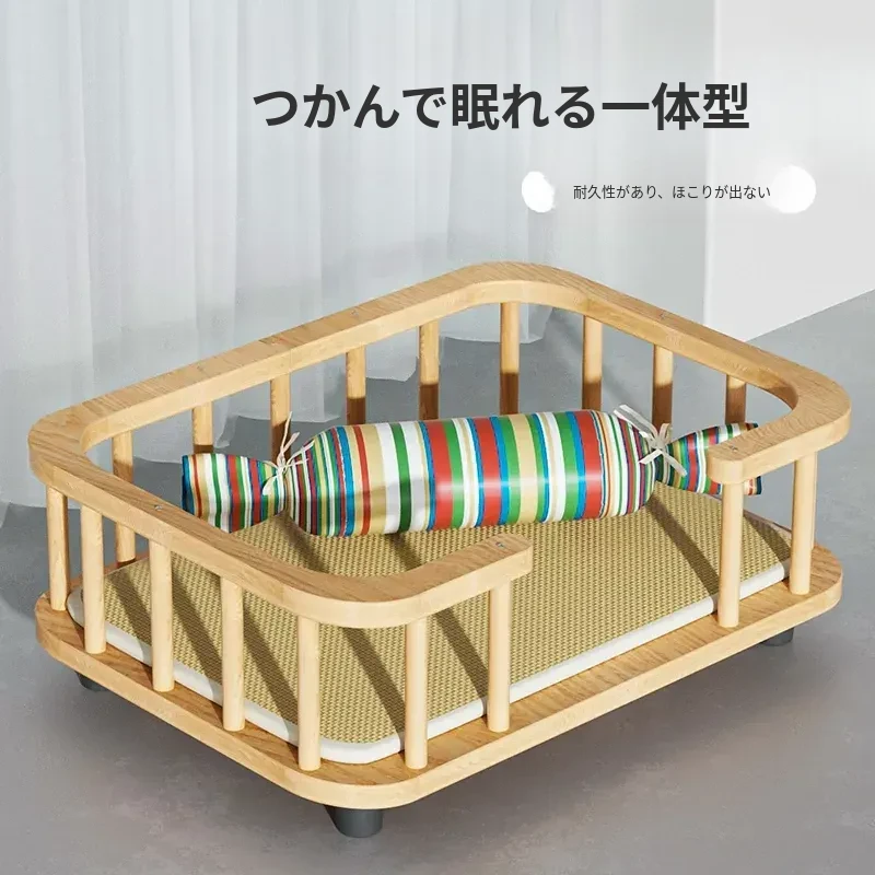 夏用・通年対応の実木製ドッグベッド!中小型犬やテディ、ビションフリーゼに最適な離地型ペットベッドで、快適な睡眠をサポート。愛犬のための特別な空間を提供します!