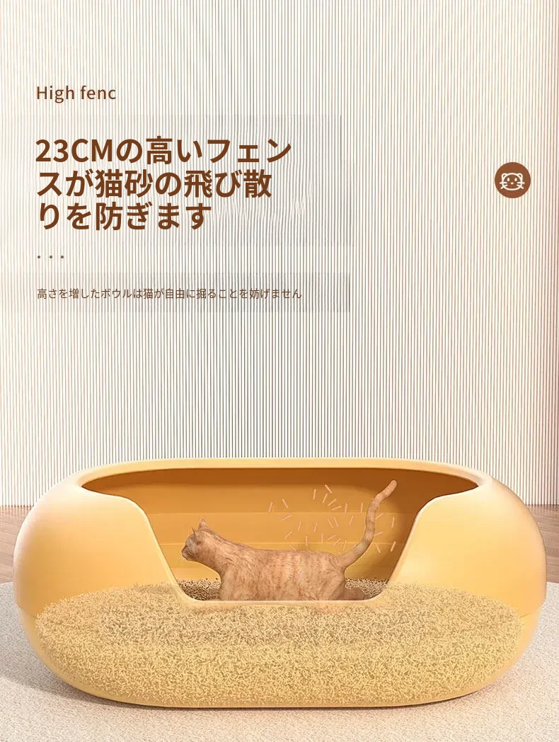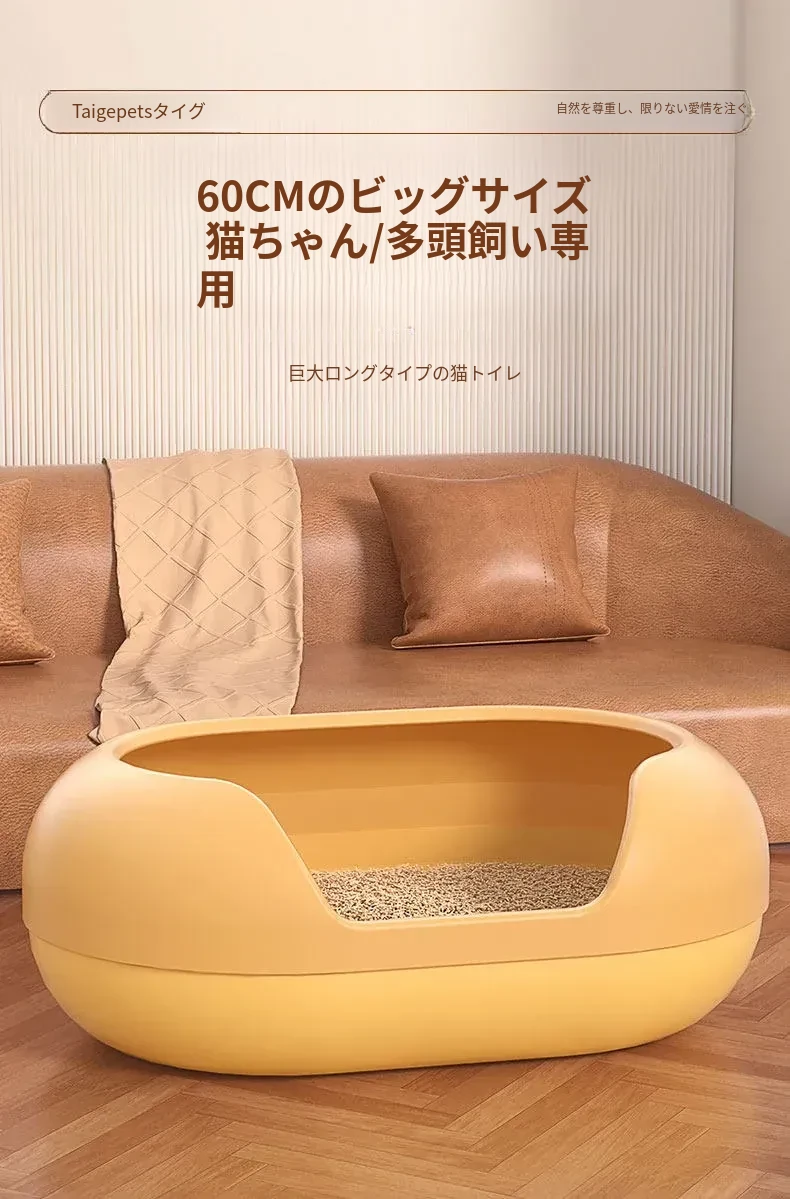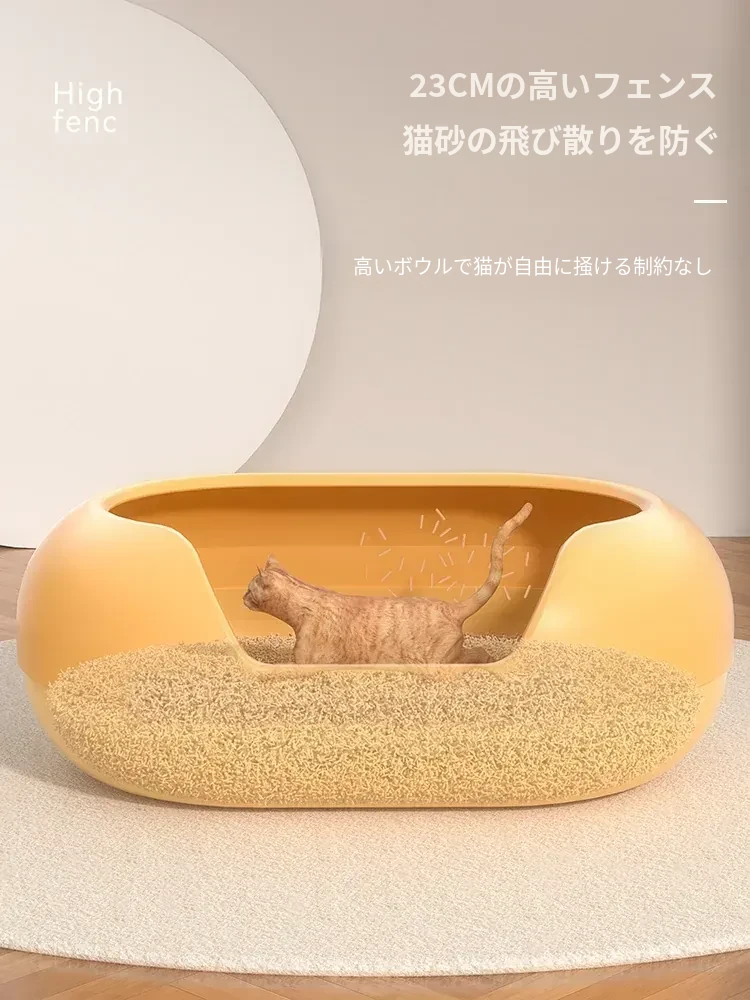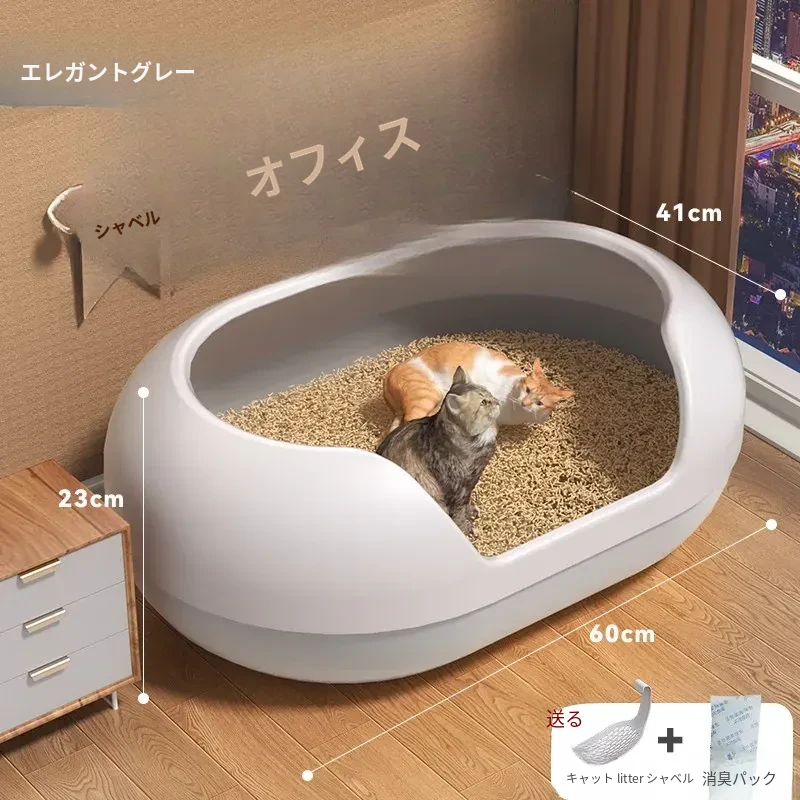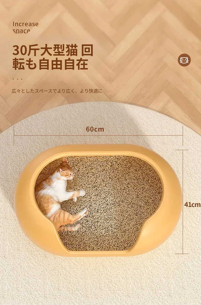 特大号猫砂トイレ - 半封閉・防外跳び設計、巨型オープンスタイル!愛猫の快適さを追求した、超大型専用トイレで、お掃除もラクラク!