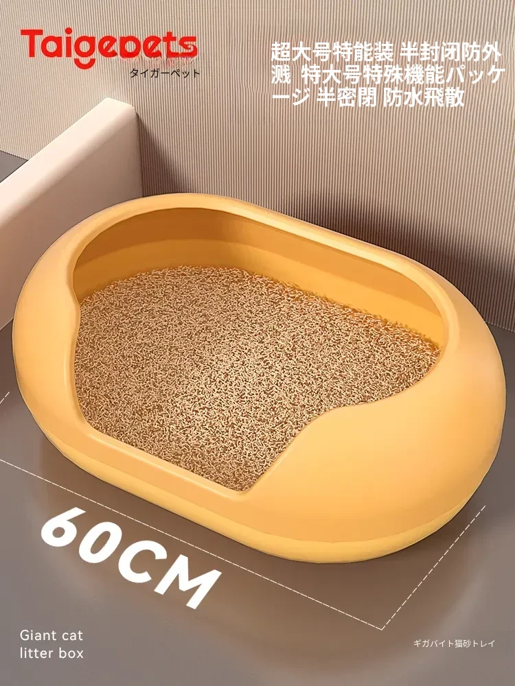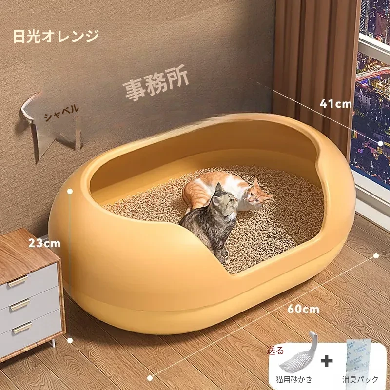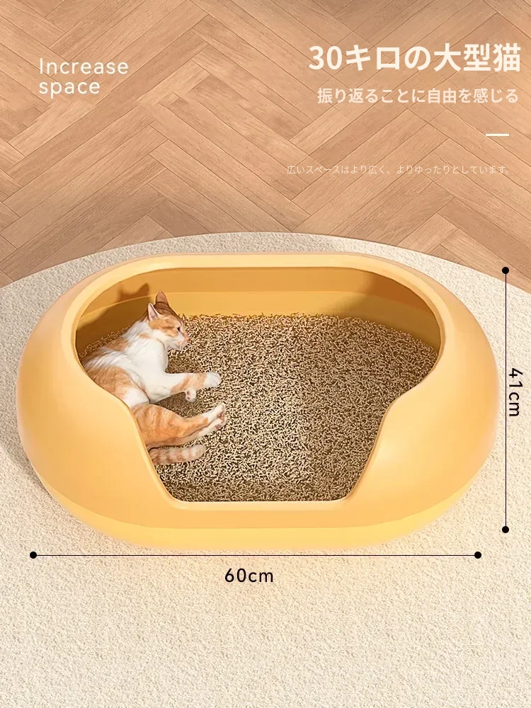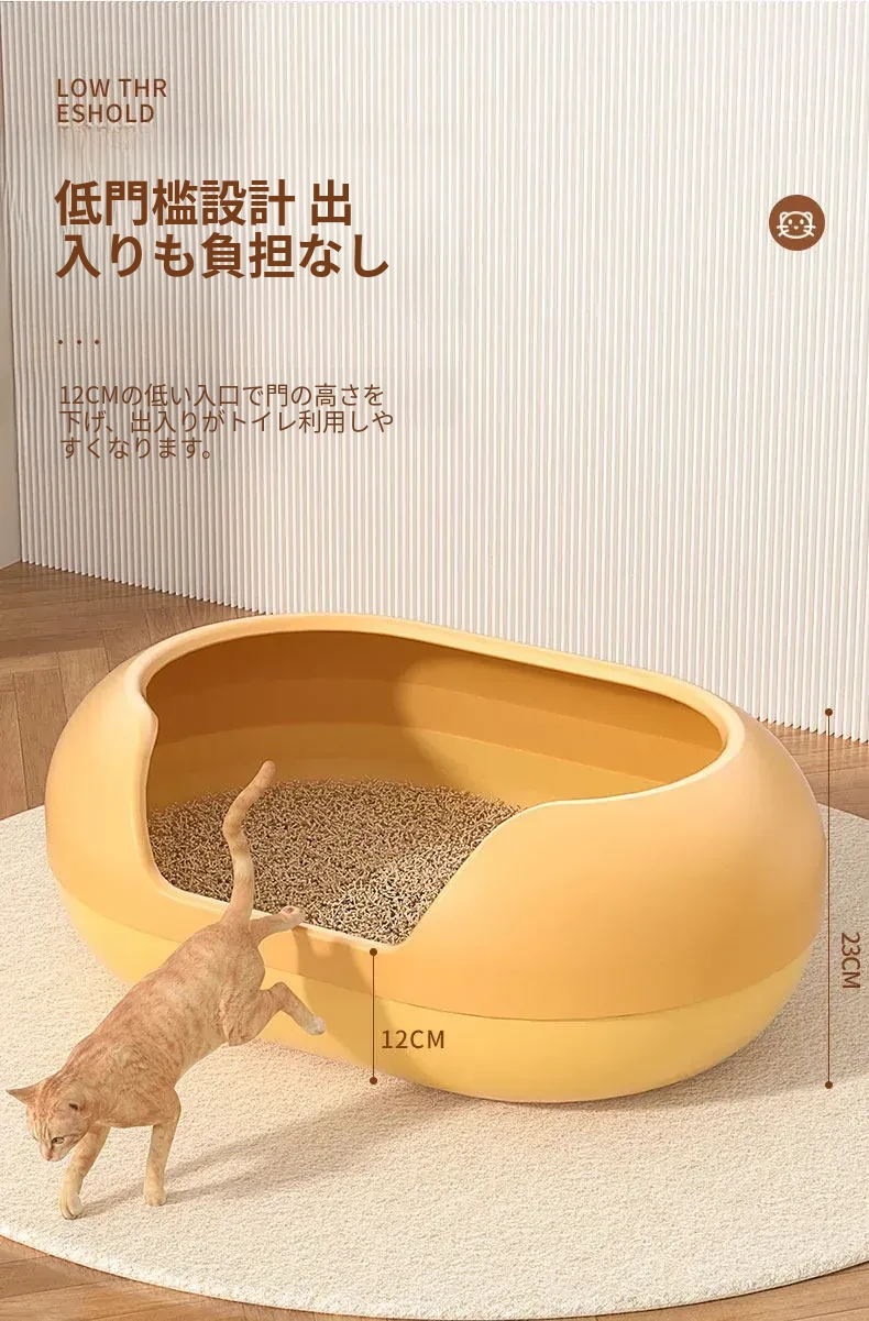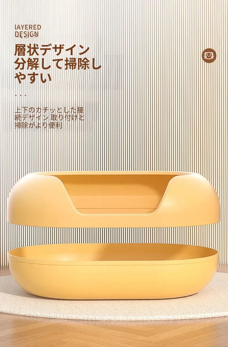 特大号猫砂トイレ - 半封閉・防外跳び設計、巨型オープンスタイル!愛猫の快適さを追求した、超大型専用トイレで、お掃除もラクラク!