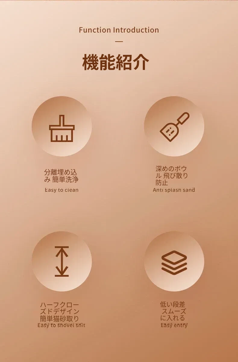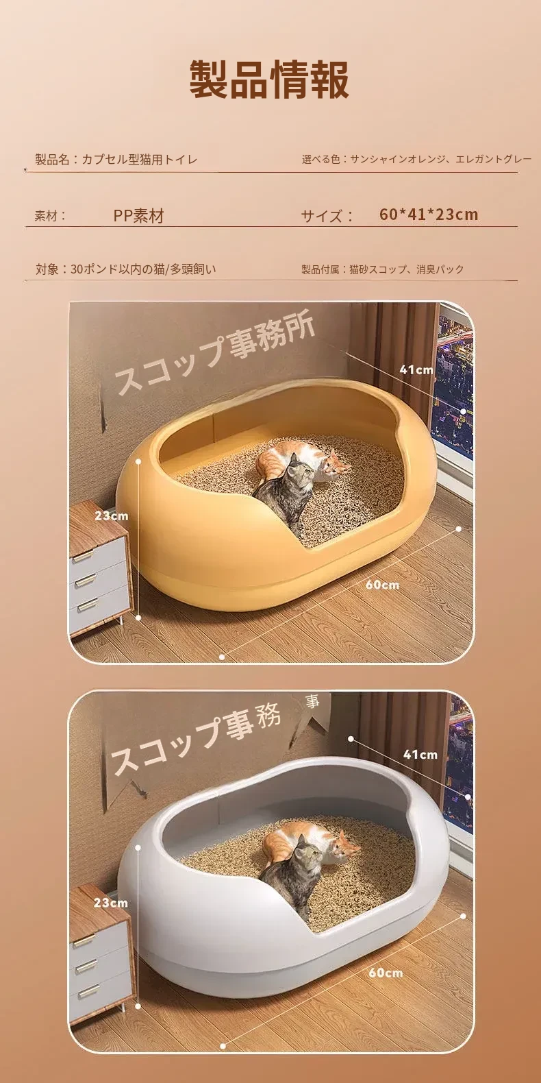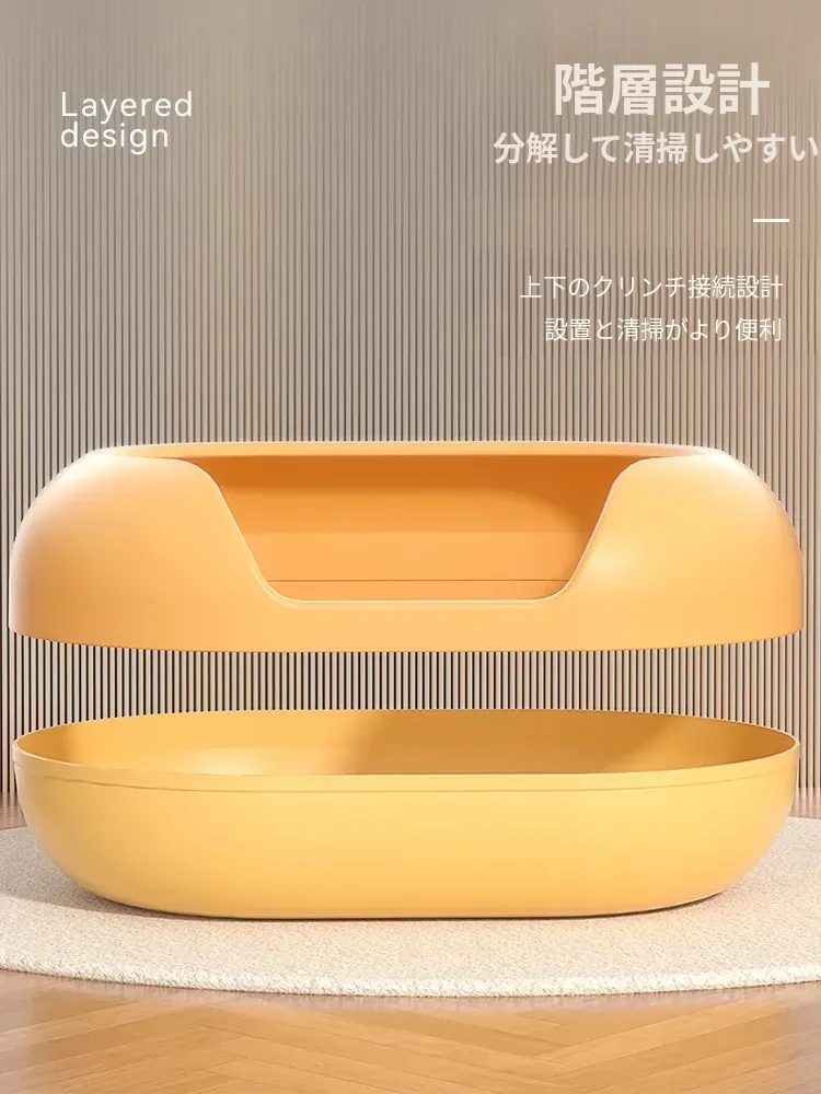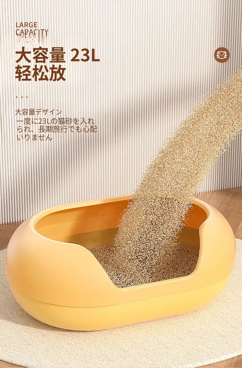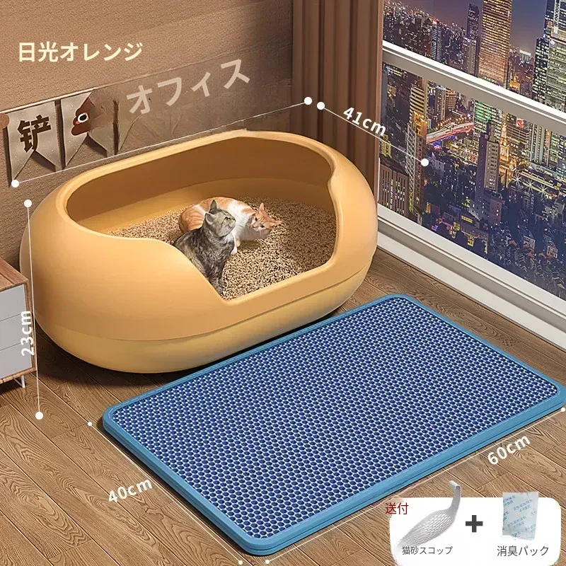特大号猫砂トイレ - 半封閉・防外跳び設計、巨型オープンスタイル!愛猫の快適さを追求した、超大型専用トイレで、お掃除もラクラク!