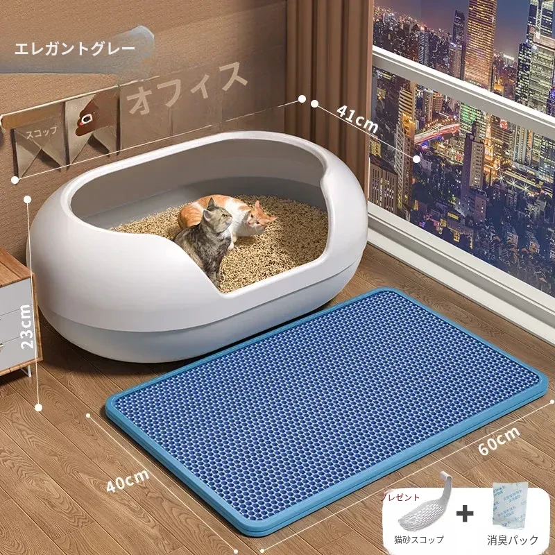 エレガントグレー+防水猫砂マット 猫砂スコップ+消臭パック付き