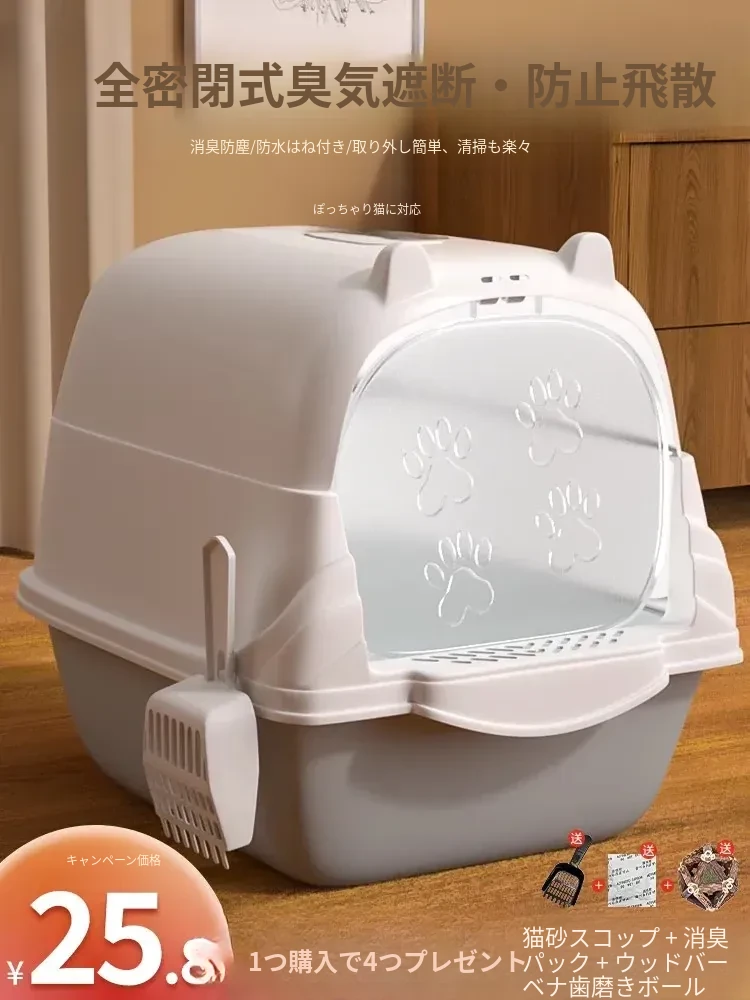 超大型キャットトイレ!完全密閉型で臭いをシャットアウト、飛び散り防止設計!子猫にも最適な砂とトイレのセットで、あなたの猫ちゃんの快適な生活をサポートします!