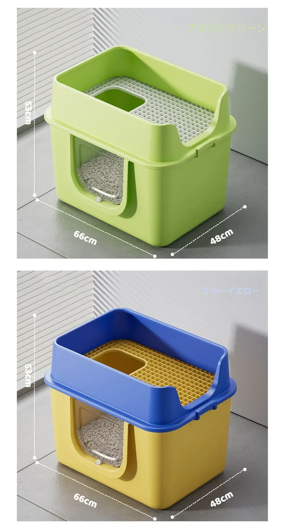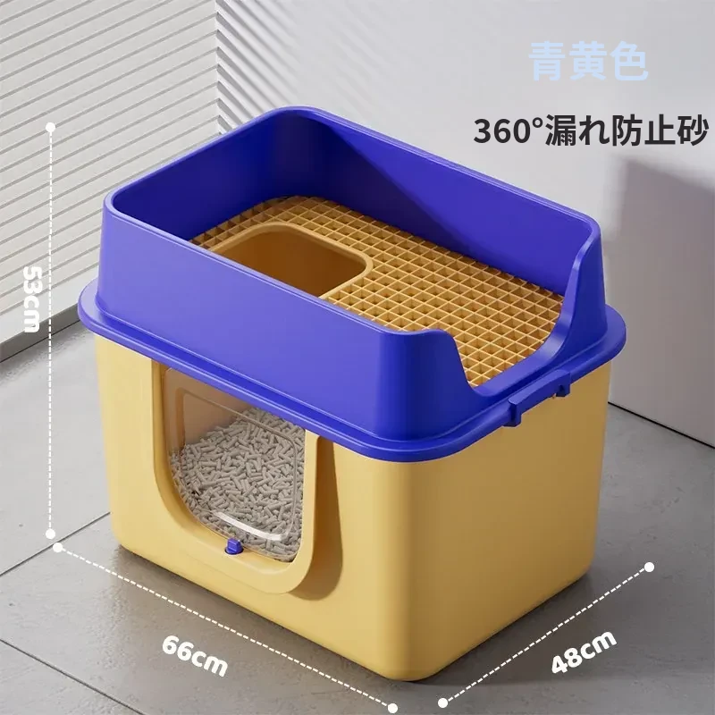 ブルーイエロー66cm超大号【一体成型防漏尿】本当にゼロ漏れ砂(猫砂スコップ付き)