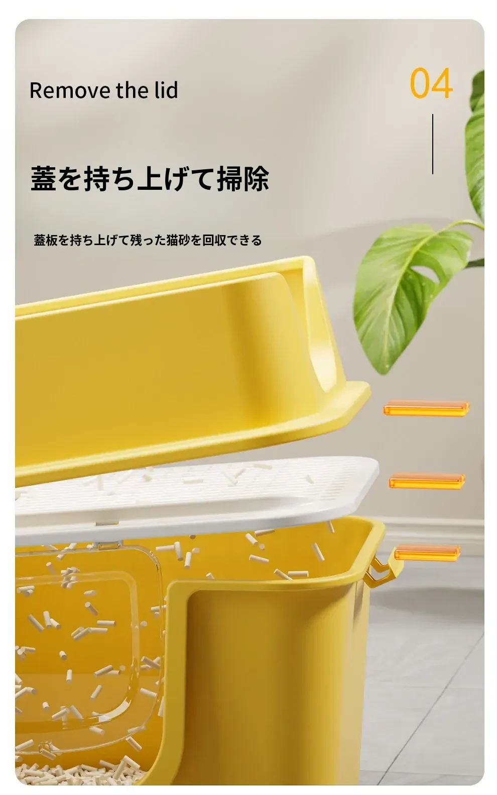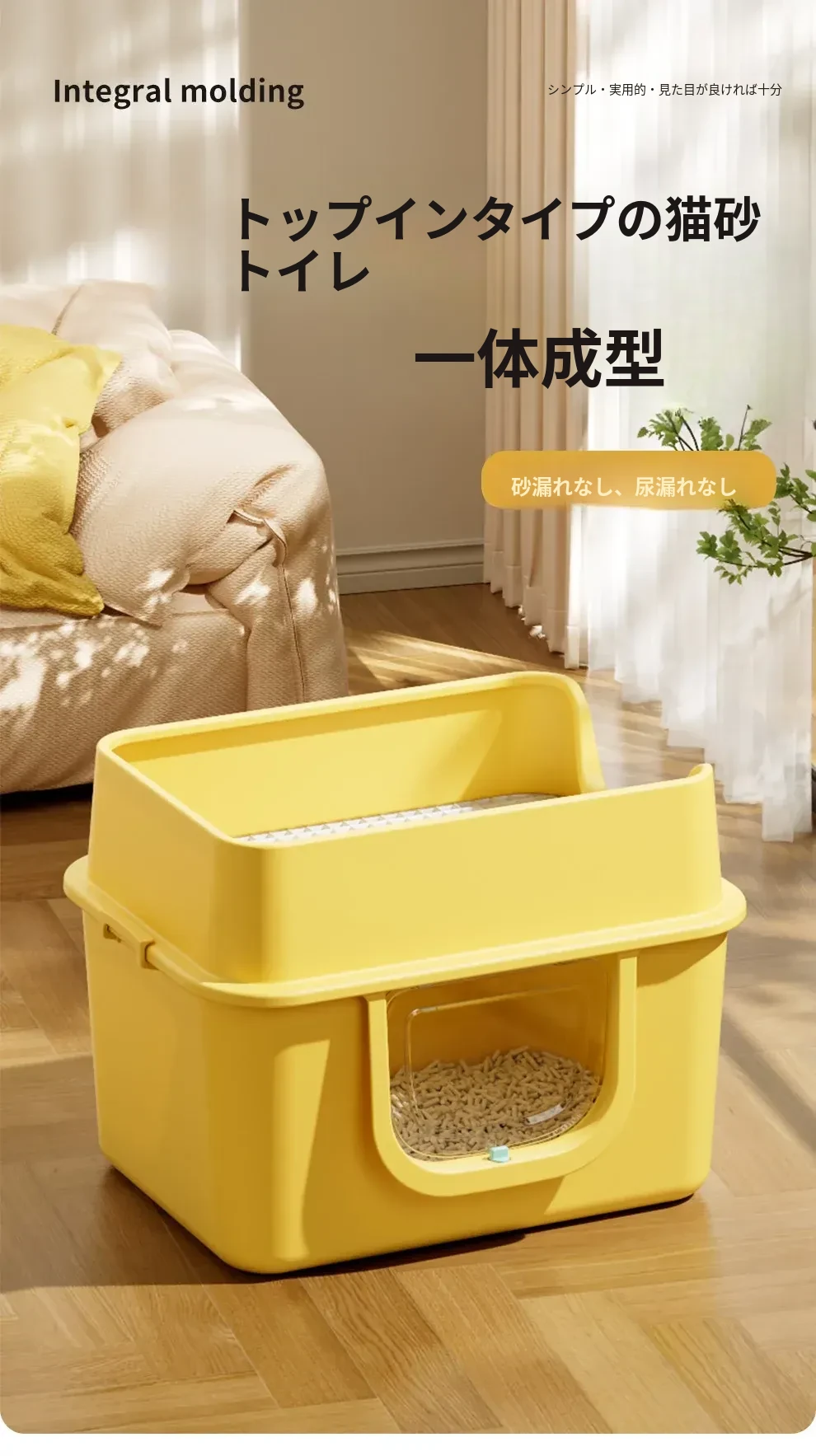 マンゴーイエロー66cm超大号【一体成型防漏尿】本当にゼロ漏れ砂(猫砂スコップ付き)