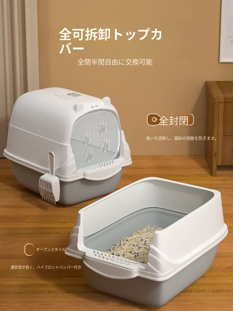 全封閉型超大型猫トイレ!防水設計で飛び散りを防止、引き出し式でお手入れ簡単。臭い対策もばっちりの猫砂盆!大切な猫ちゃんの快適空間を提供します。
