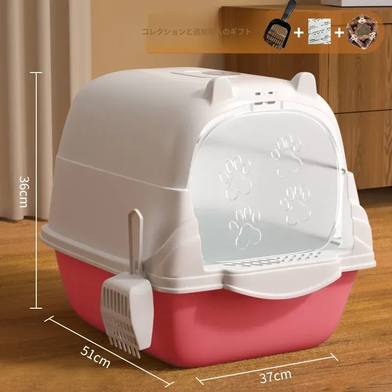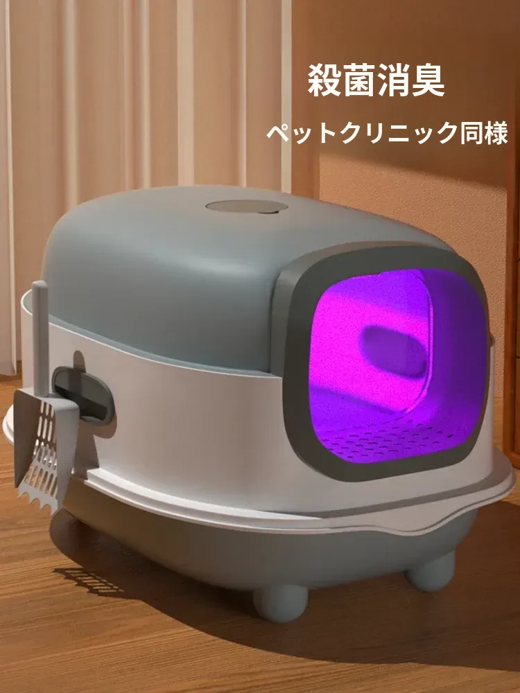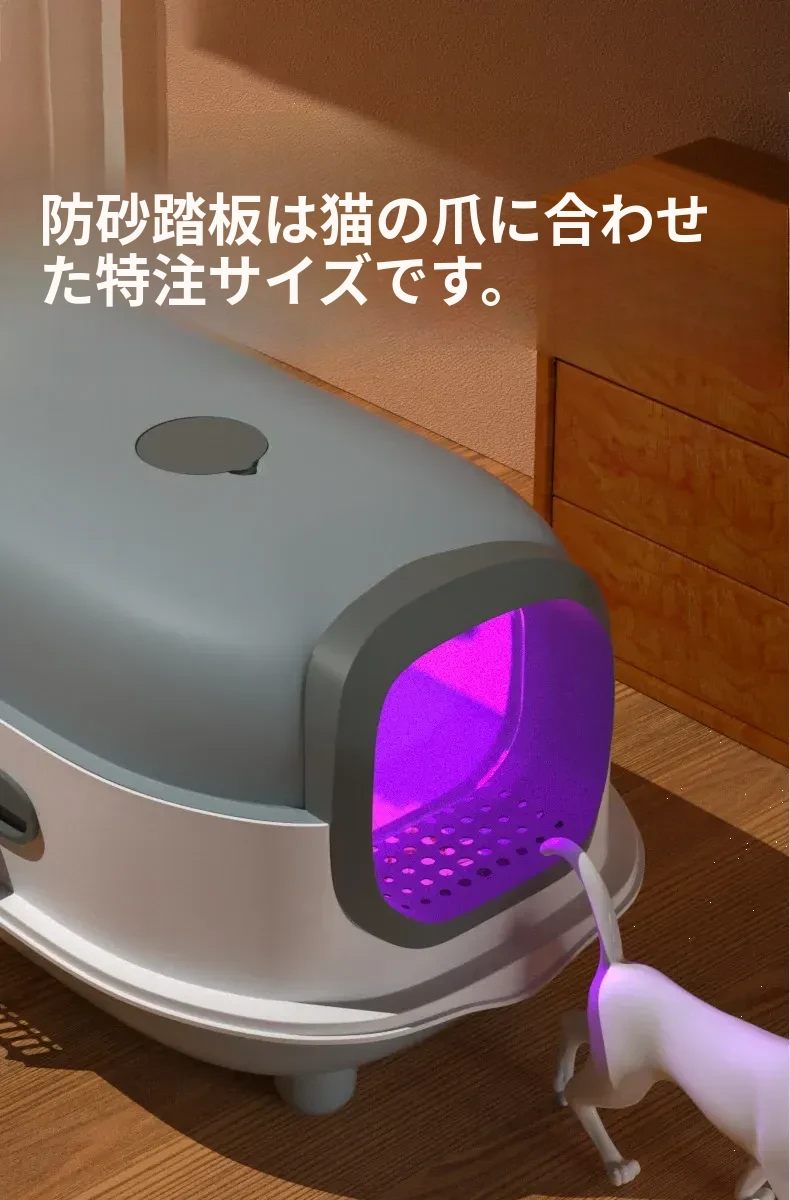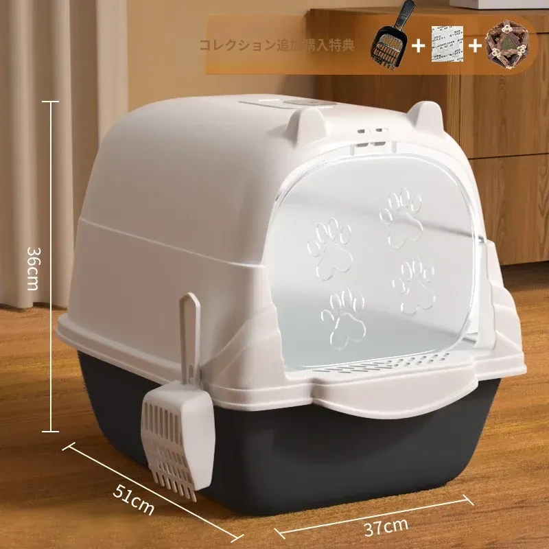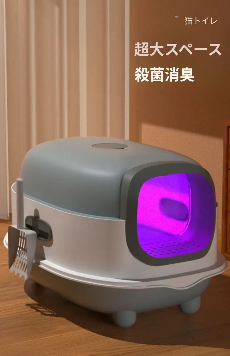 全封閉型の超大型猫トイレ - 防げる飛び散り、強力なダニ除去機能付き、臭いをシャットアウト!愛猫のための快適で清潔なトイレ用品です。