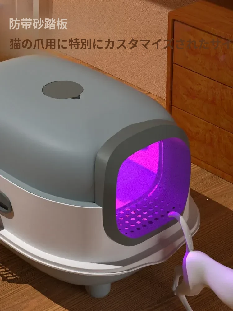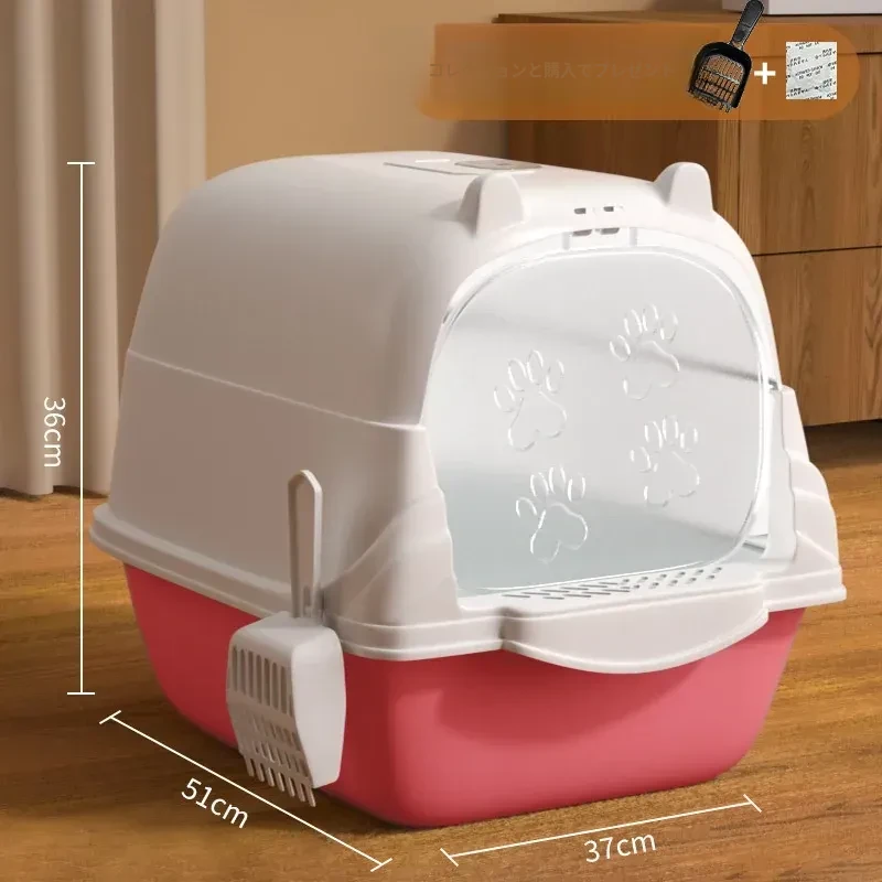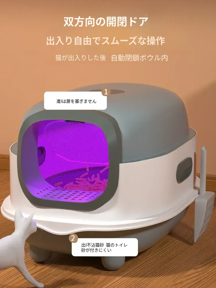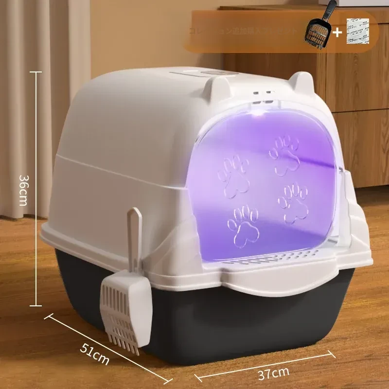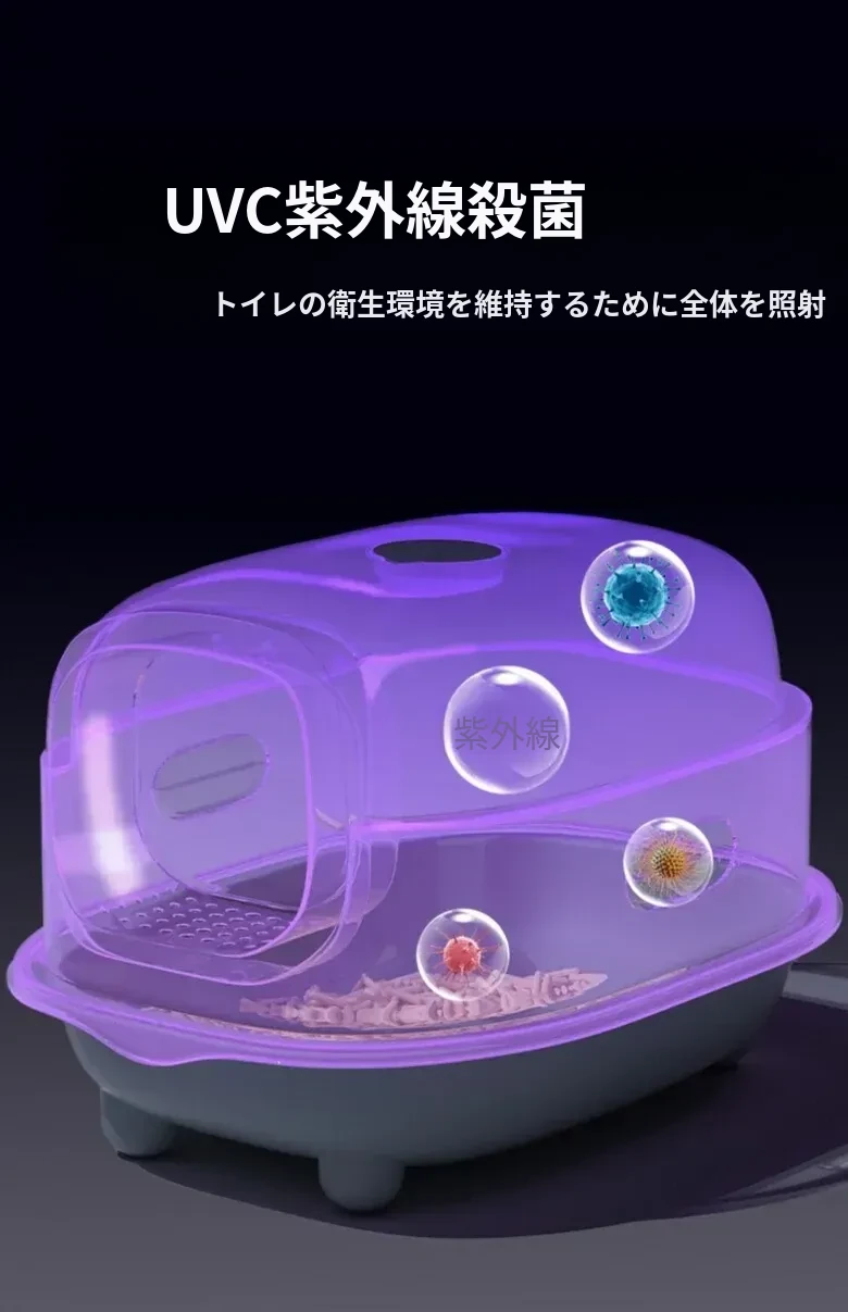 全封閉型の超大型猫トイレ - 防げる飛び散り、強力なダニ除去機能付き、臭いをシャットアウト!愛猫のための快適で清潔なトイレ用品です。