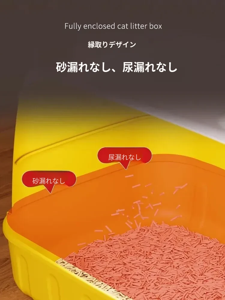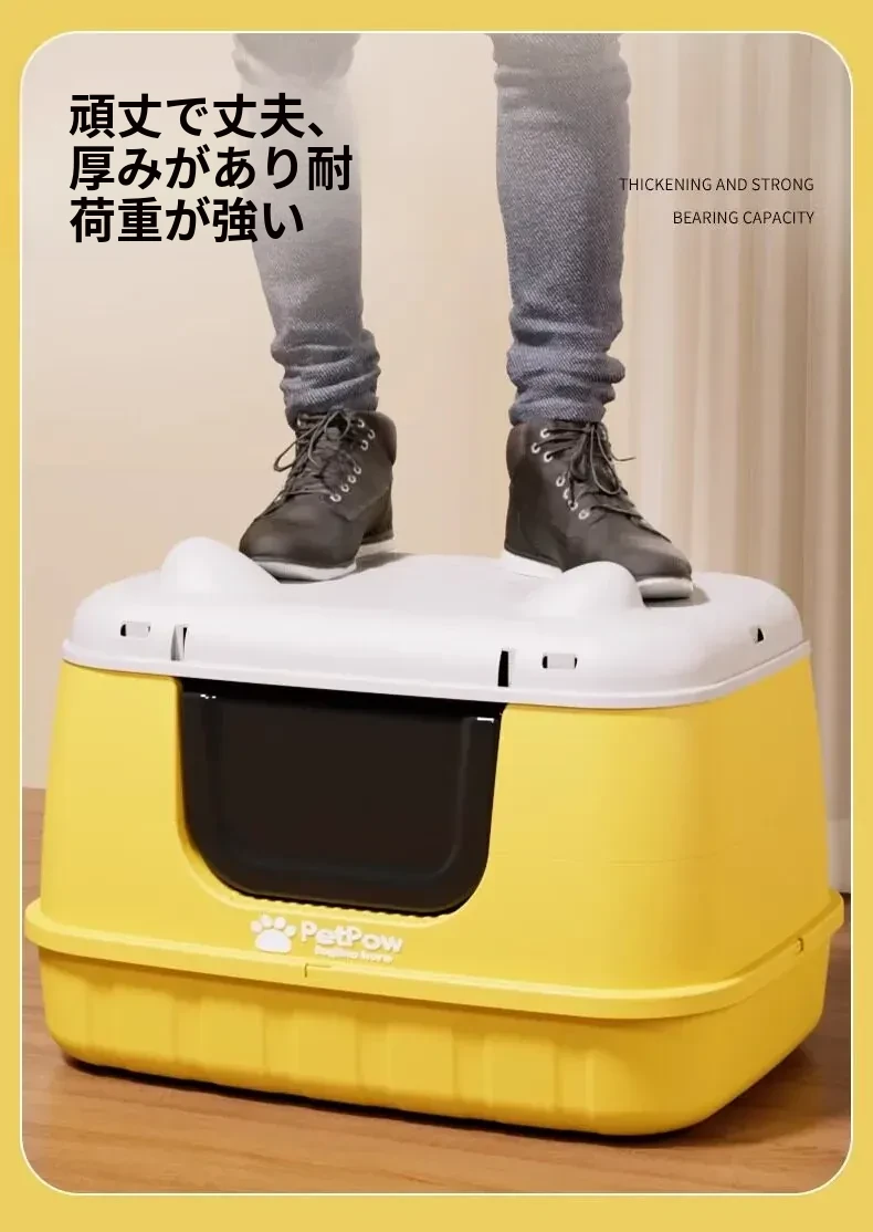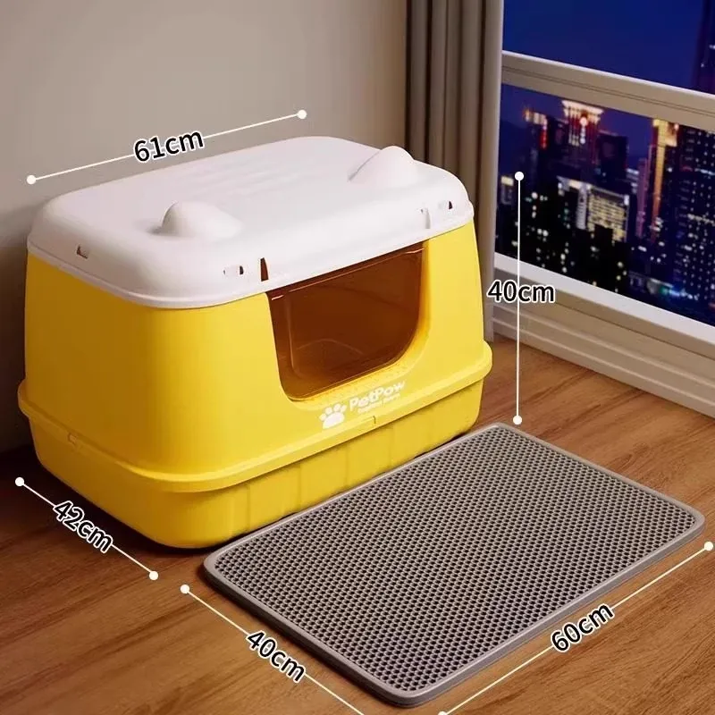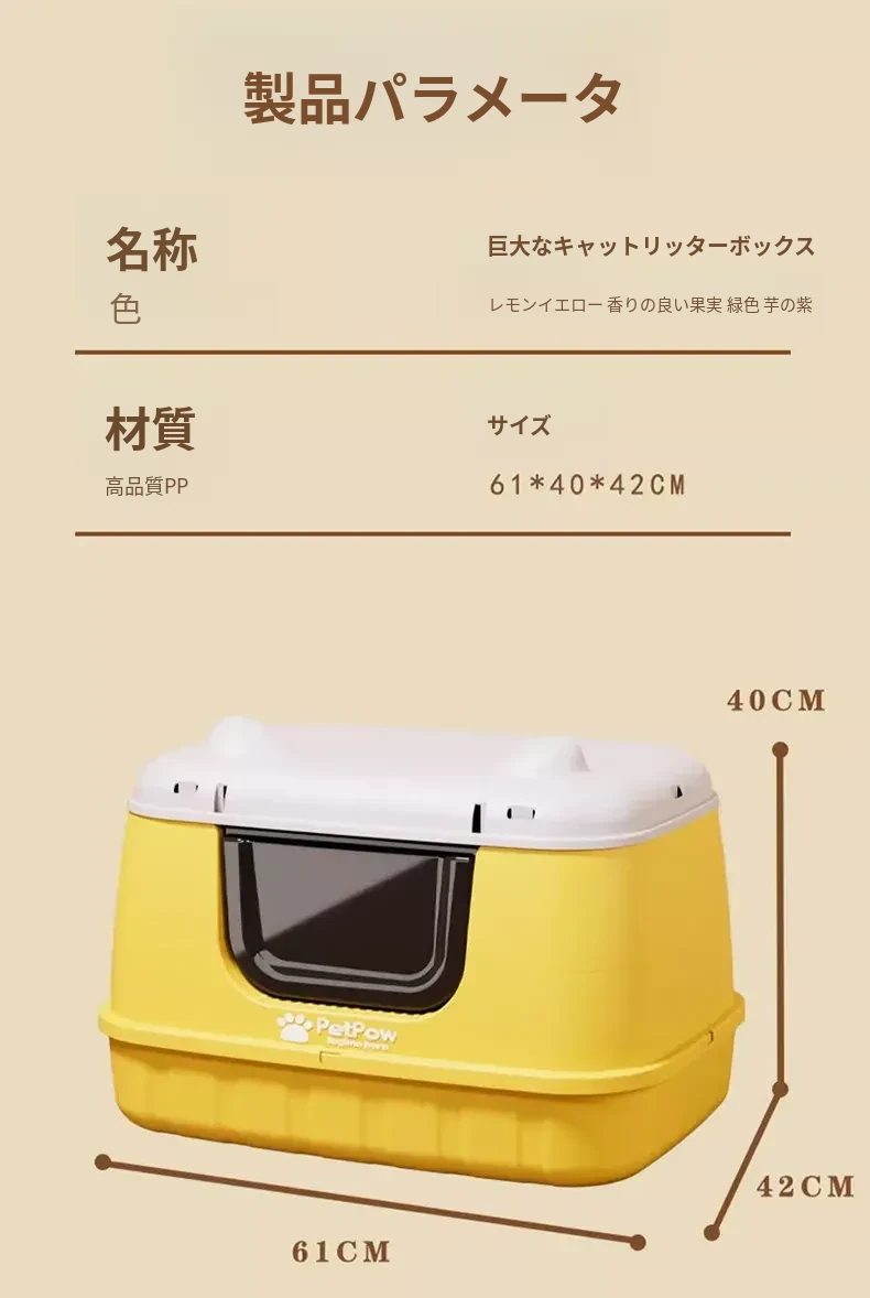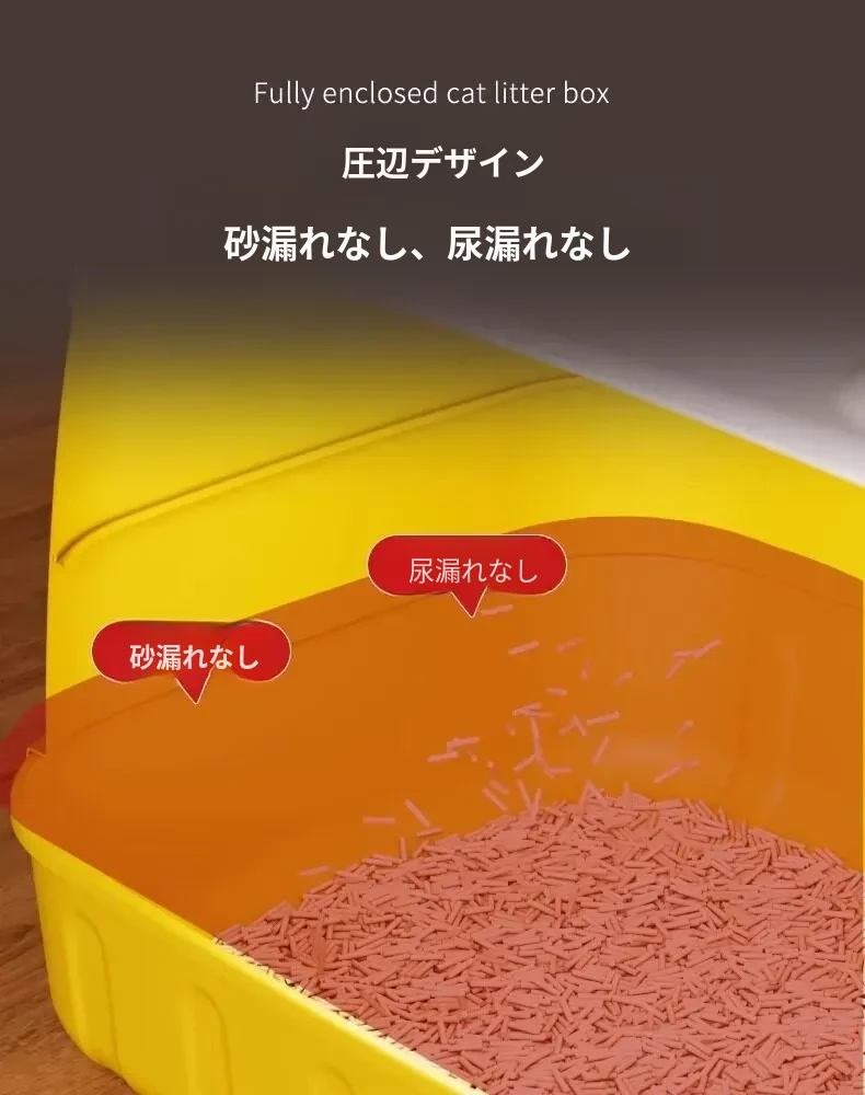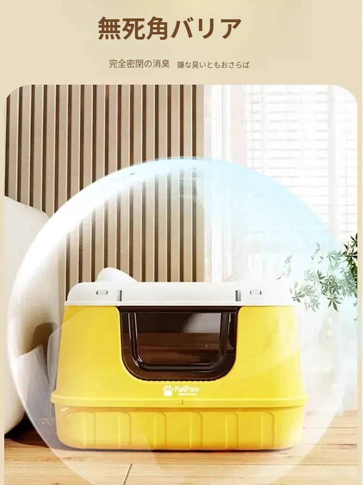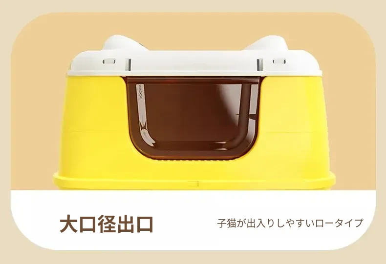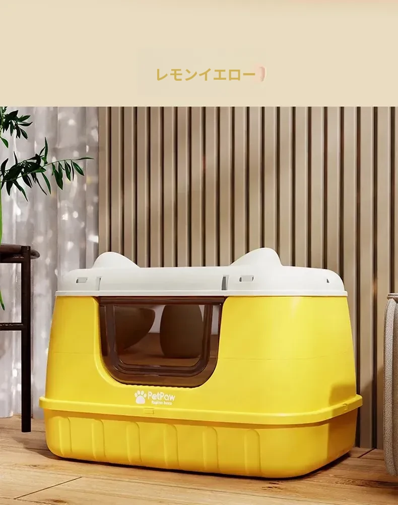 ★アップグレード全封閉【レモンイエロー】61cm猫砂盆(30斤以内の肥満猫用)猫砂シャベル付き