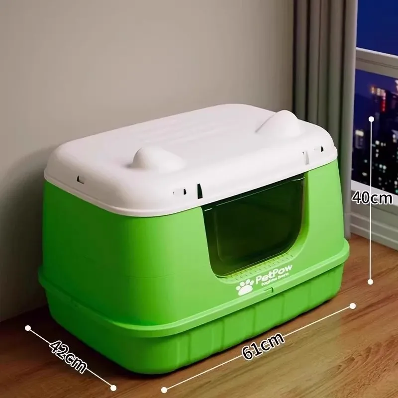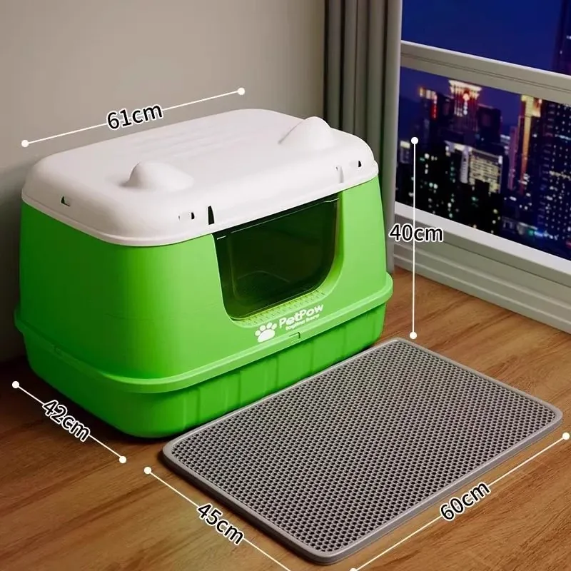 ★アップグレード全封閉【香果グリーン】61cm猫砂盆(30斤以内の肥満猫用)猫砂シャベル付き