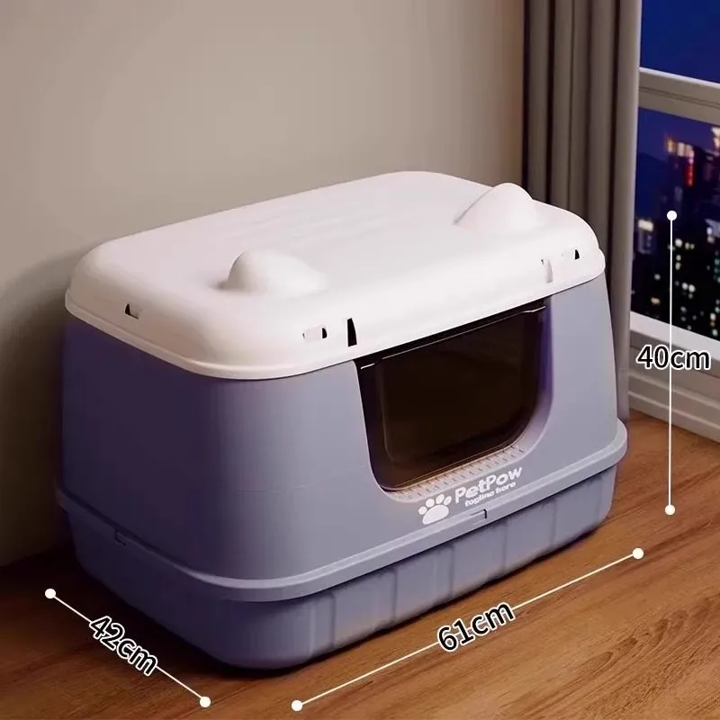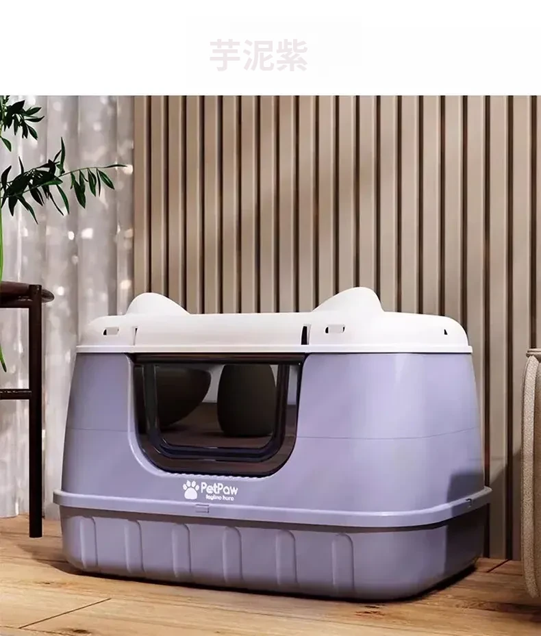 ★アップグレード全封閉【芋泥パープル】61cm猫砂盆(30斤以内の肥満猫用)猫砂シャベル付き