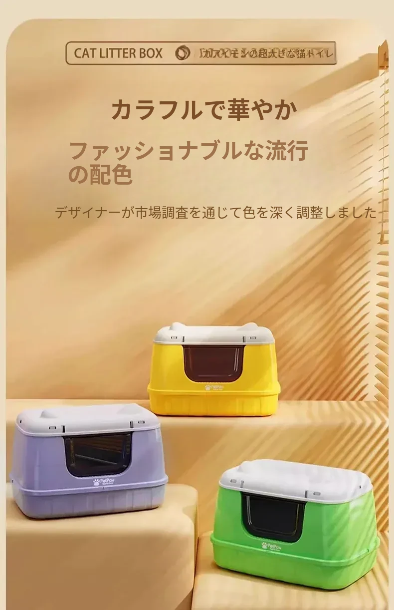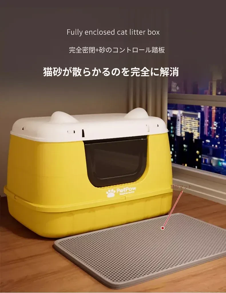 超大型密閉式猫トイレ・防臭・防外飛び散り!猫ちゃんに最適な特大サイズの砂盆で、快適なおトイレタイムを提供します。臭いをシャットアウトして、清潔さをキープ!