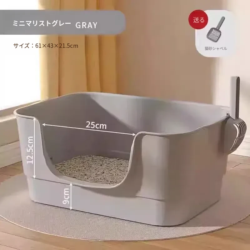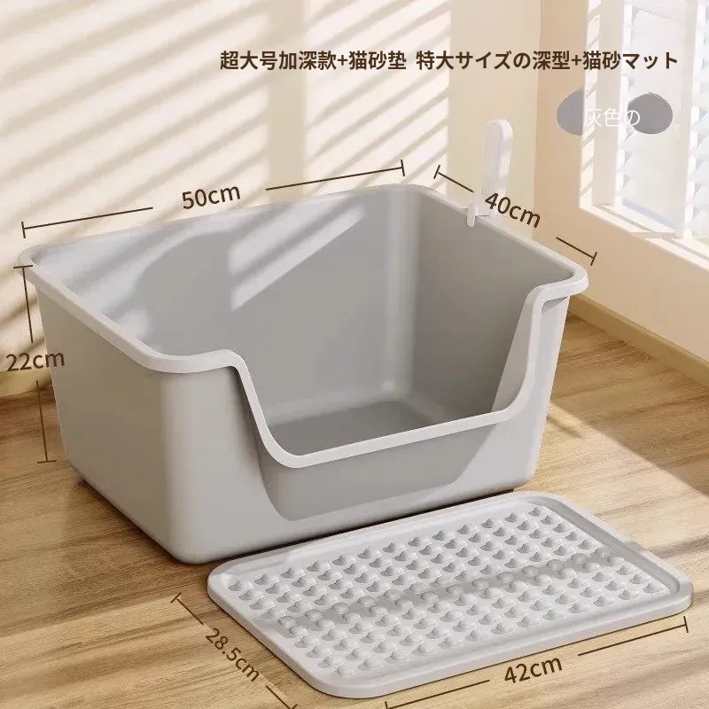 便利な持ち手付き 灰色 大型猫トイレ50CM(猫砂スコップ付き 色はランダム)