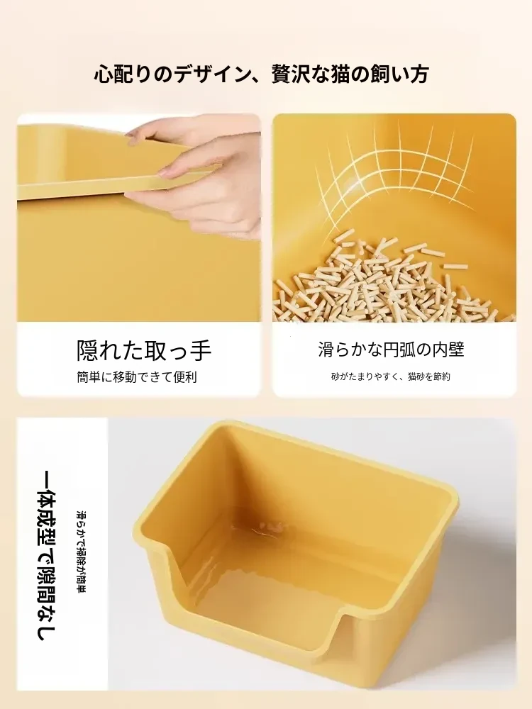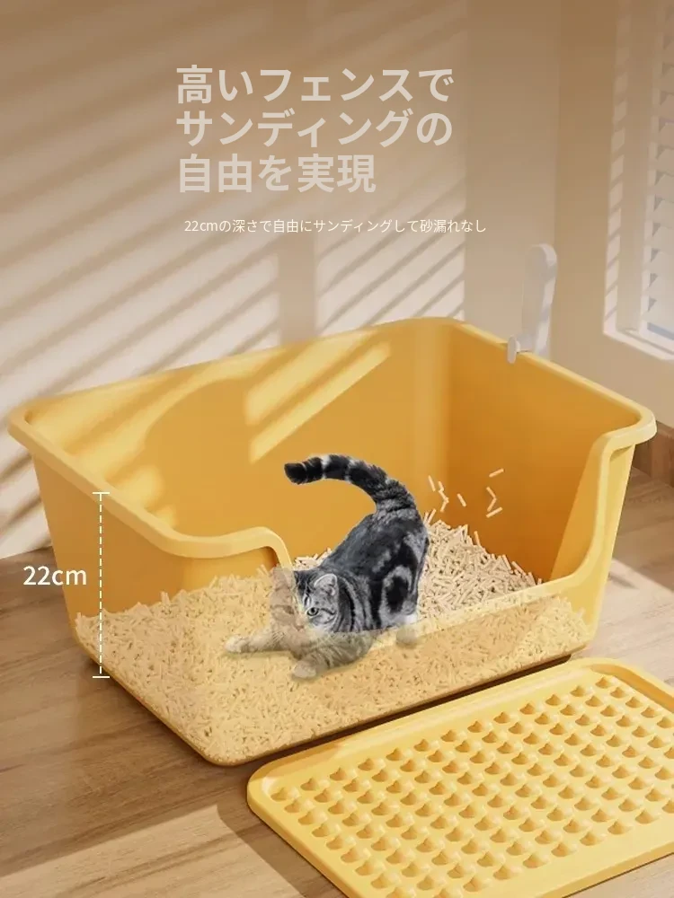 新型クリームイエロー【超大容量 高さ増加防溅砂】(猫砂スコップ付き)
