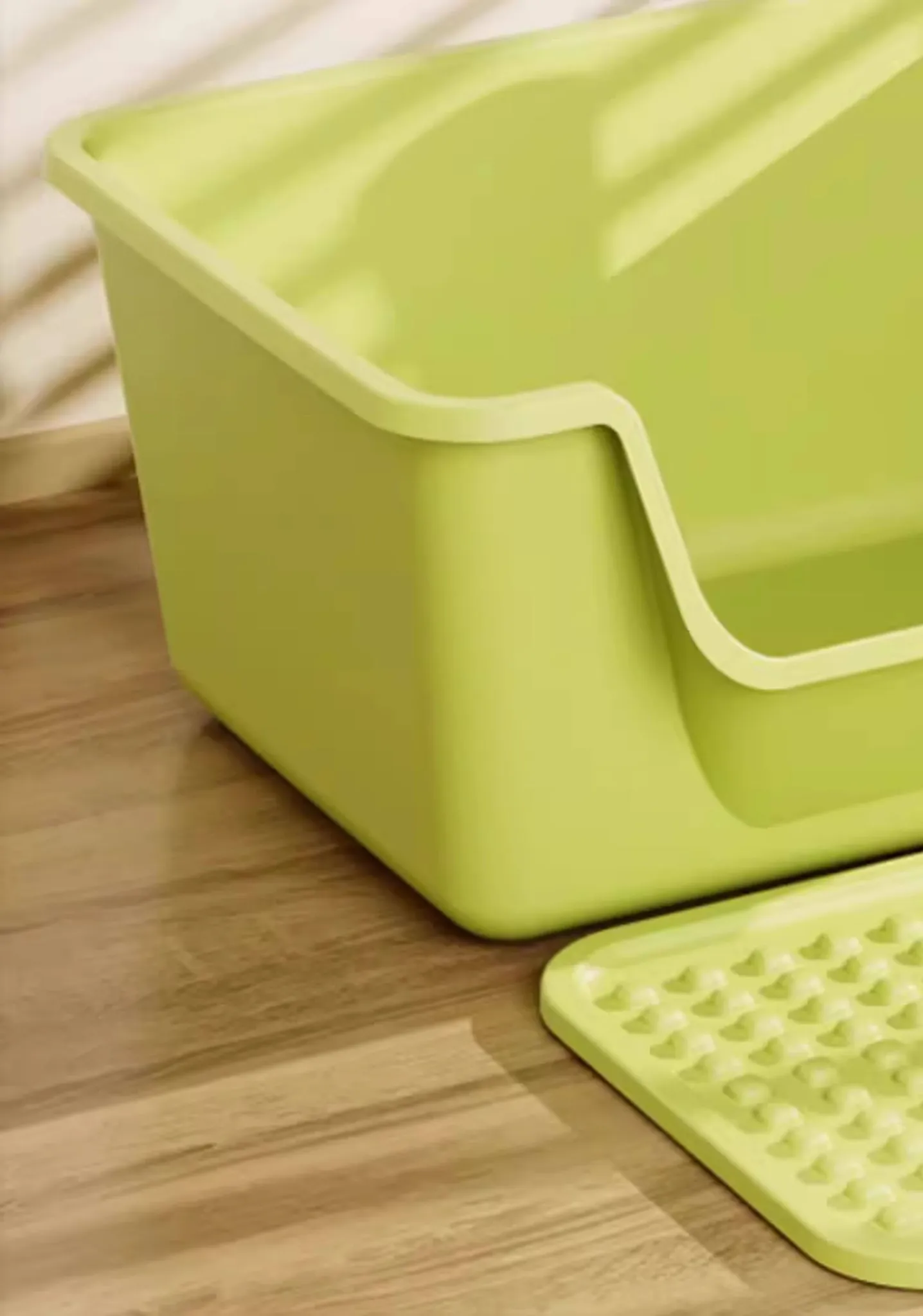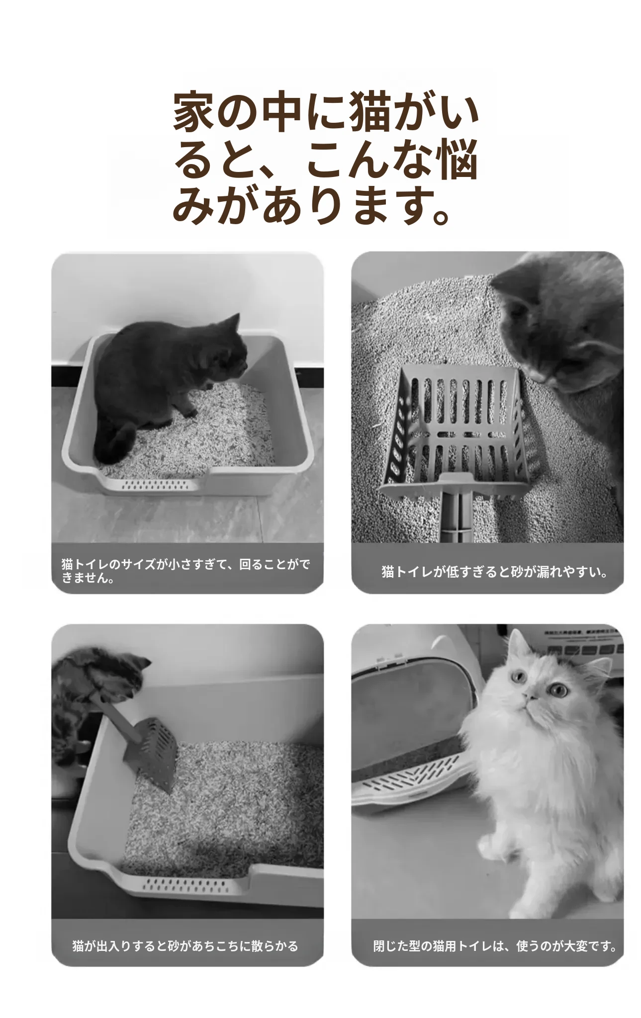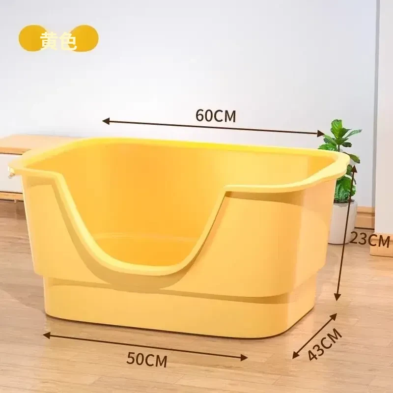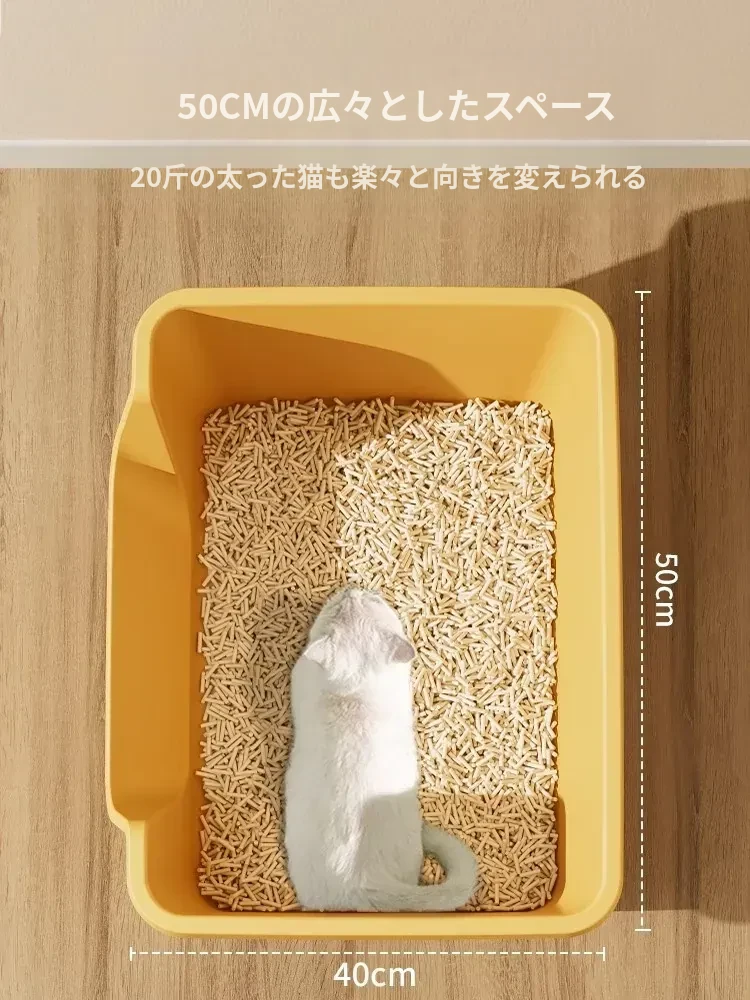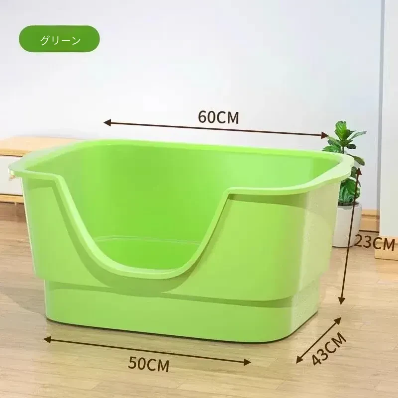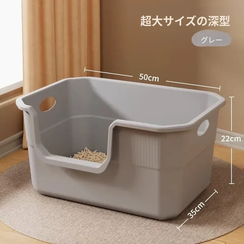 超大型の防水キャットトイレ - 猫ちゃんのための広々としたオープン型トイレ、こぼれにくい設計!特大サイズで快適な排泄タイムを実現!