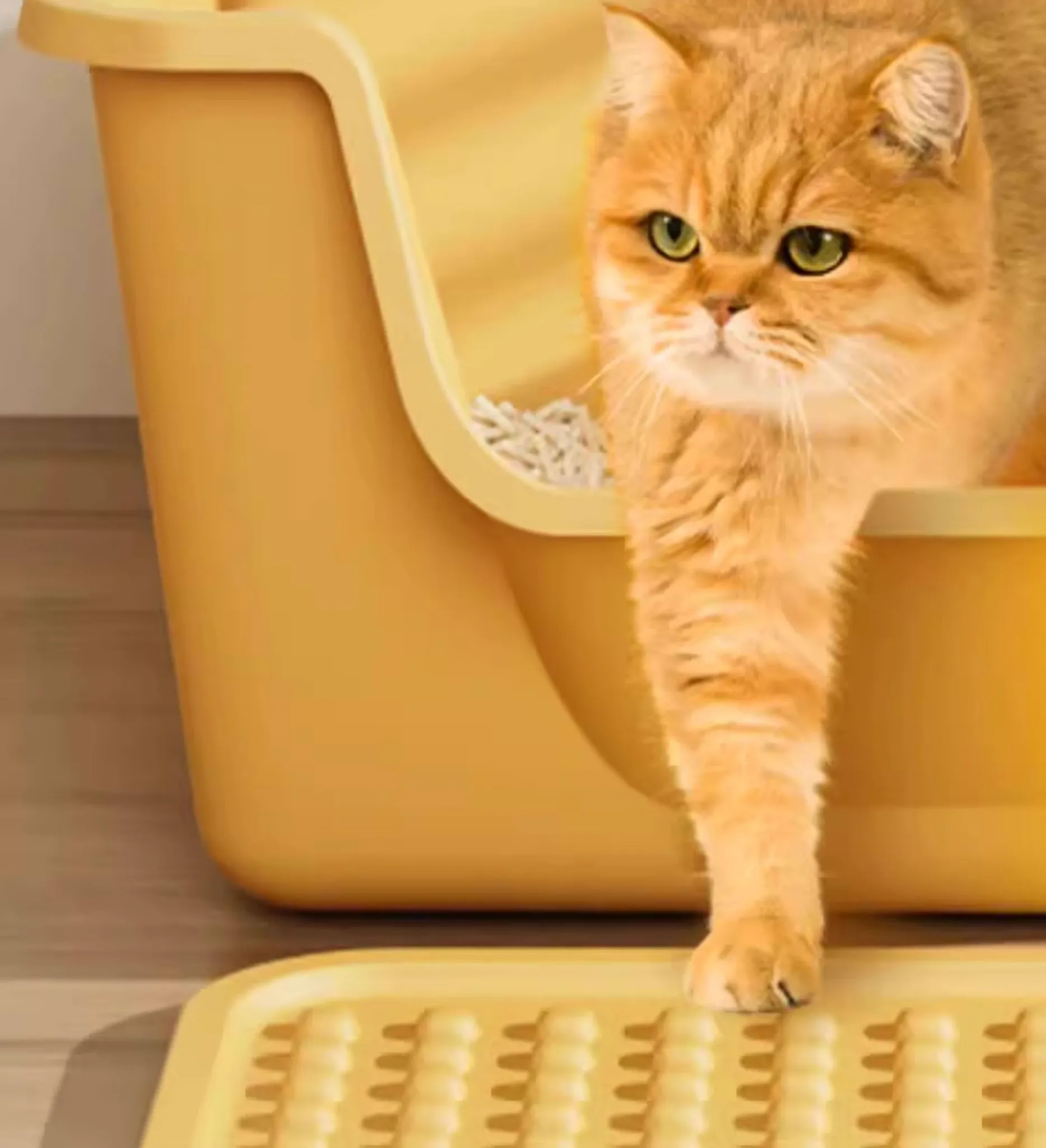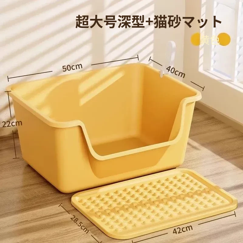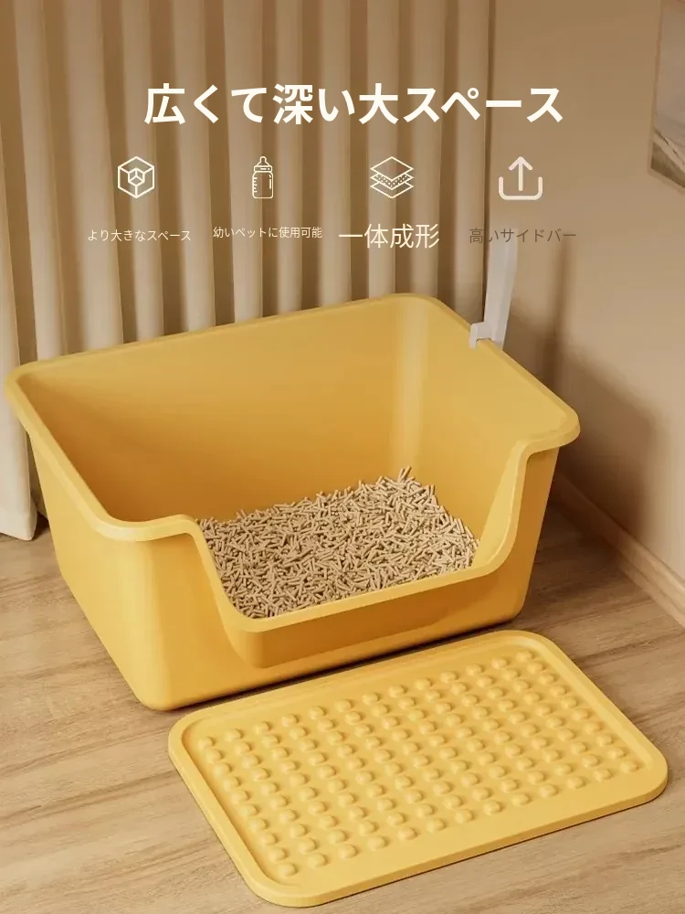 【滑り止めフィルタ砂セット】クリームイエロー50CM猫トイレ+猫砂マット.
