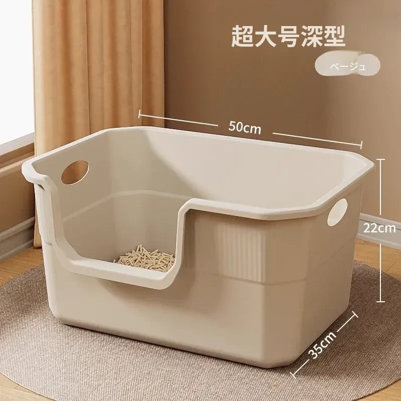 便利な持ち手付き ベージュ 大型猫トイレ50CM(猫砂スコップ付き 色はランダム)