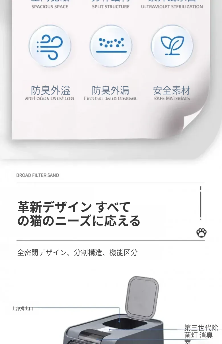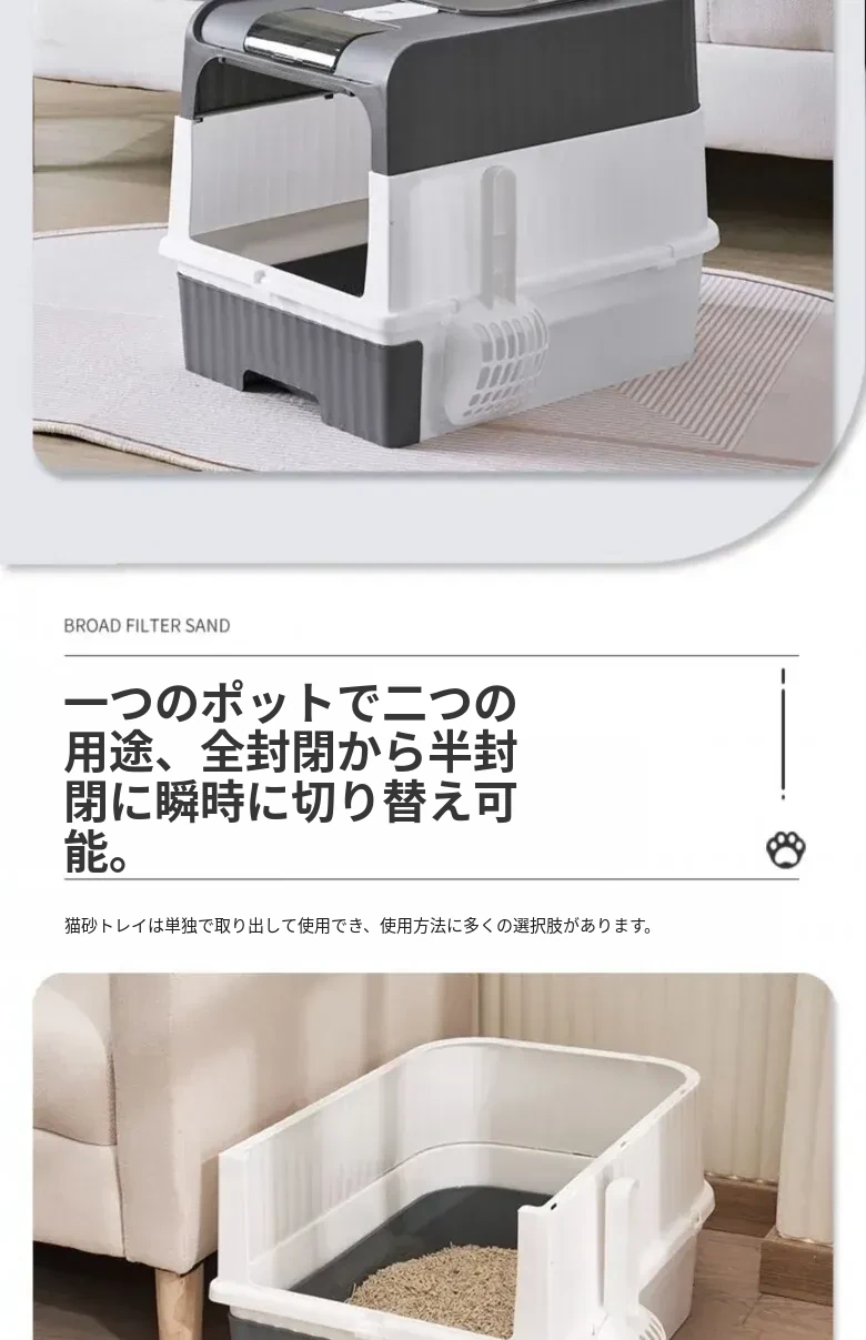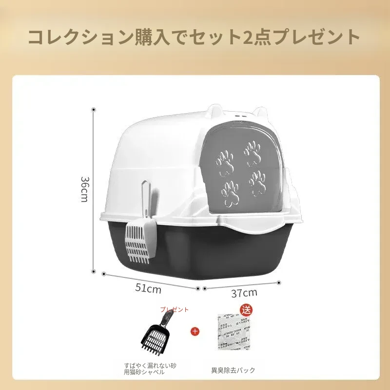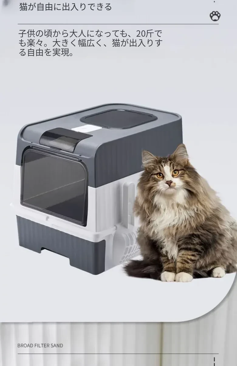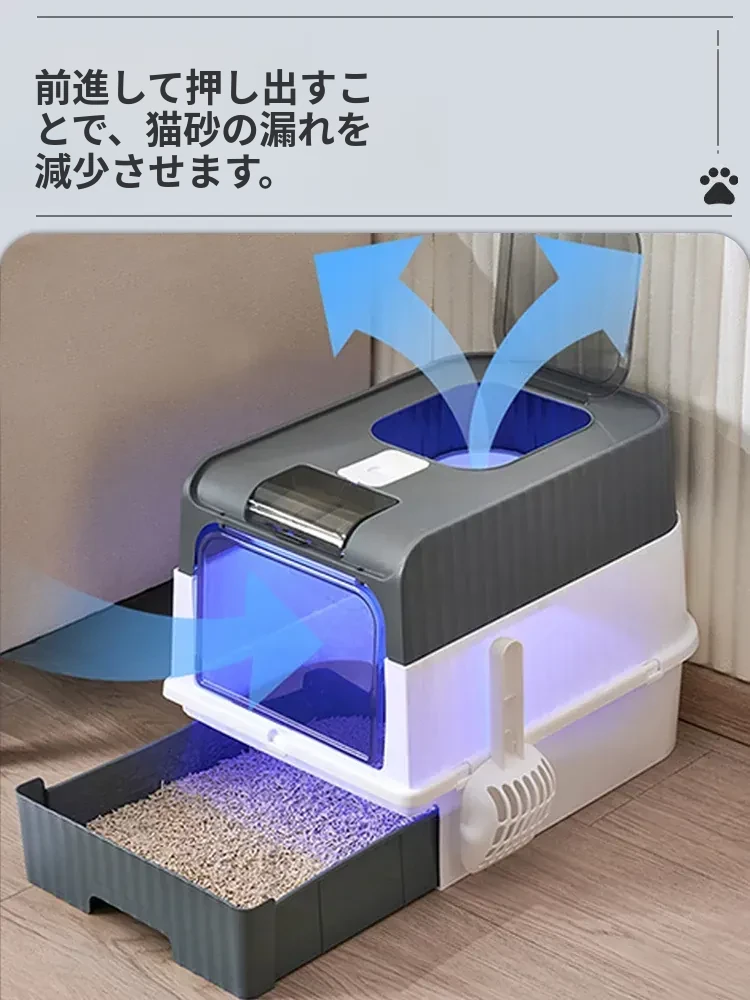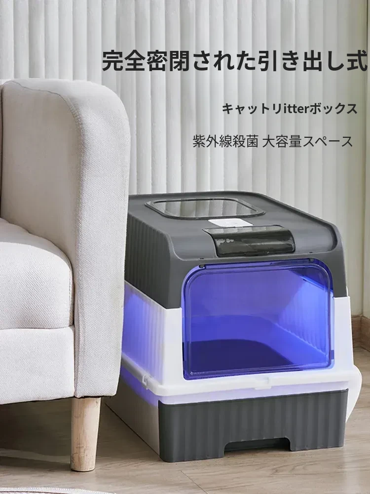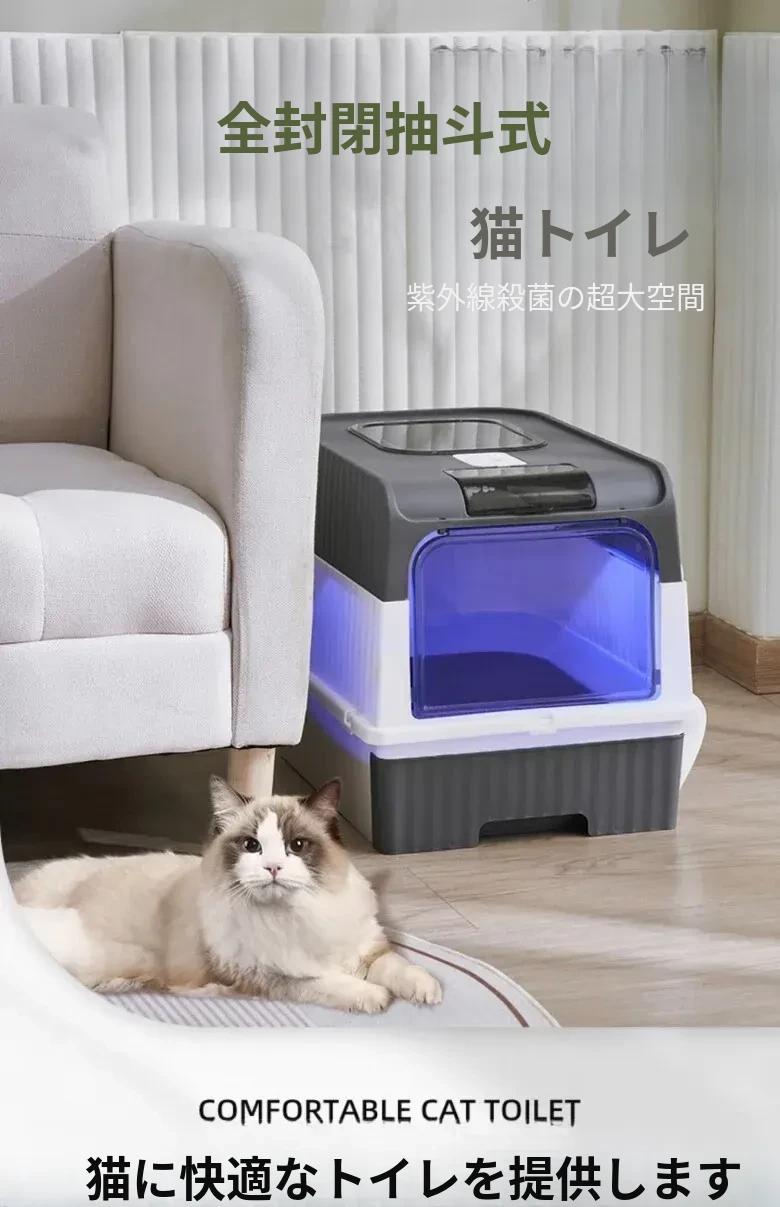 超大型全半封閉式猫砂盆 - UV殺菌機能付き!防止飛び散り&消臭効果抜群の猫ちゃんトイレ!清潔で安心な環境を提供します。