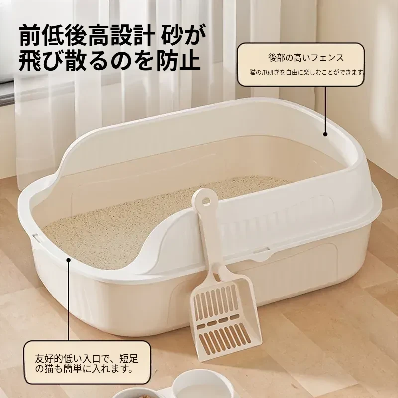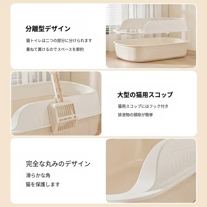 【50cm大スペース】クリームホワイト+猫砂スコップ付き【15斤までの猫に適用】