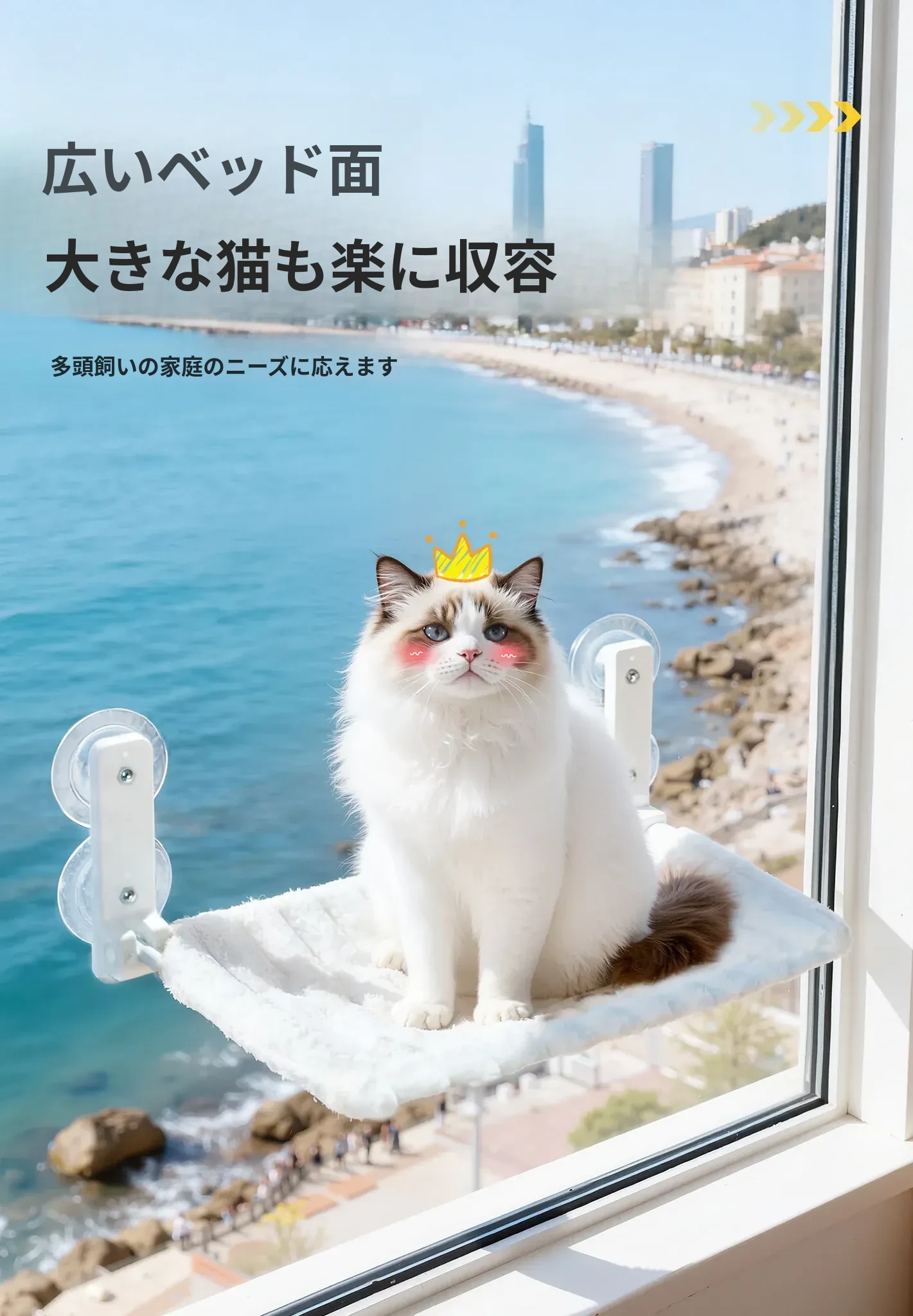 折りたたみ式キャットハンモック - 窓に取り付ける吸盤付き!猫ちゃんが日向ぼっこできる絶景スポット。冬も暖かく快適に過ごせる、愛する猫のための理想的なベッド。