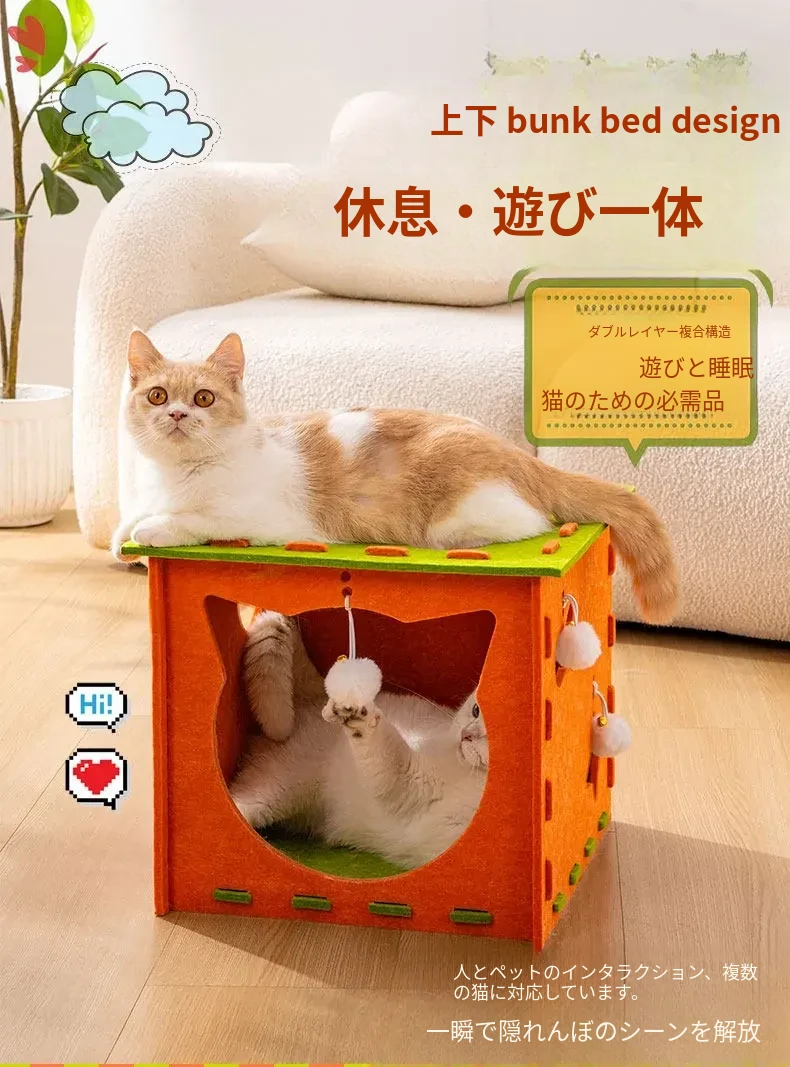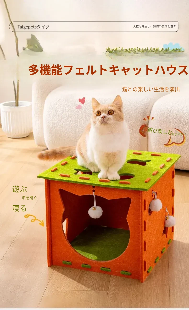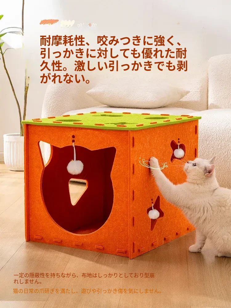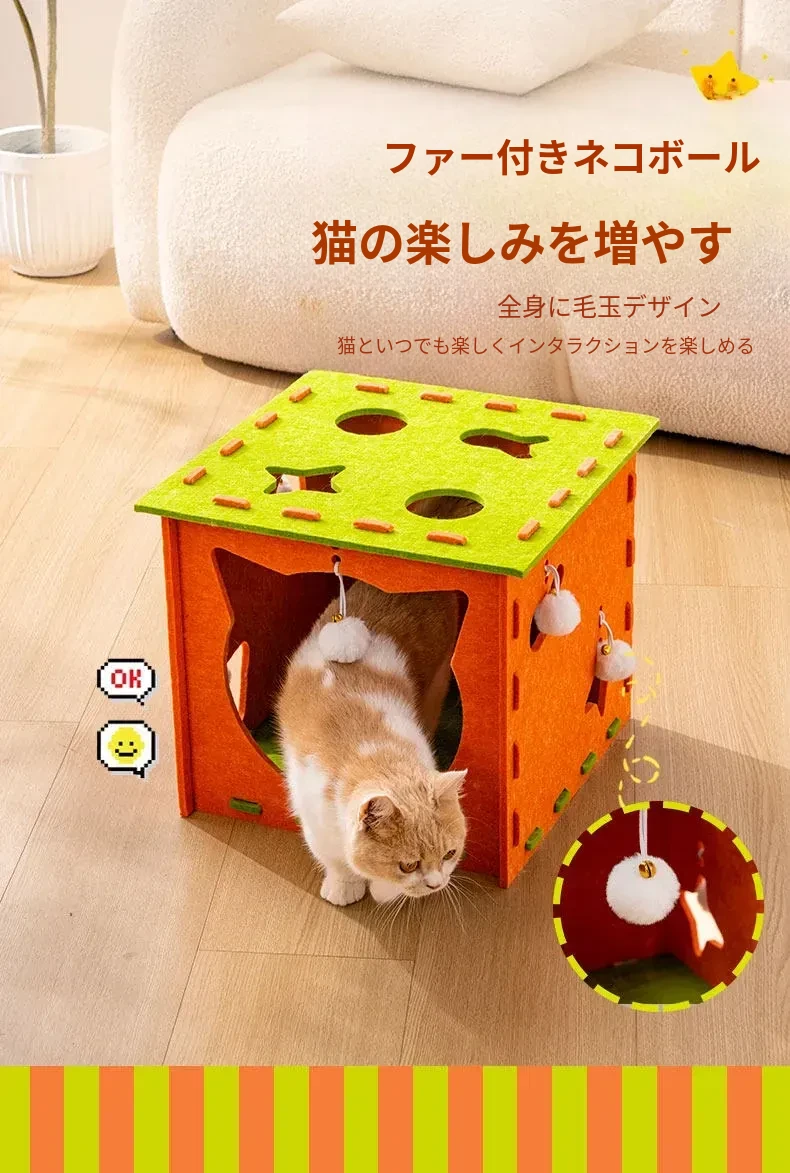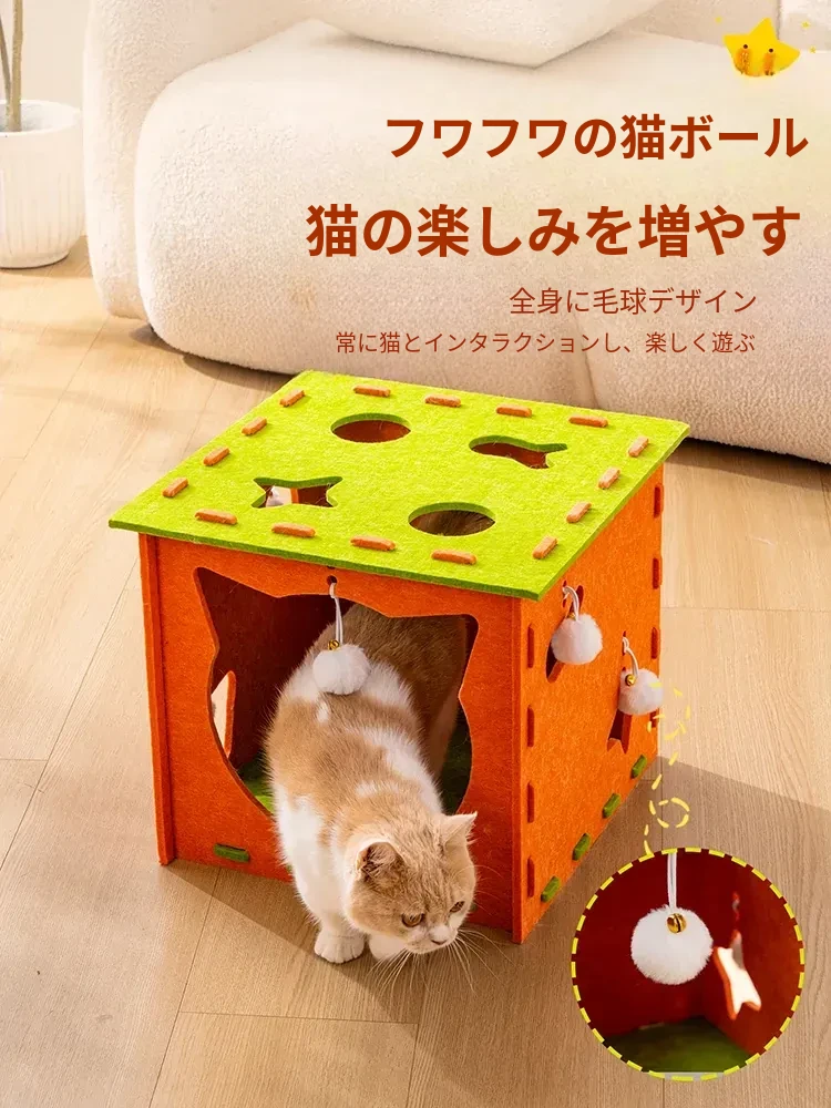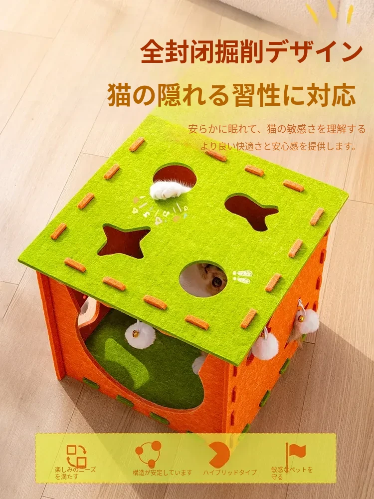 フェルトキャットハウス小【推奨15ポンド以内】【穴を掘って猫を遊ばせ、爪を研ぎ、寝るための5in1】