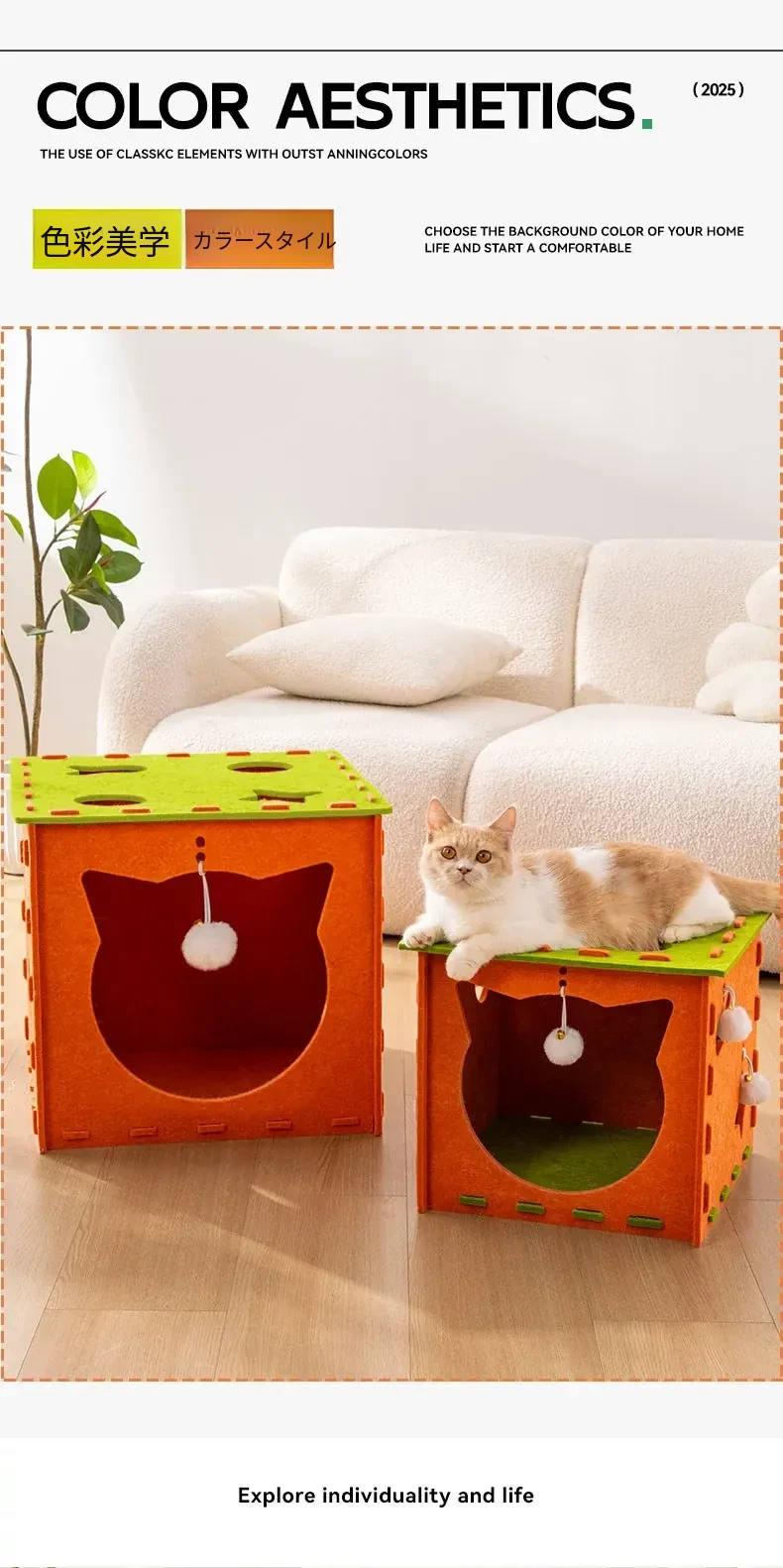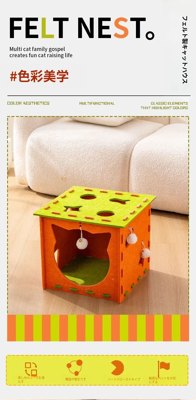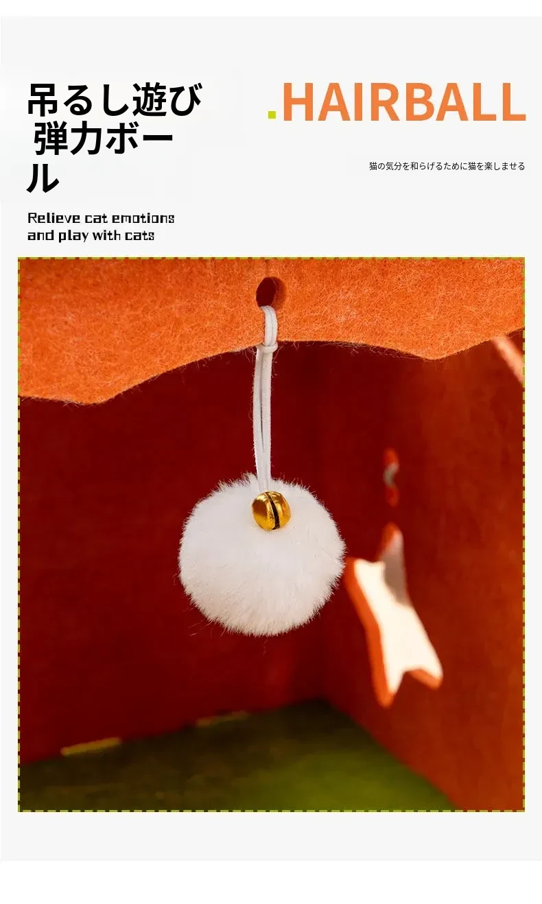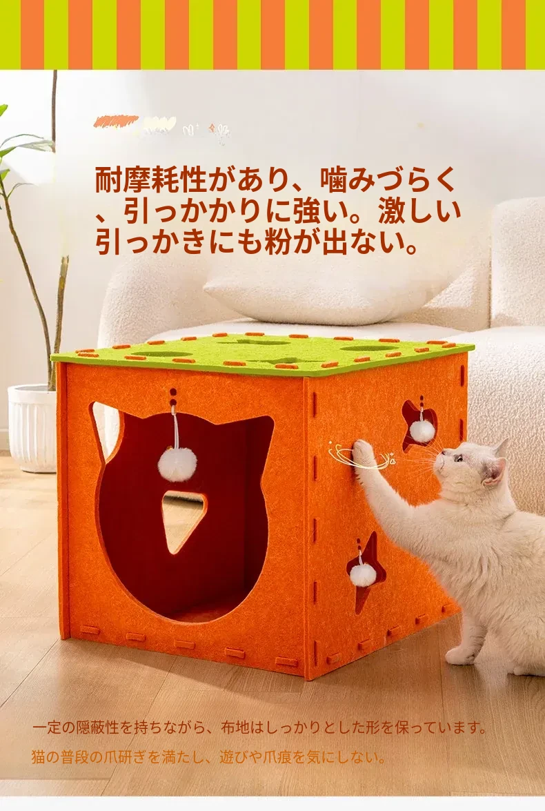 フェルトキャットハウス小【推奨15ポンド以内】【穴を掘って猫を遊ばせ、爪を研ぎ、寝るための5in1】