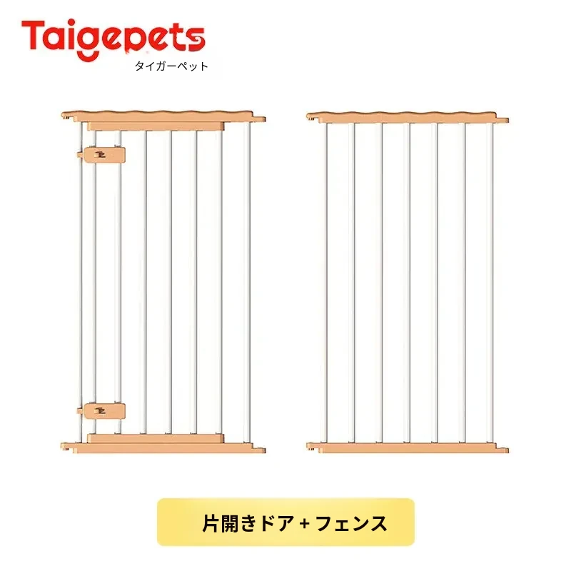 【魅力的杏色木製フェンスアクセサリー】ダブルドアロック付きの犬用フェンス単体ドアパーツ、愛犬の安全を守るスタイリッシュなデザイン!